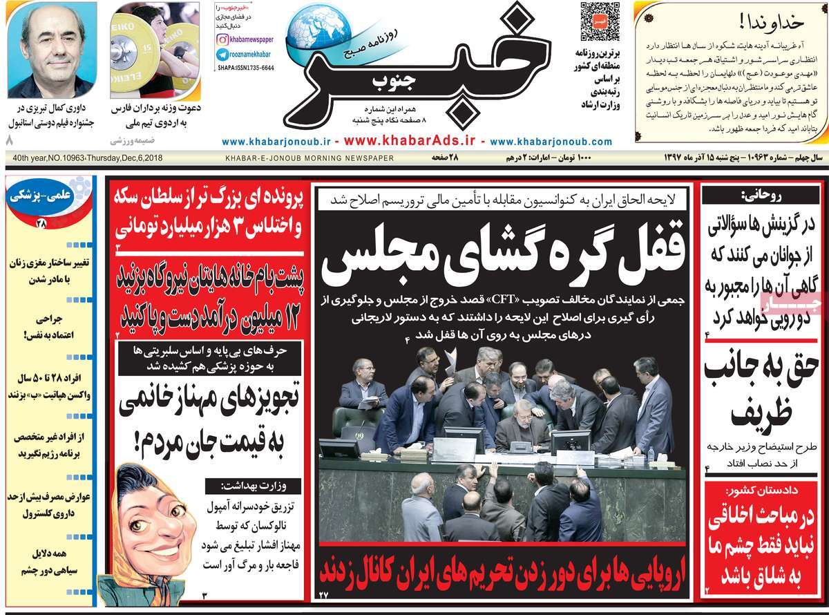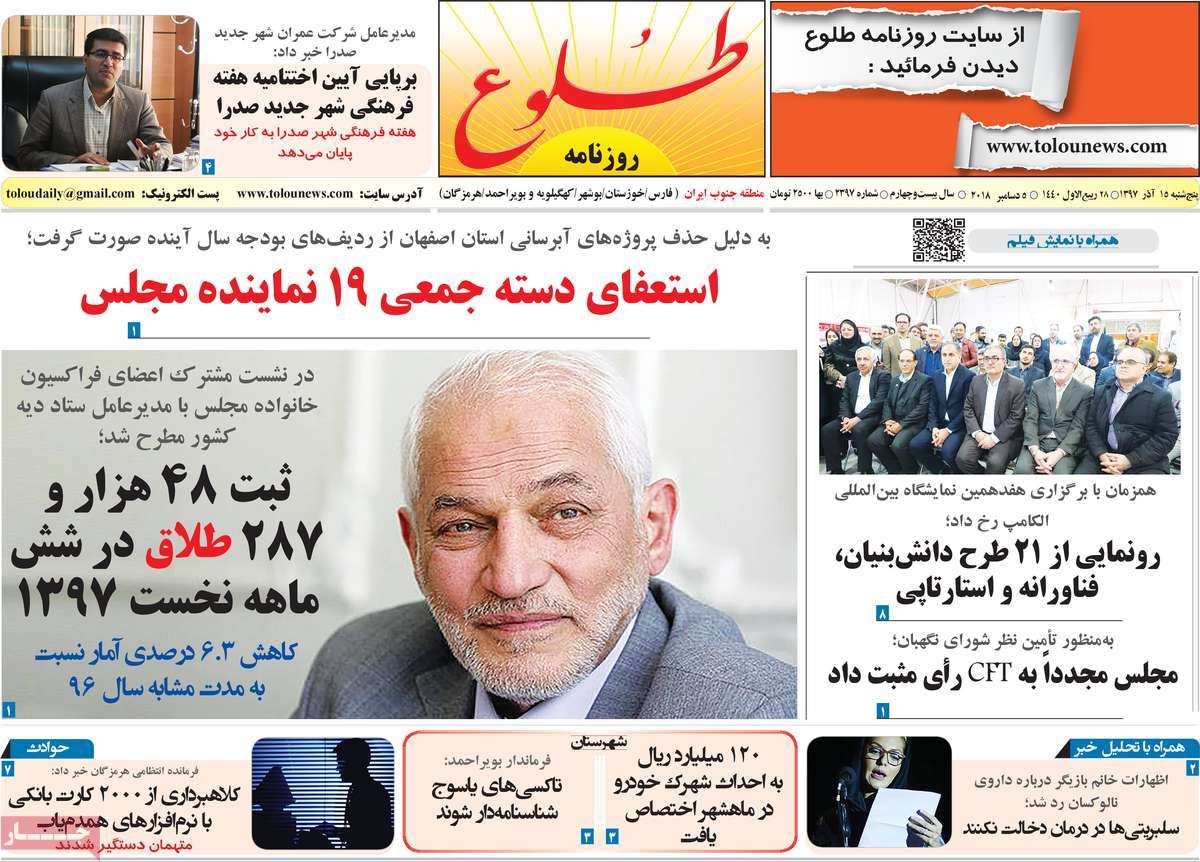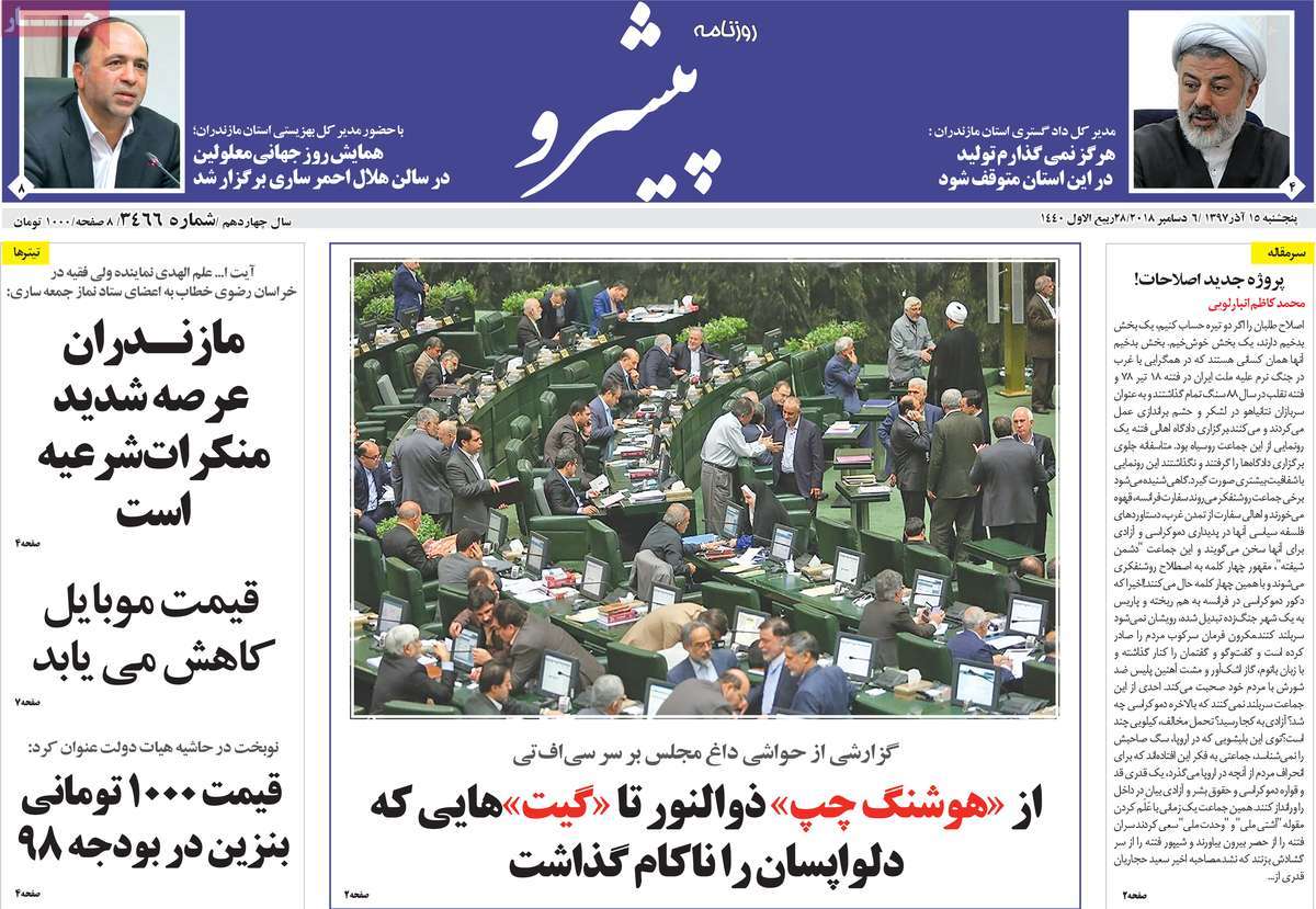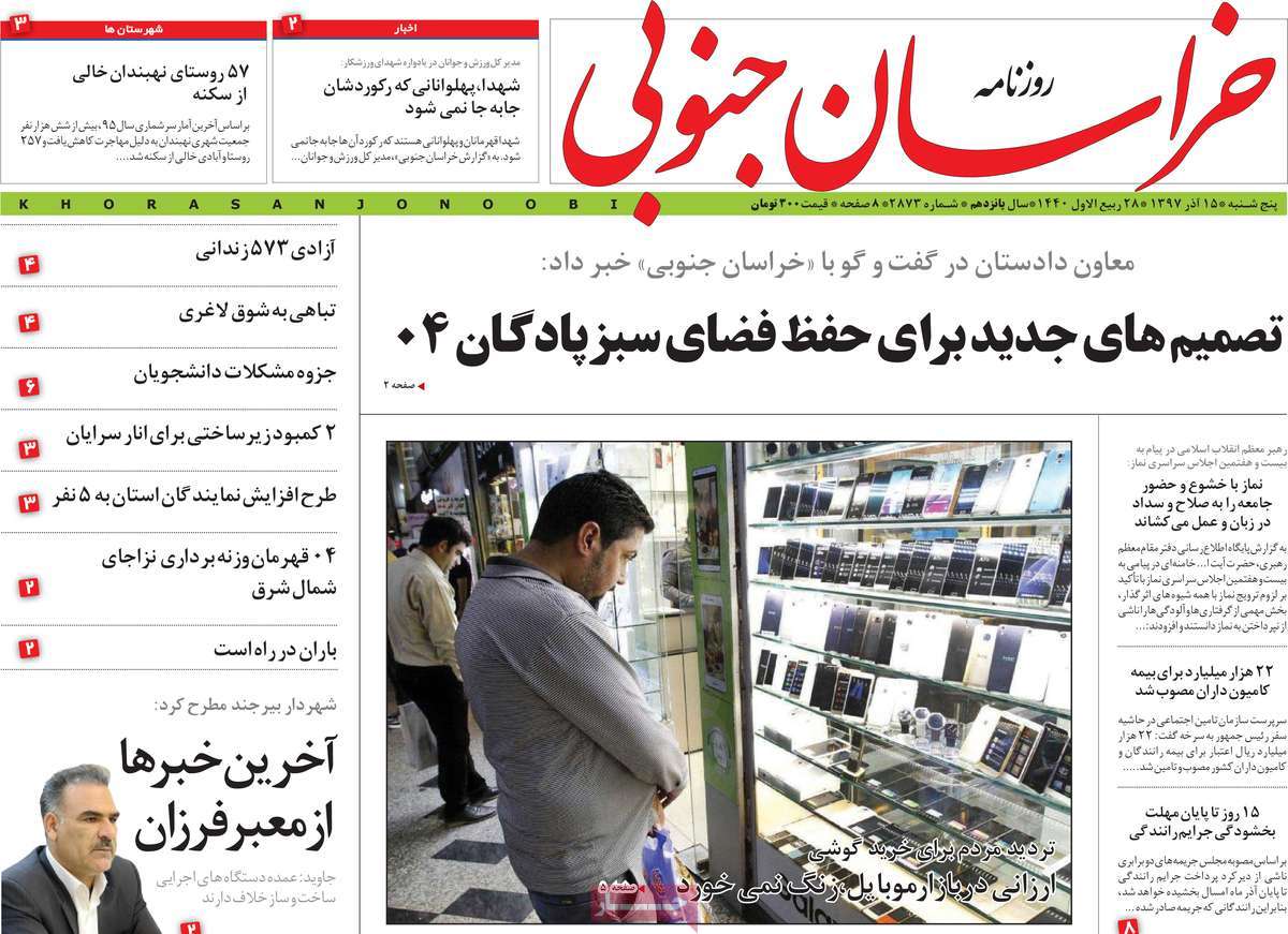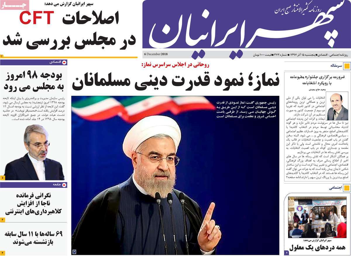صفحه اول روزنامه های کشوری و استانی؛پنج شنبه 15 آذرماه 1397 /تصاویر