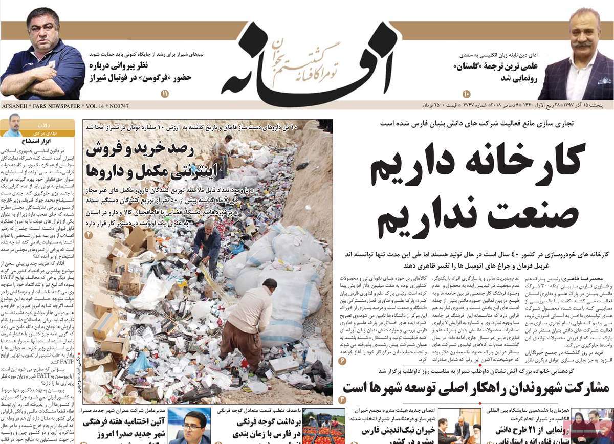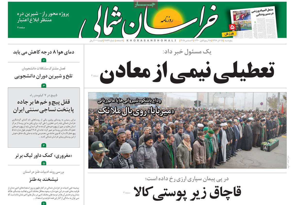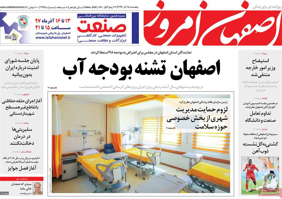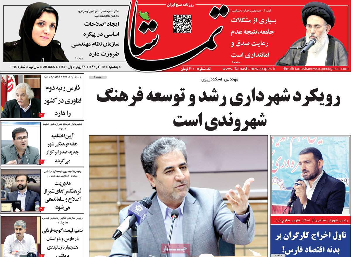 صفحه اول روزنامه های کشوری و استانی؛پنج شنبه 15 آذرماه 1397 /تصاویر