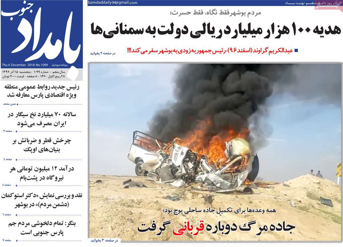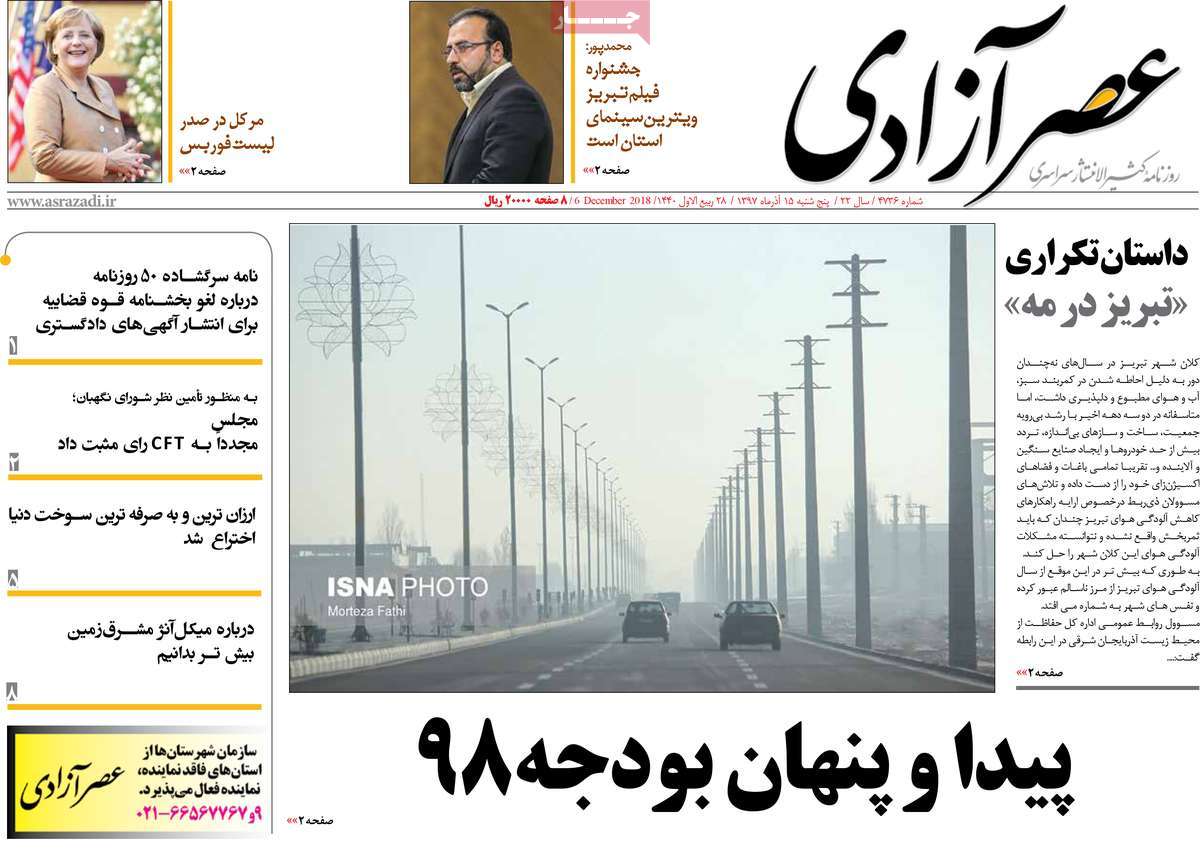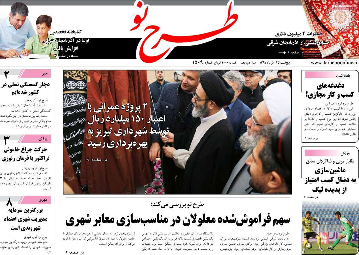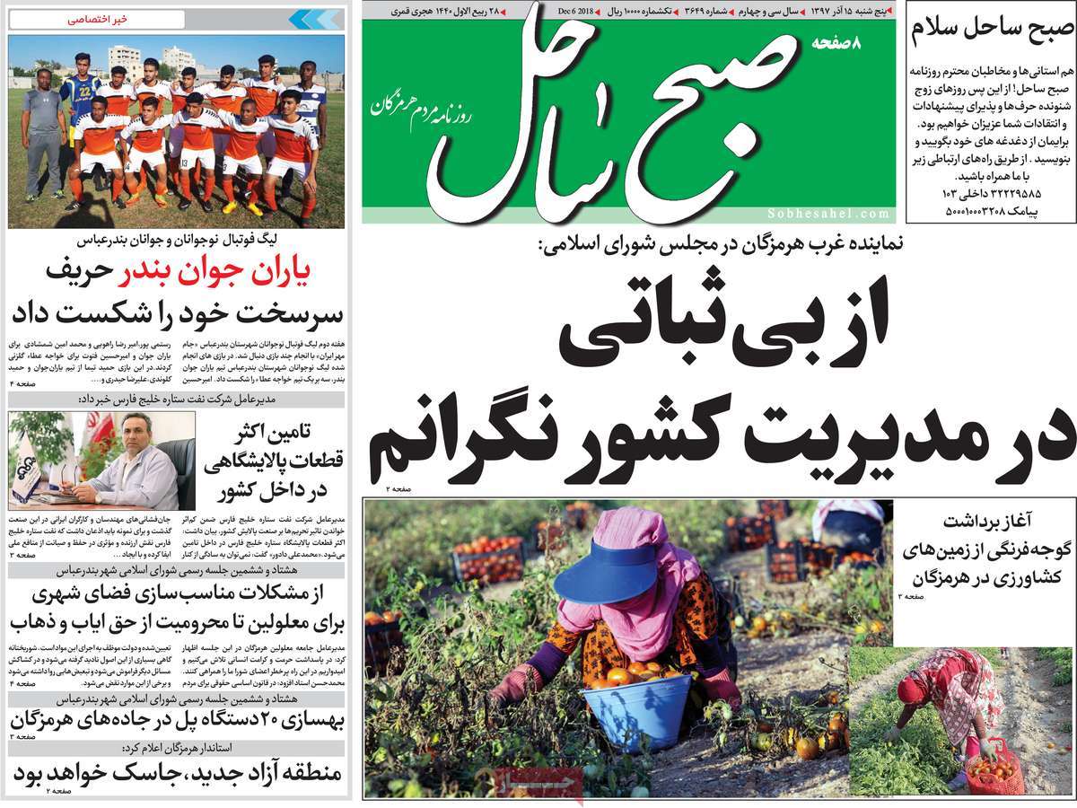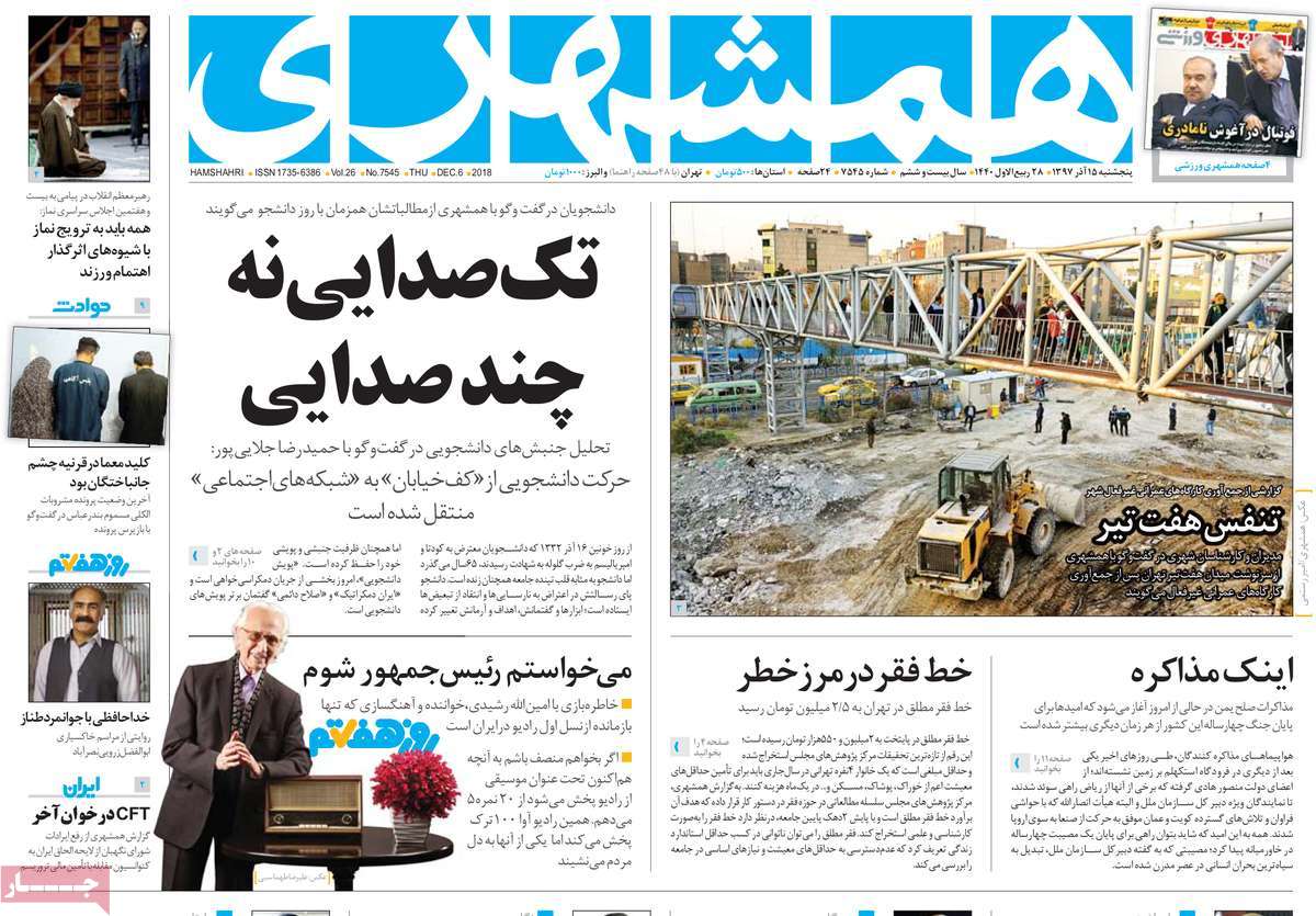 صفحه اول روزنامه های کشوری و استانی؛پنج شنبه 15 آذرماه 1397 /تصاویر