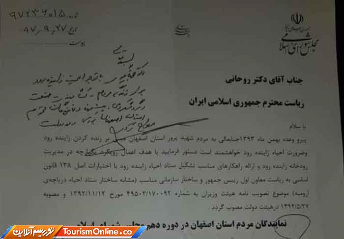 دقایقی پیش نامه نمایندگان استان اصفهان به رئیس جمهور با دستور روحانی به جهانگیری برای بررسی موضوع تشکیل ستاد احیای زاینده رود در دولت همراه شد.