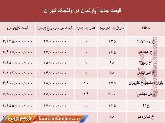 مظنه آپارتمان در منطقه ولنجک؟ /جدول