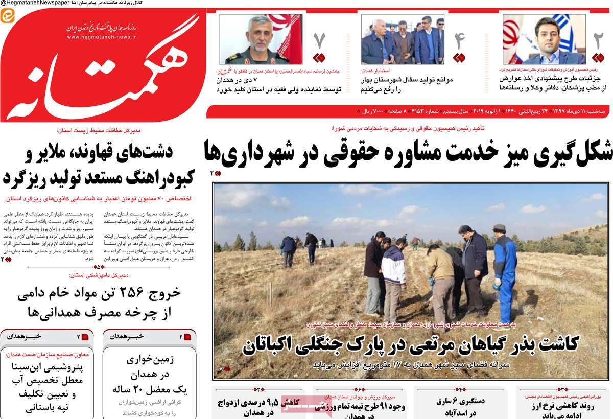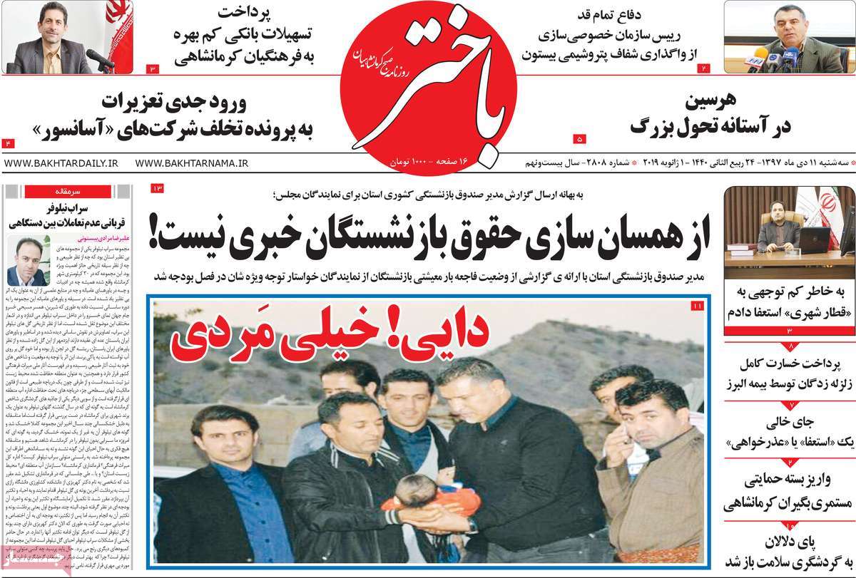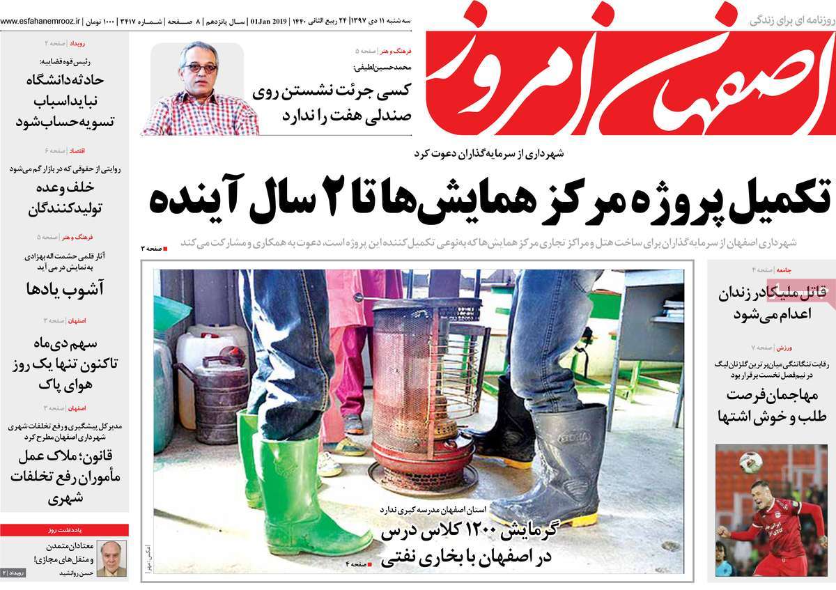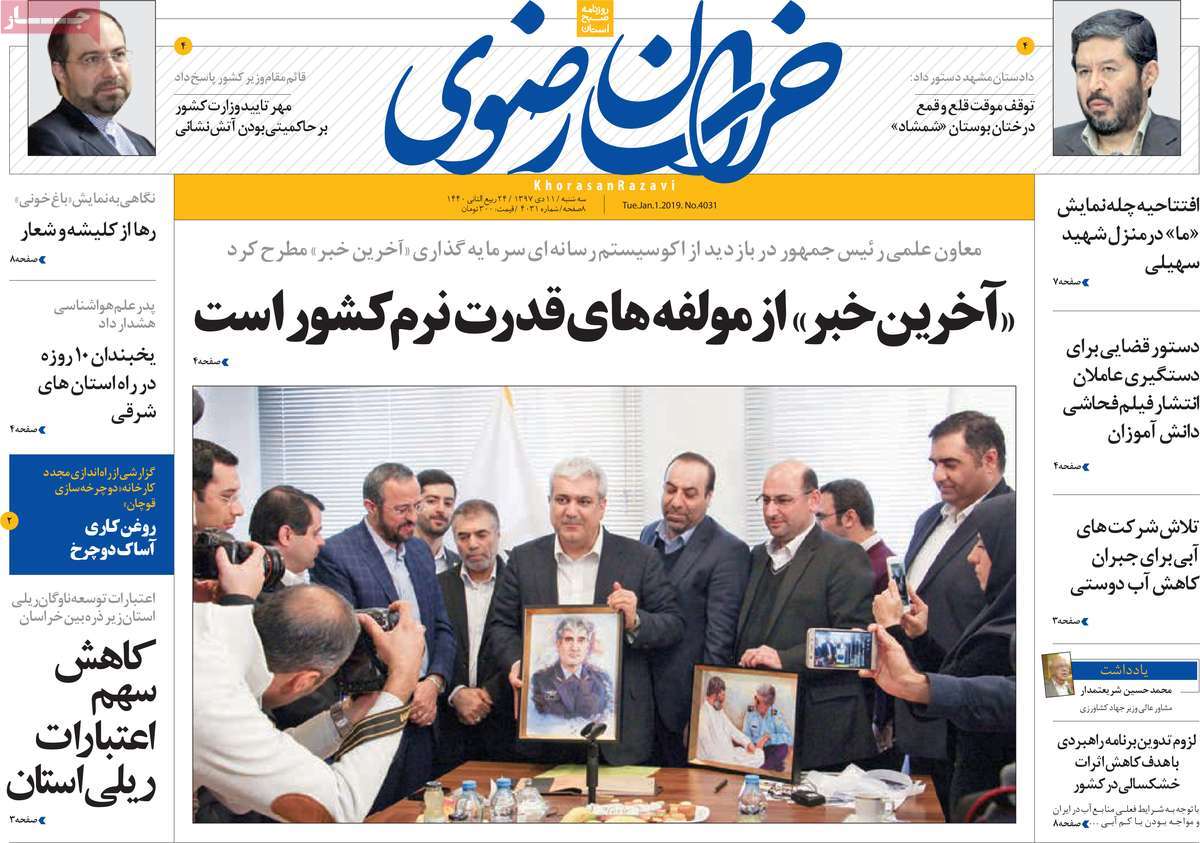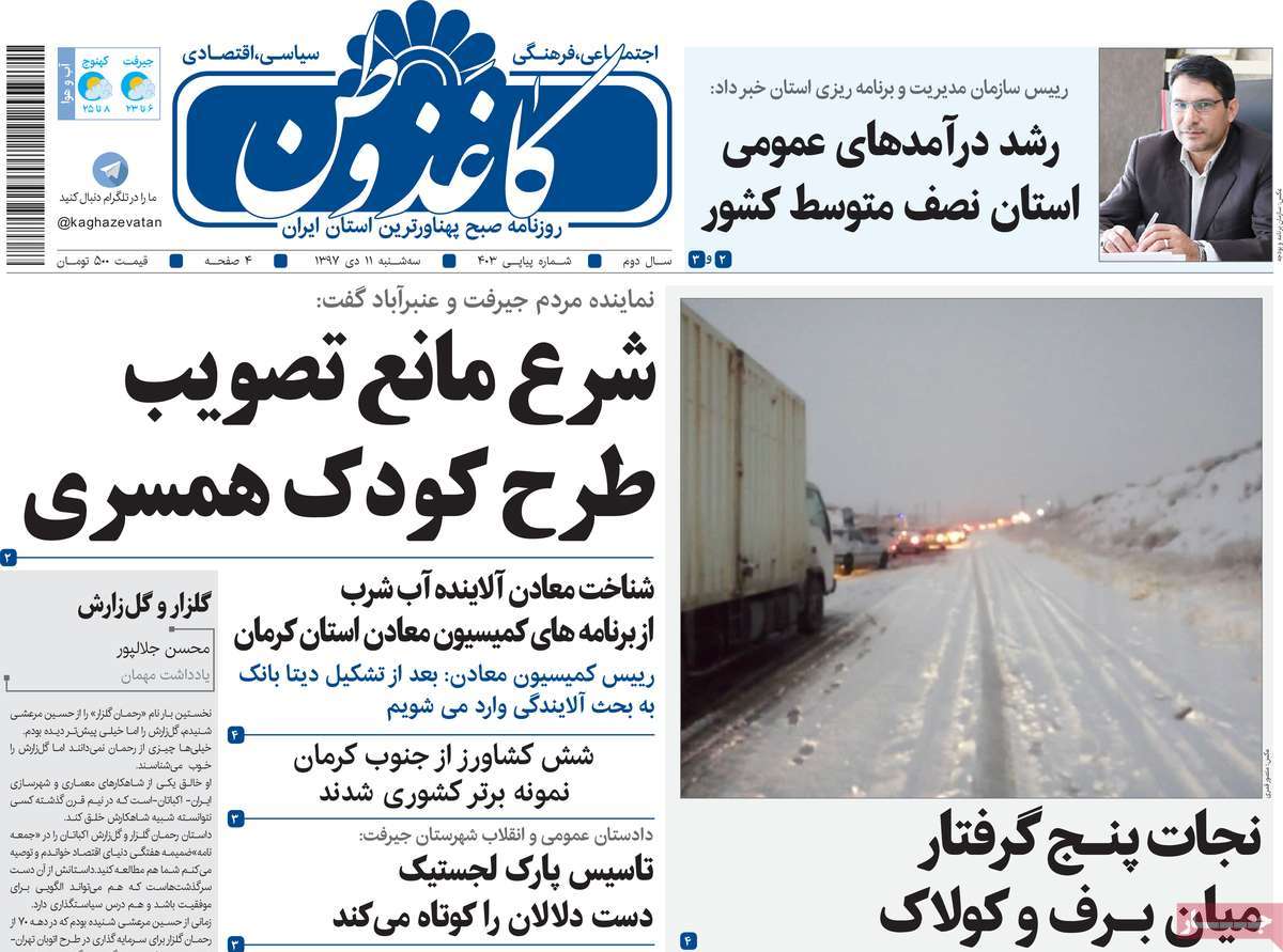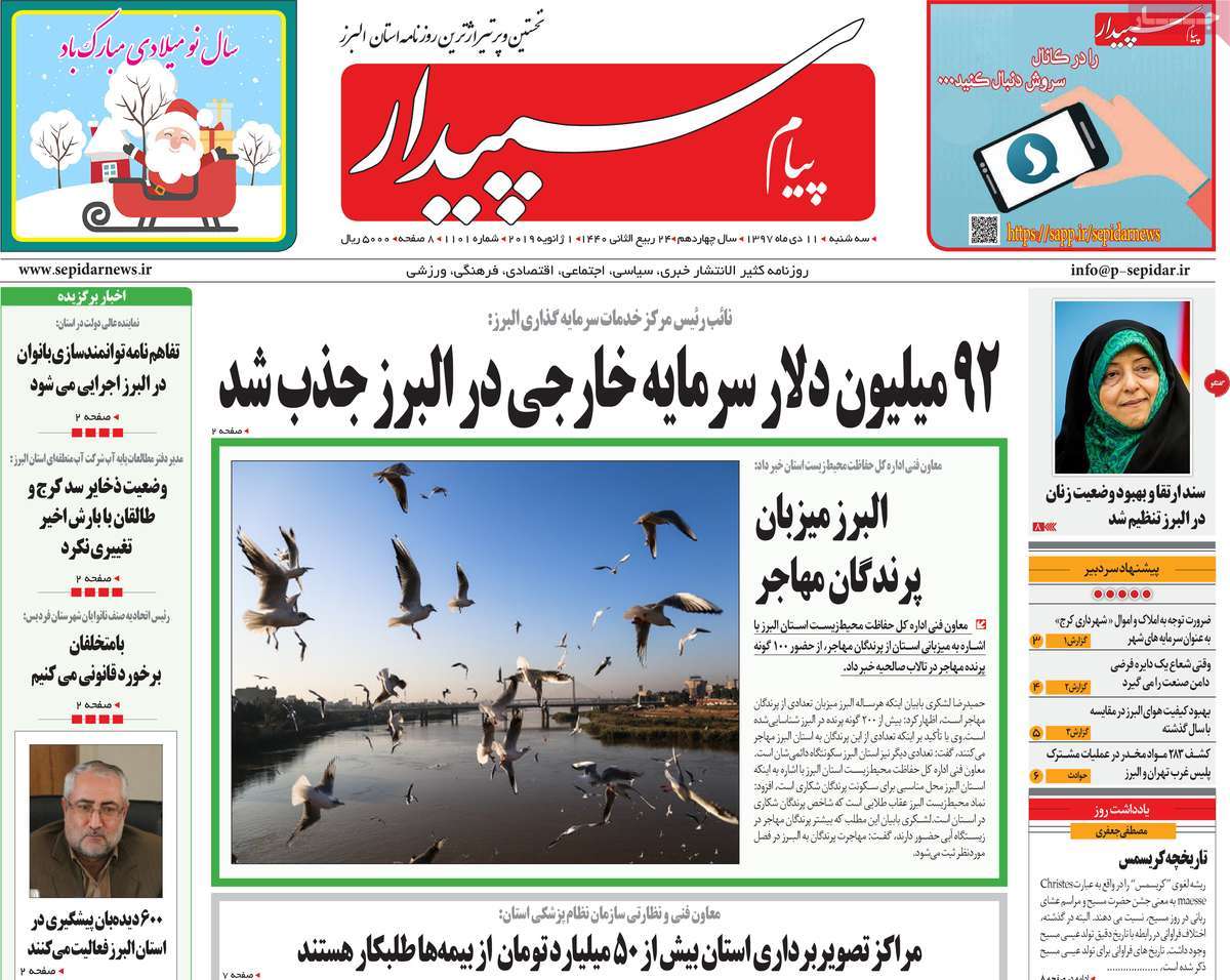 صفحه اول روزنامه های کشوری و استانی؛ سه شنبه یازدهم دی ماه 1397 /تصاویر
