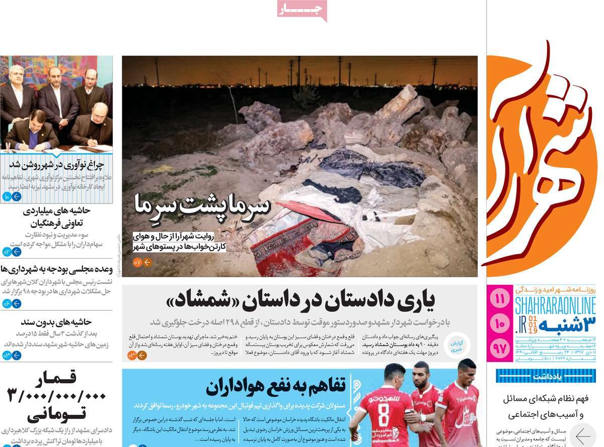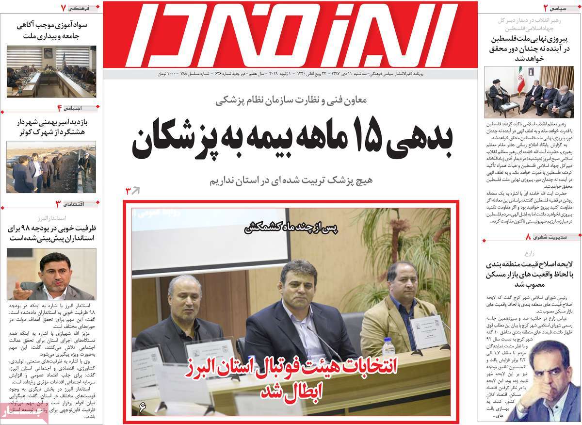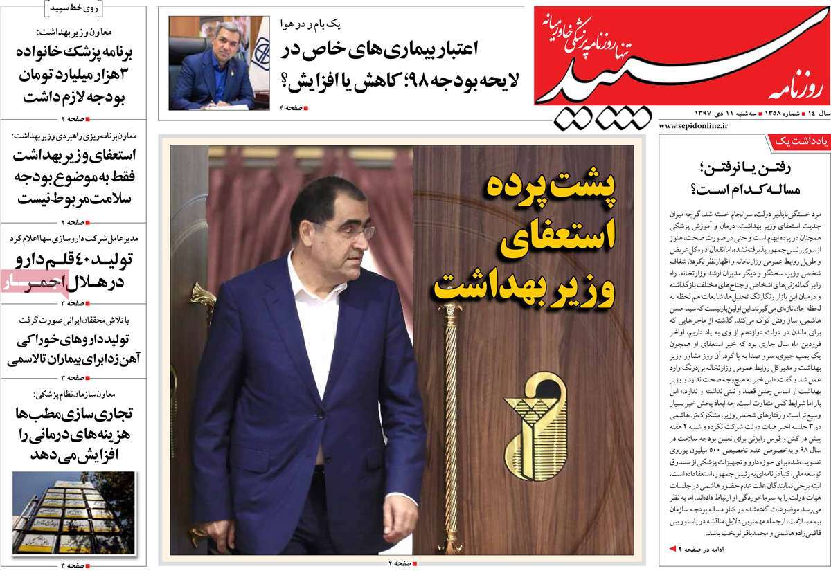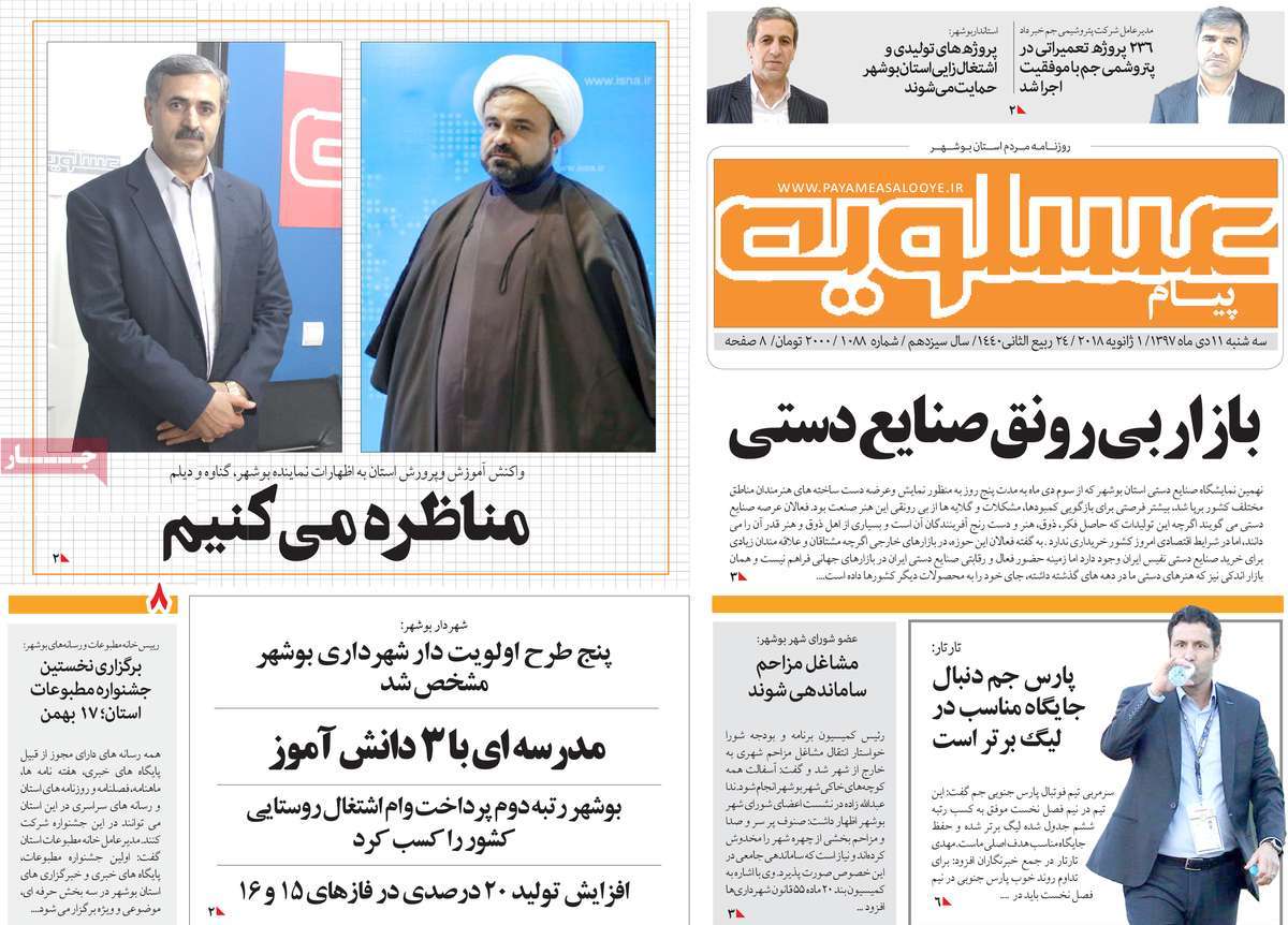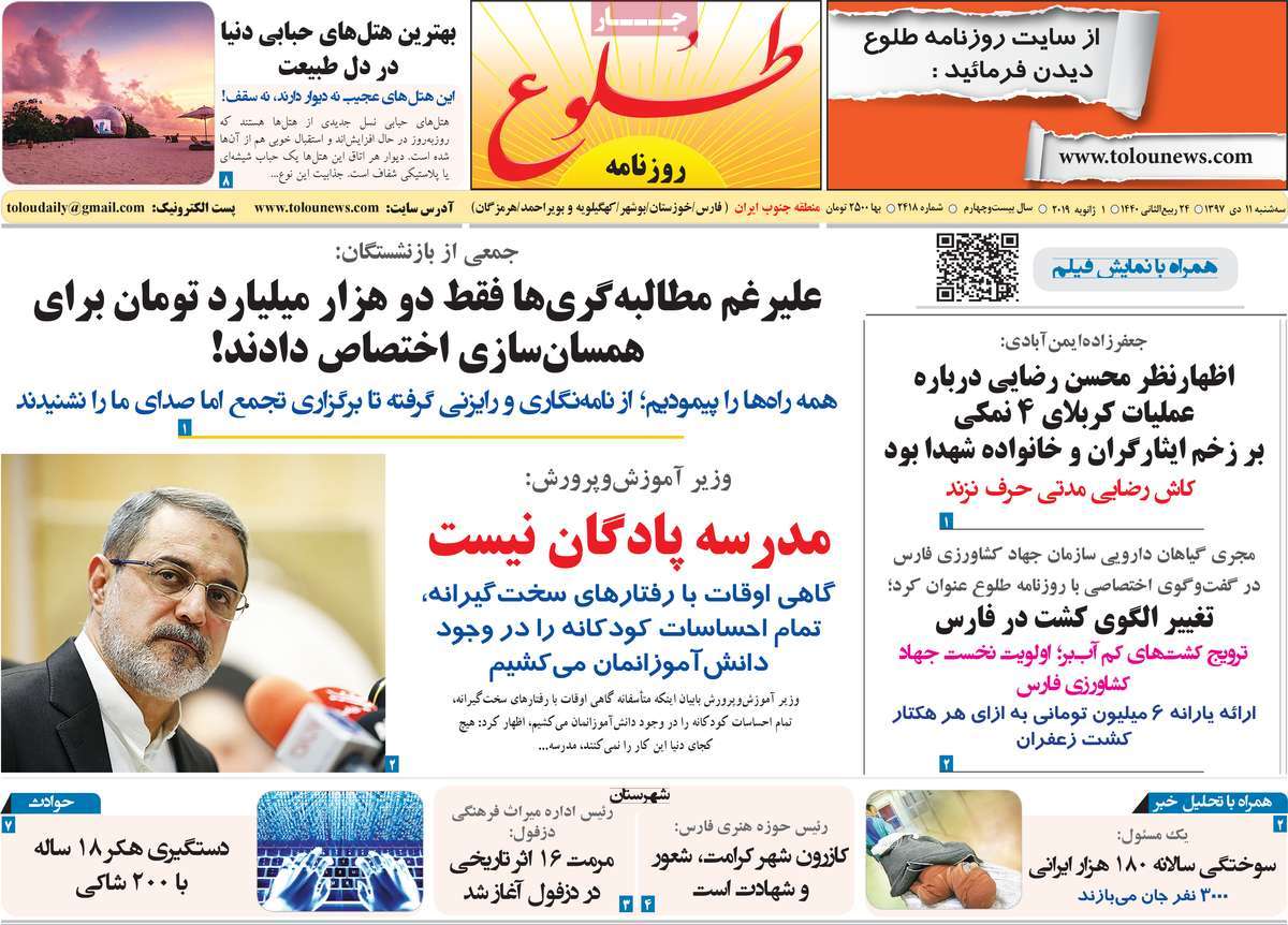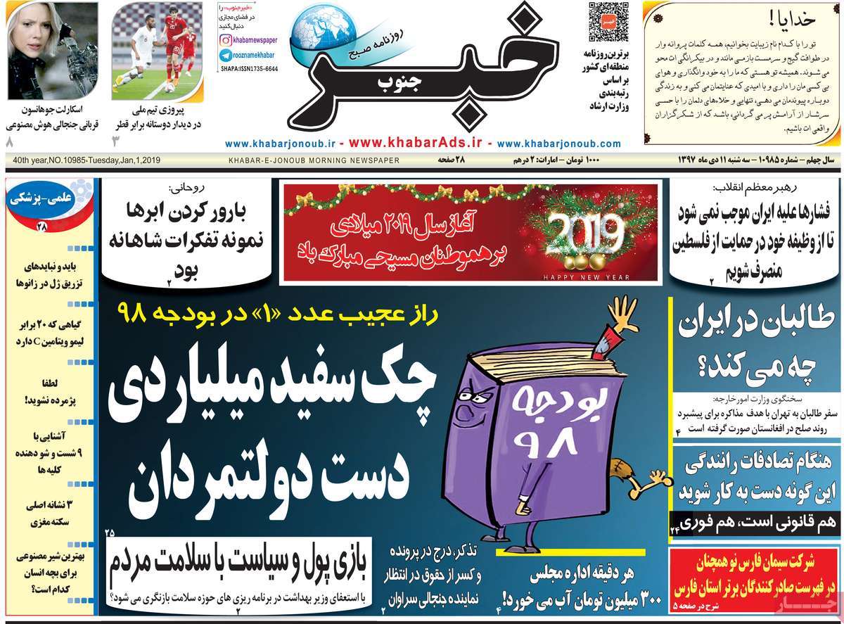 صفحه اول روزنامه های کشوری و استانی؛ سه شنبه یازدهم دی ماه 1397 /تصاویر