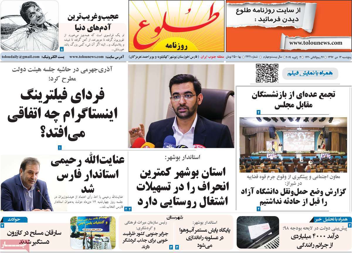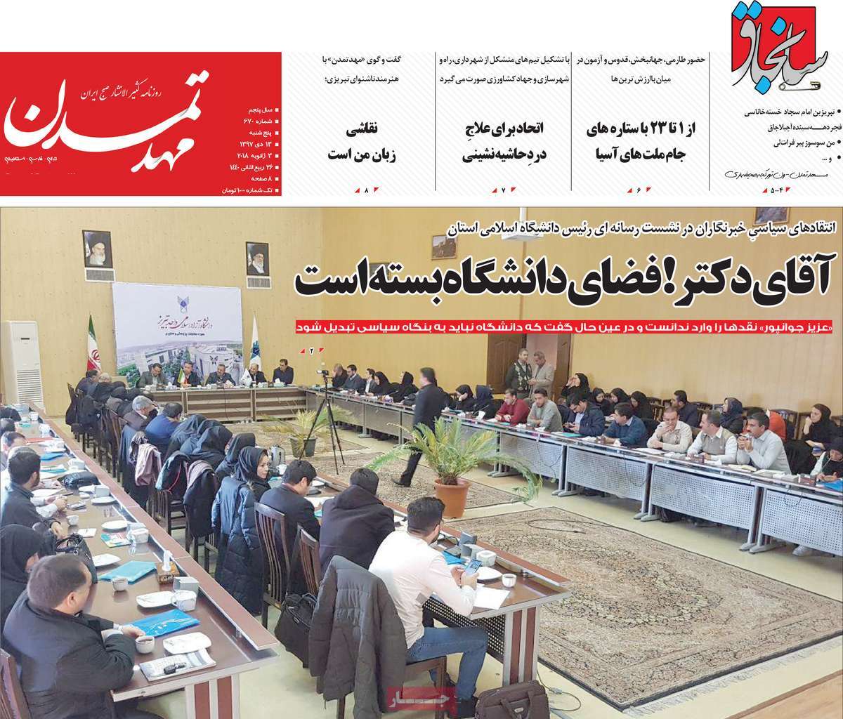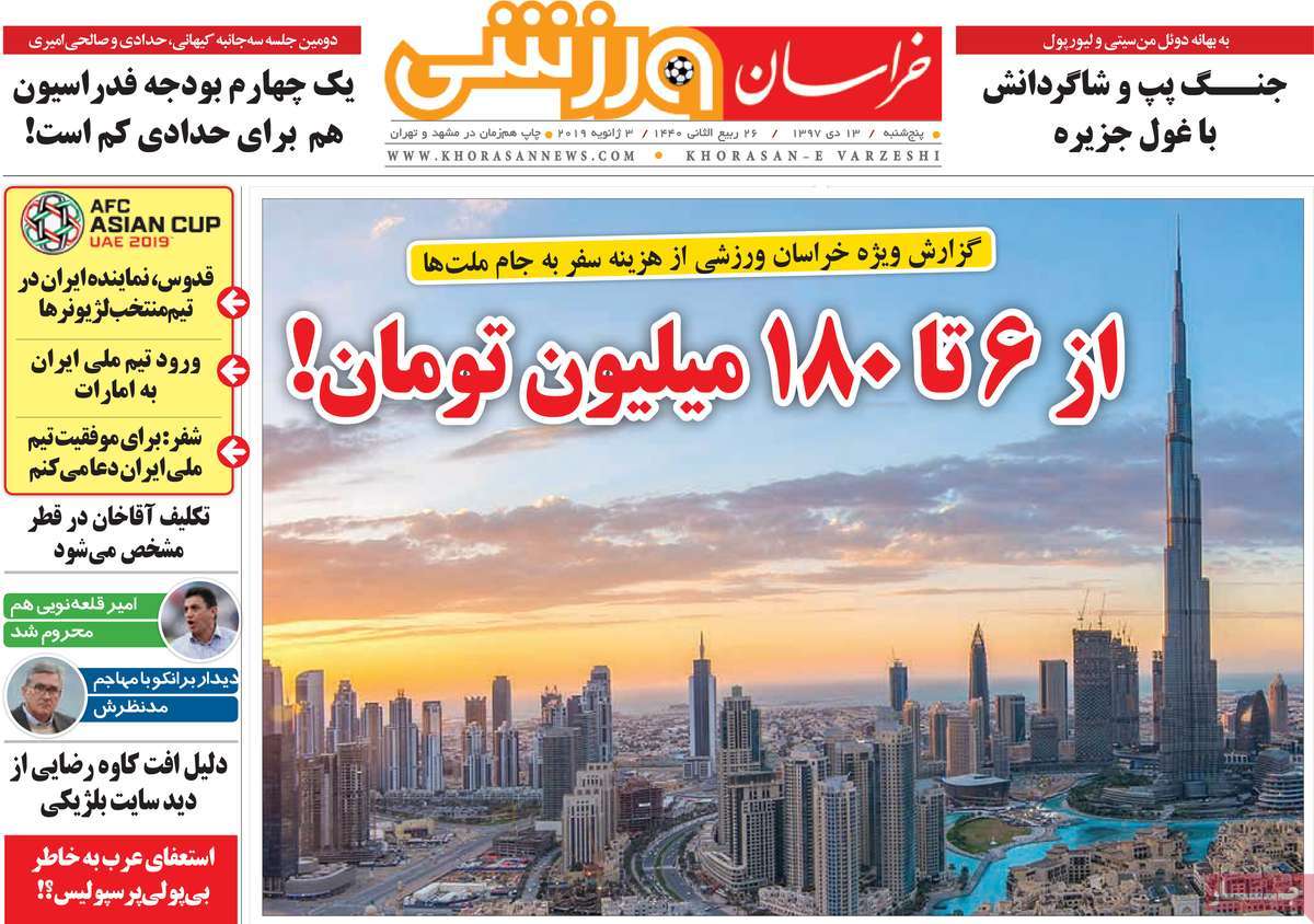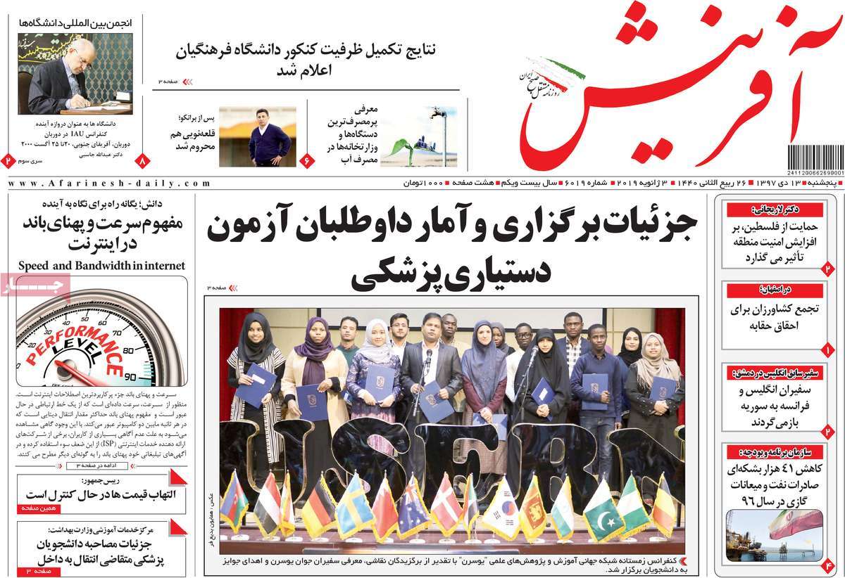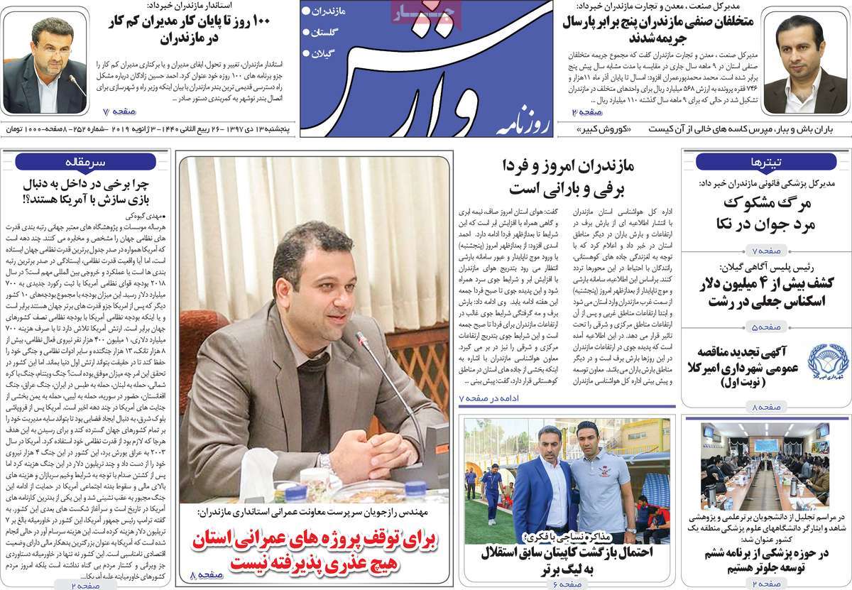 صفحه اول روزنامه های کشوری و استانی؛ پنج شنبه سیزدهم دی ماه 1397 /تصاویر
