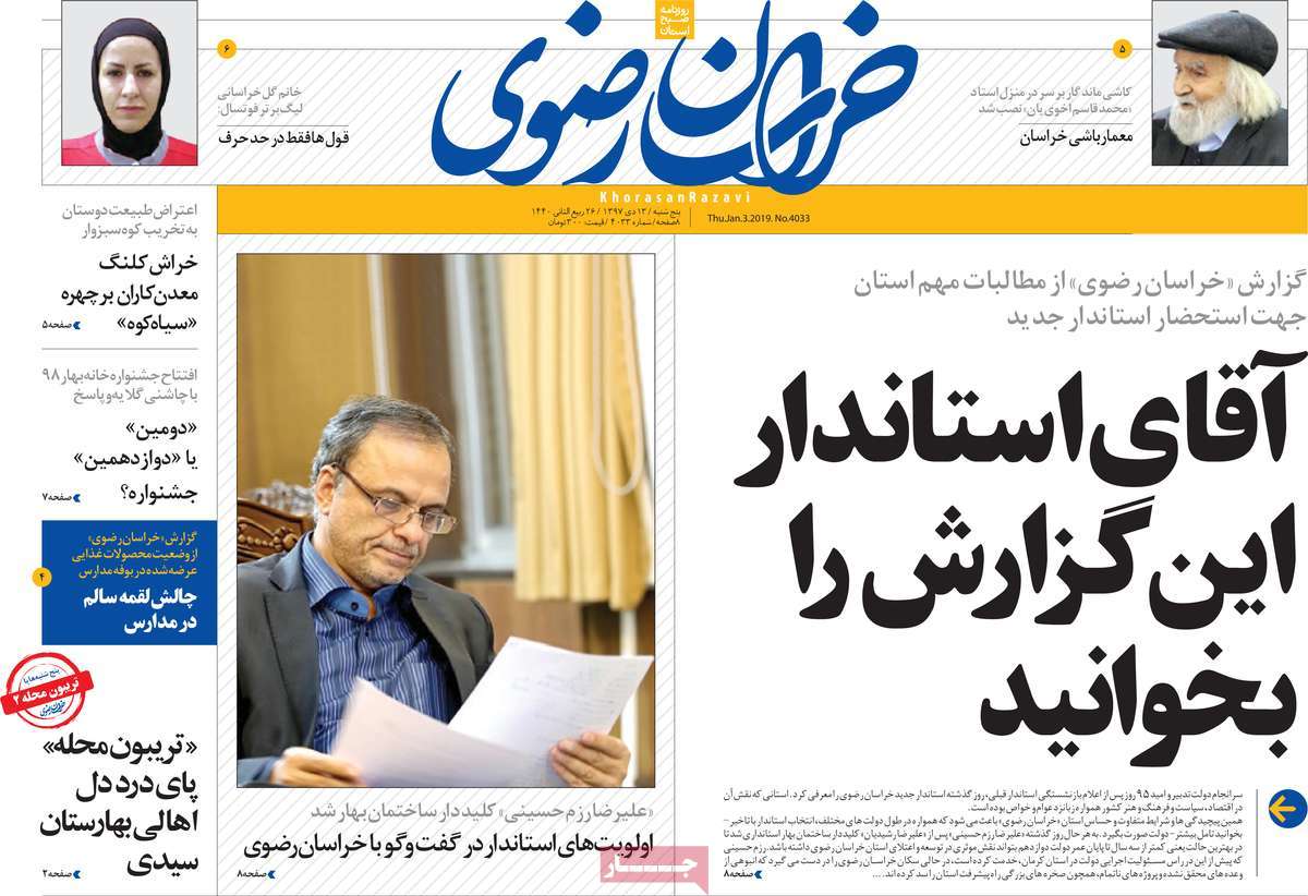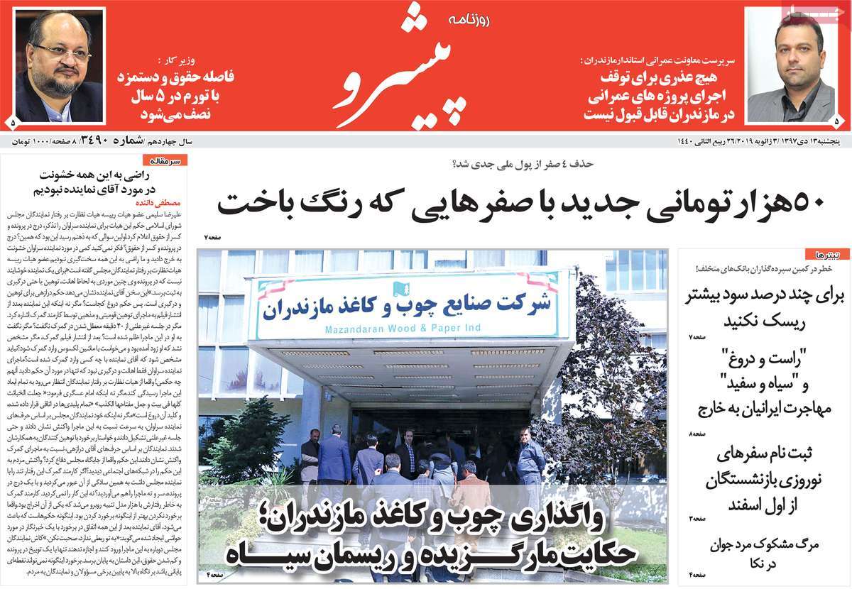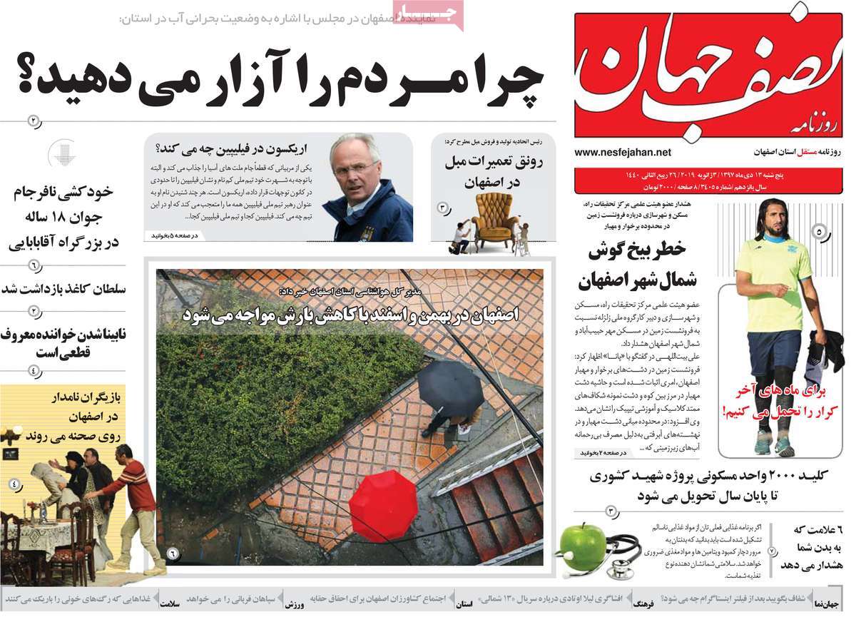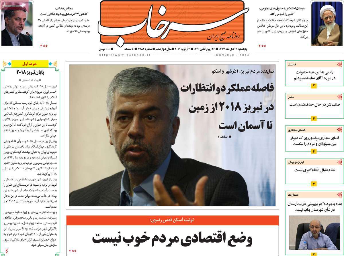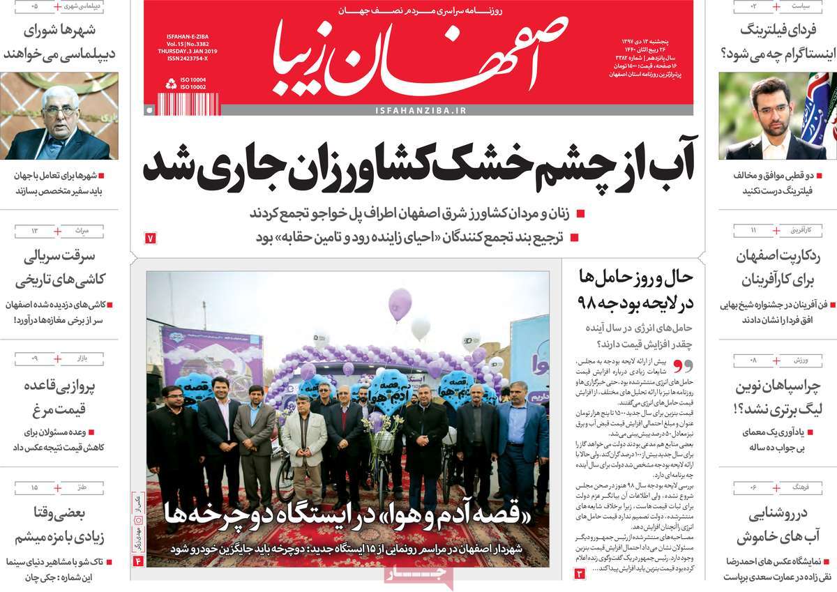 صفحه اول روزنامه های کشوری و استانی؛ پنج شنبه سیزدهم دی ماه 1397 /تصاویر