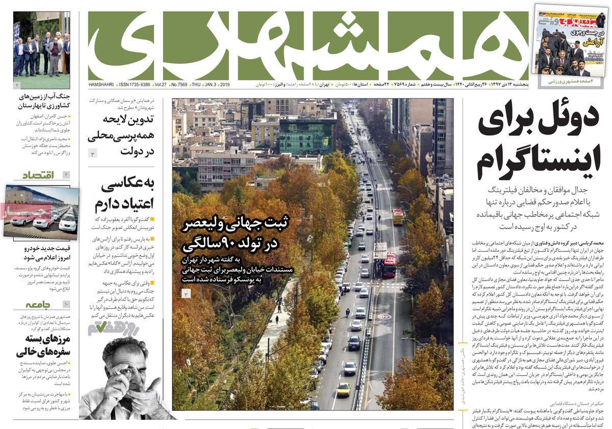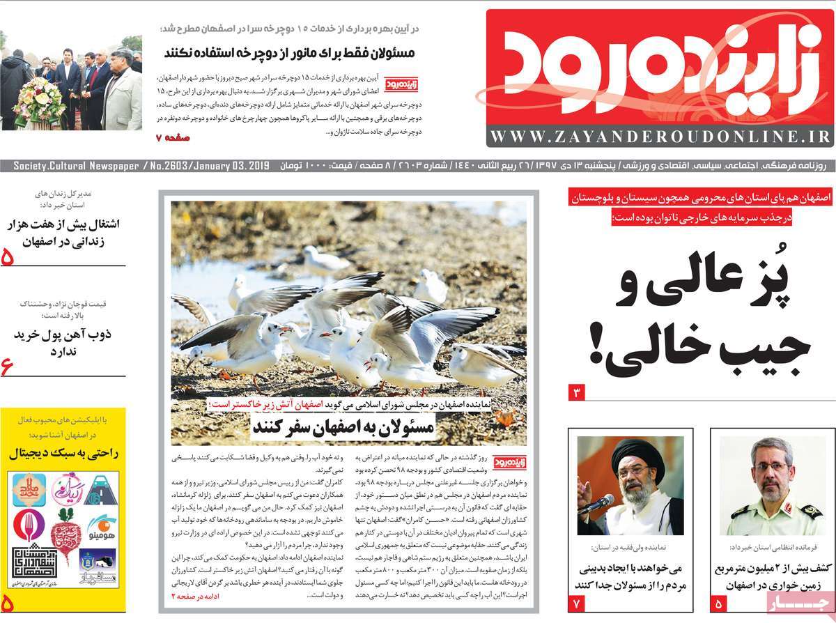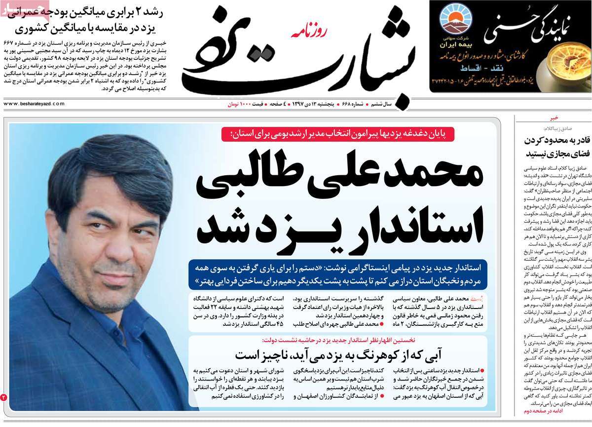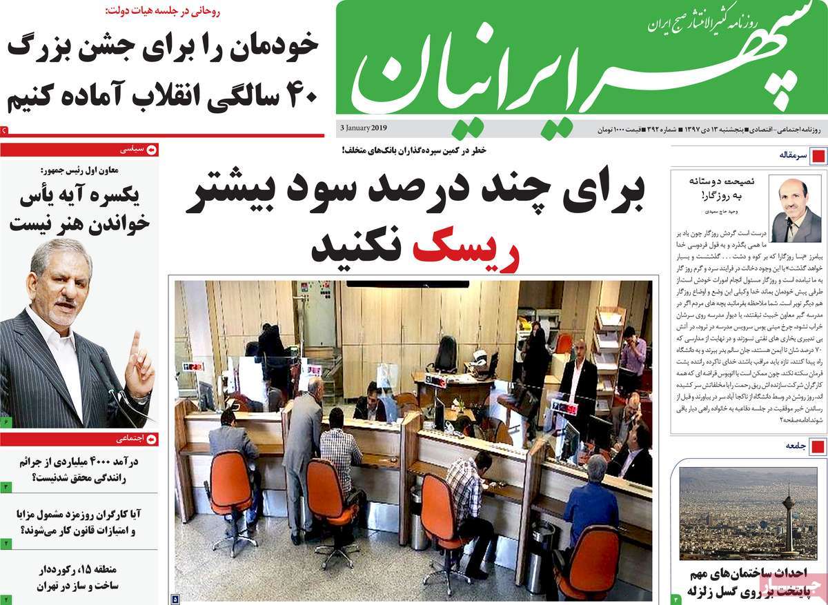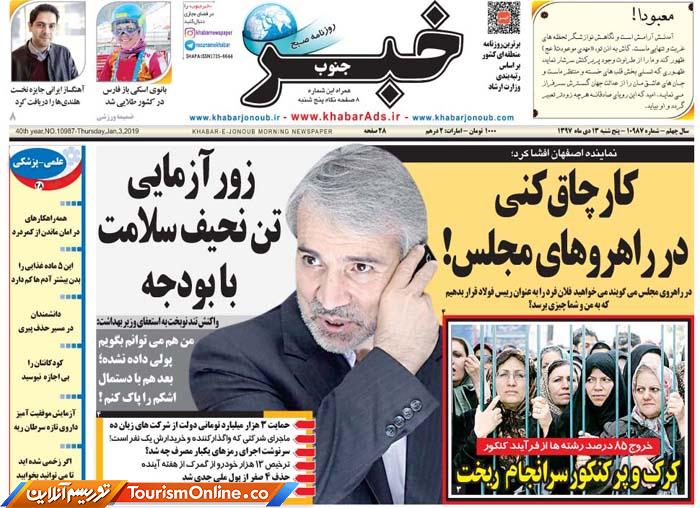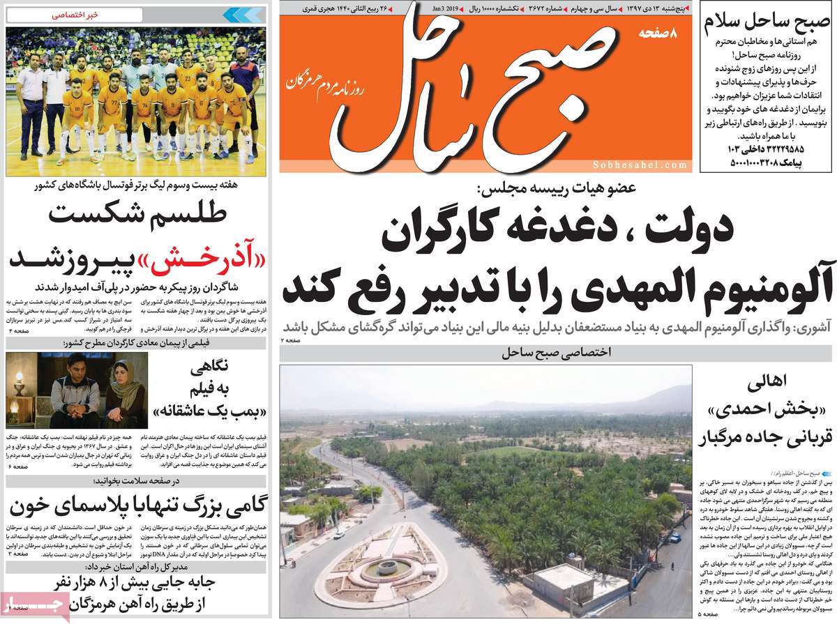 صفحه اول روزنامه های کشوری و استانی؛ پنج شنبه سیزدهم دی ماه 1397 /تصاویر