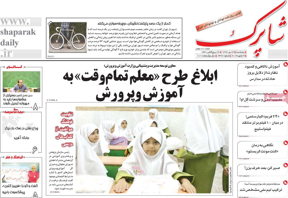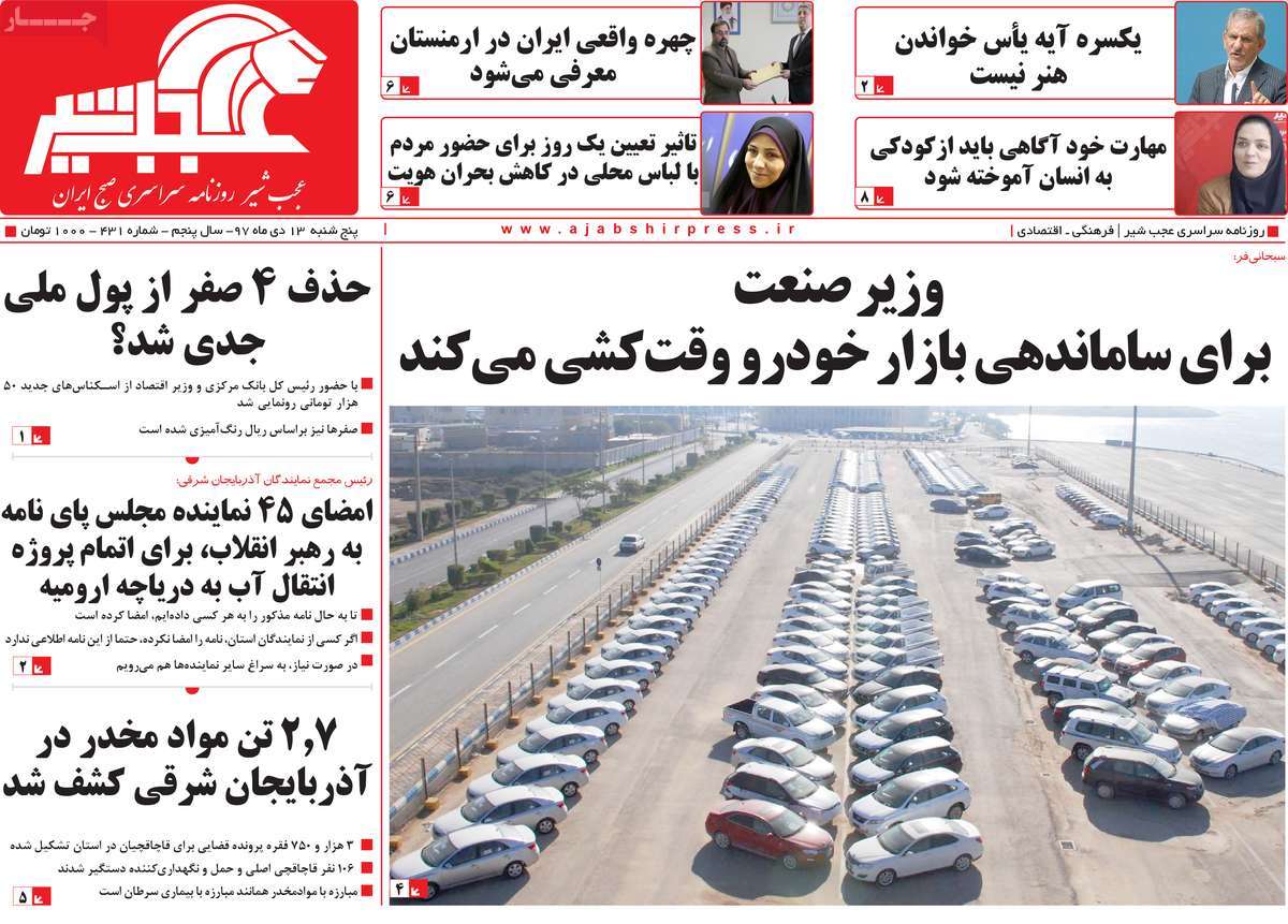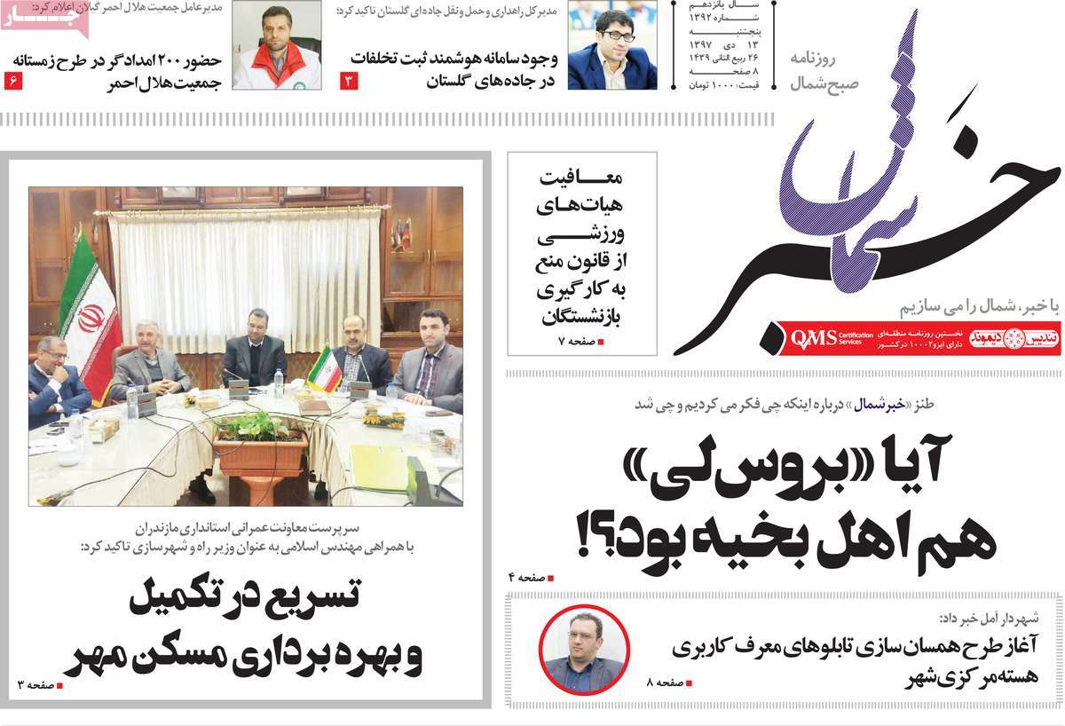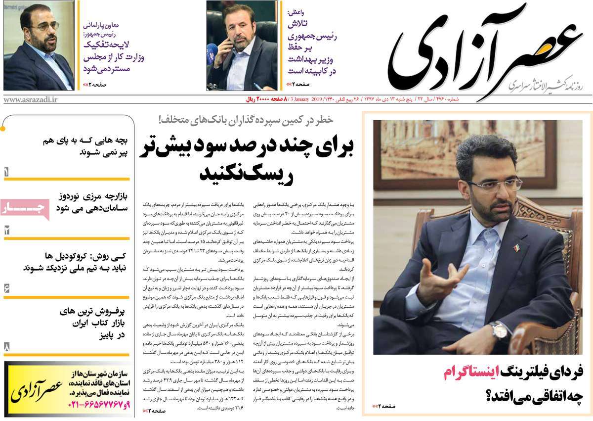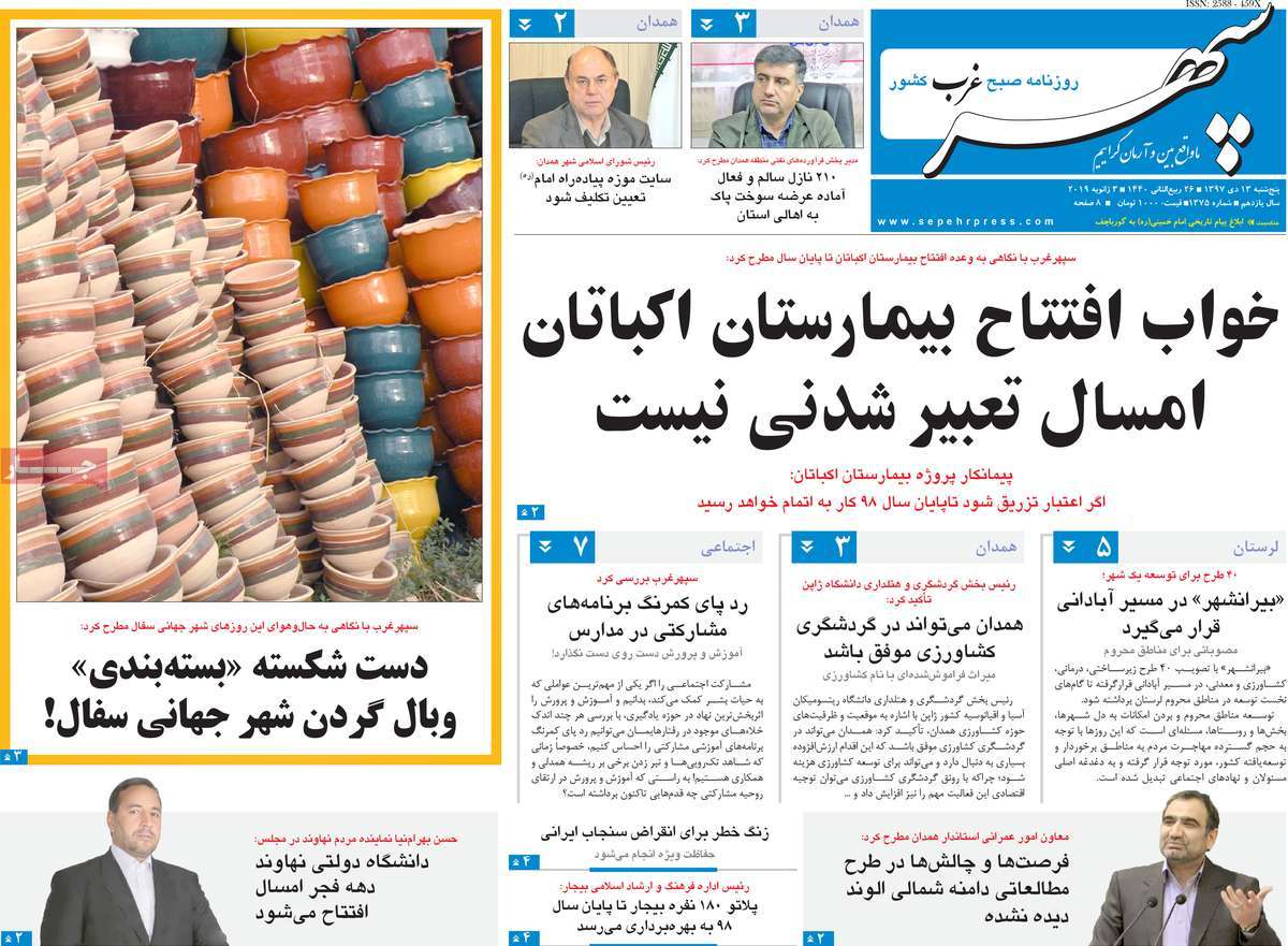 صفحه اول روزنامه های کشوری و استانی؛ پنج شنبه سیزدهم دی ماه 1397 /تصاویر