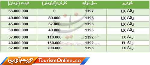 میزان:برای خرید انواع رانا در بازار بسته به میزان کارکرد و سال تولید آن‌ها باید هزینه‌های متفاوتی پرداخت کرد.