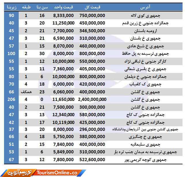 باشگاه خبرنگاران جوان: لیست آپارتمانهای موجود جهت خرید در محدوده خیابان جمهوری در جدول زیر آمده است.