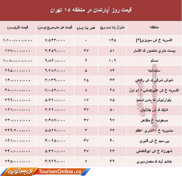 نرخ قطعی آپارتمان در منطقه۱۵ تهران؟ +جدول