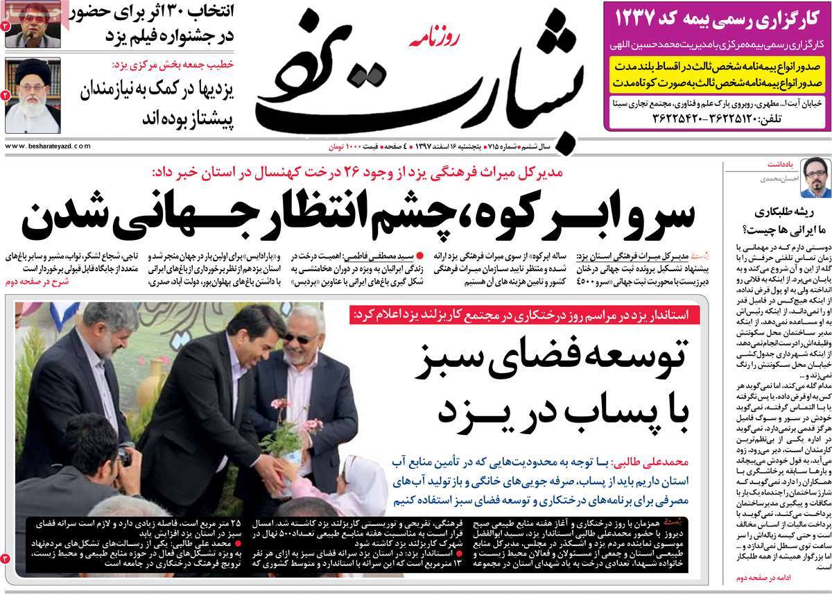 سعی کرده ایم صفحه اول بسیاری از روزنامه های استانی را نیز منتشر کنیم تا به نوعی از اخبار آنها نیز مطلع شویم