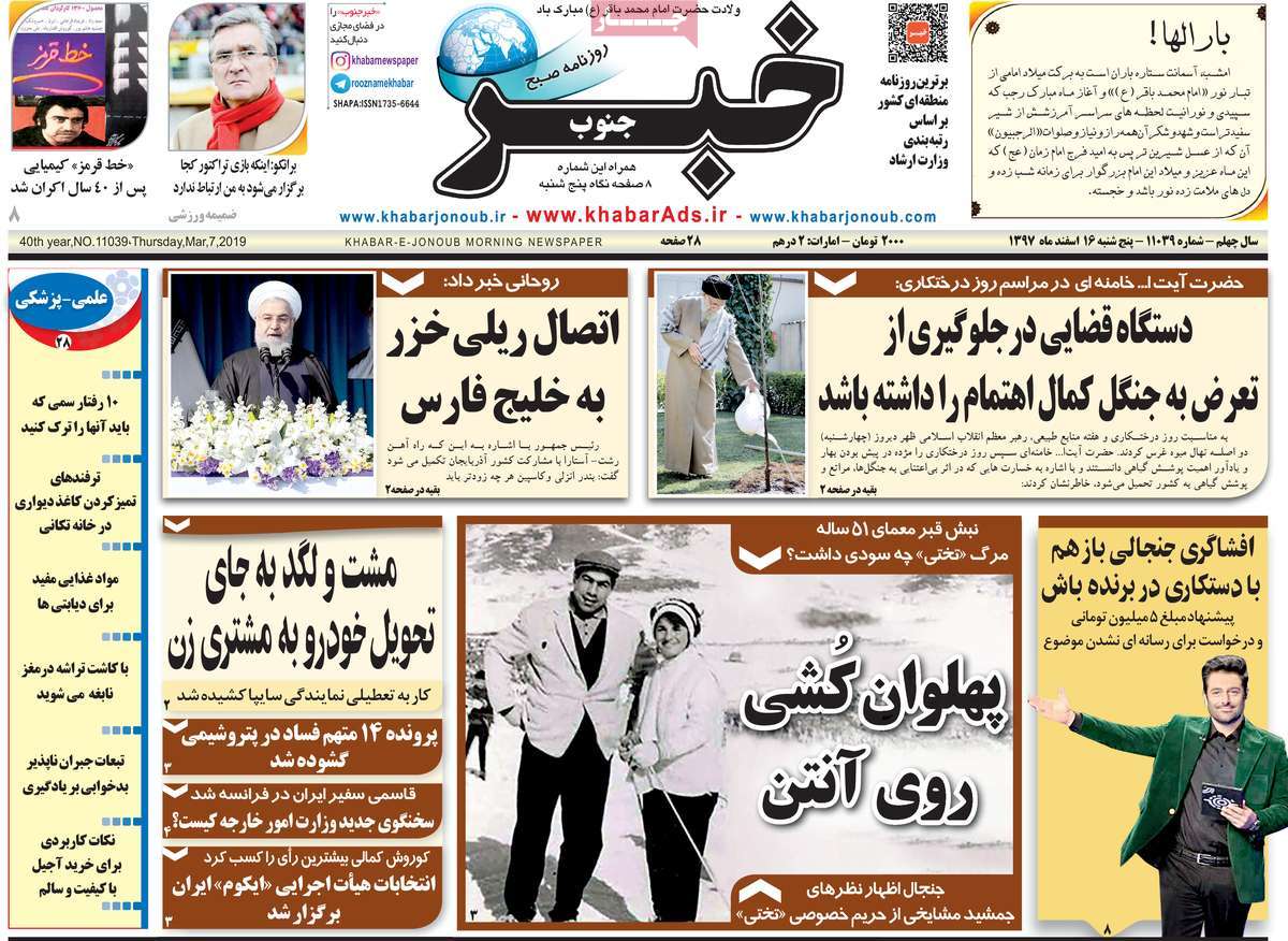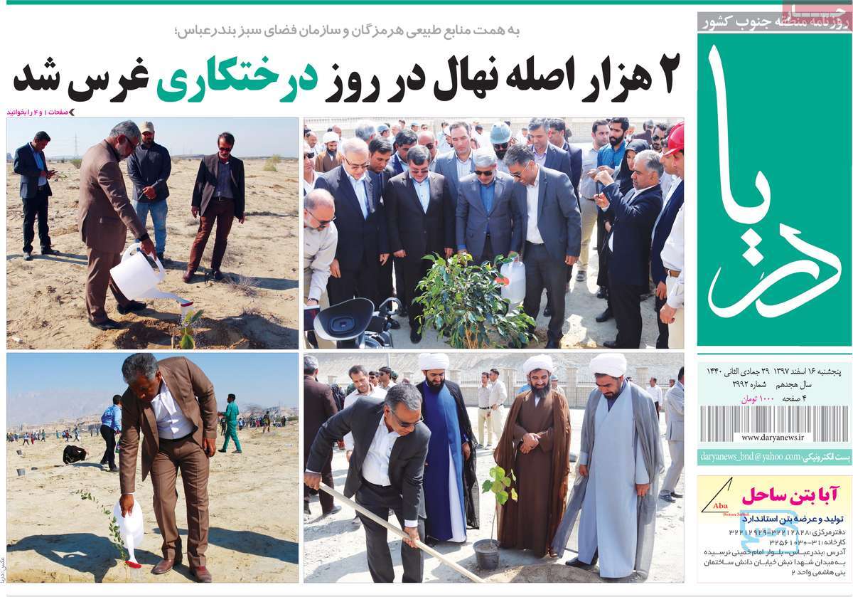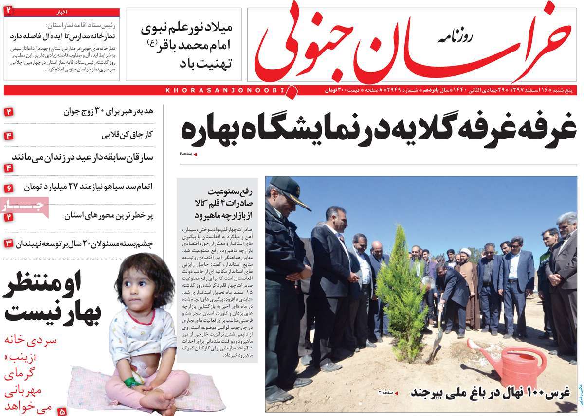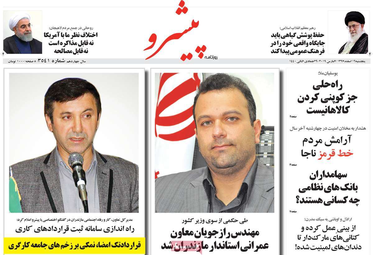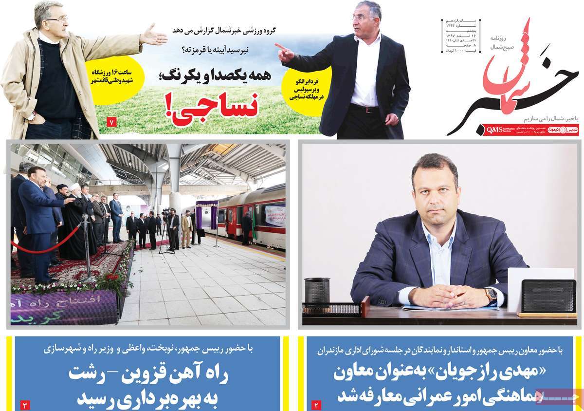صفحه اول روزنامه های کشوری و استانی؛ پنج شنبه ۱۶ اسفند ماه ۱۳۹۷ /تصاویر