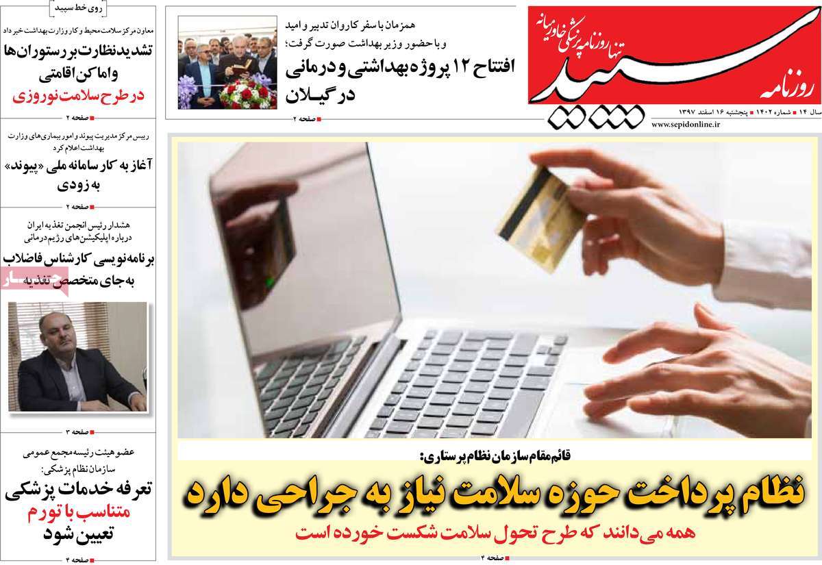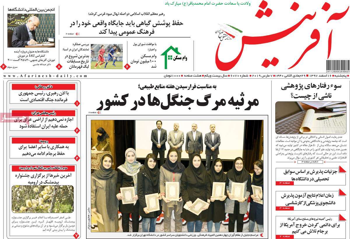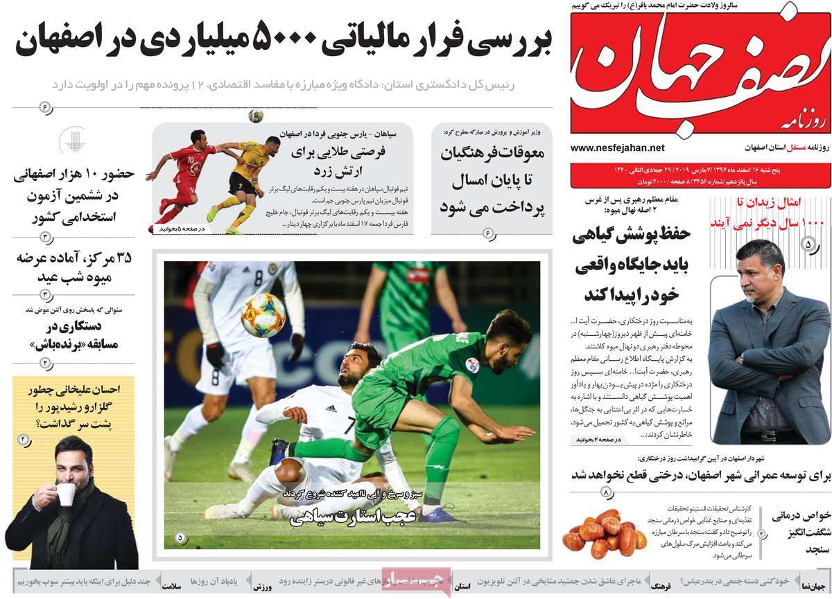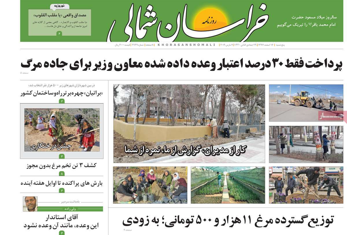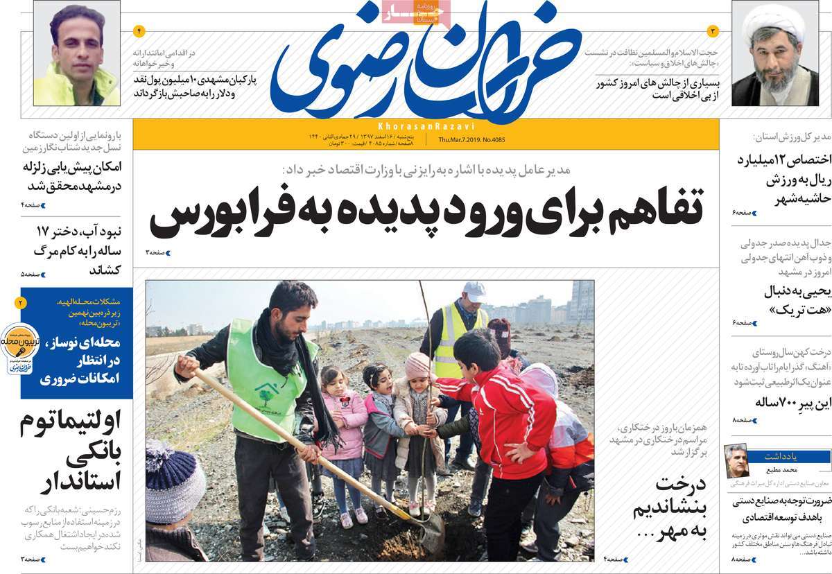 صفحه اول روزنامه های کشوری و استانی؛ پنج شنبه ۱۶ اسفند ماه ۱۳۹۷ /تصاویر