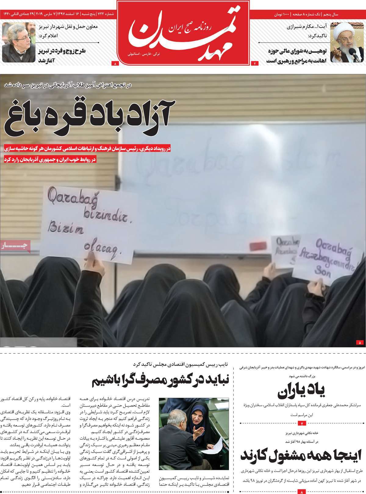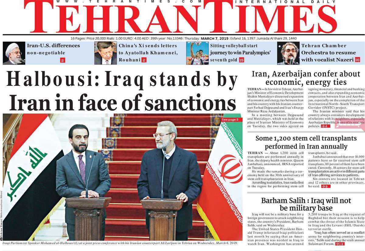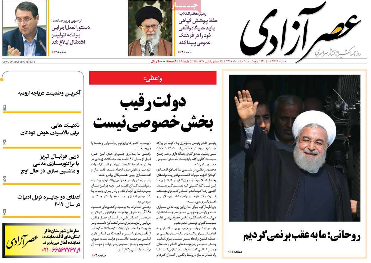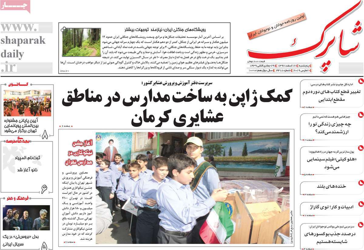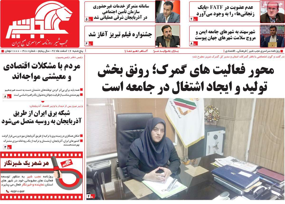 صفحه اول روزنامه های کشوری و استانی؛ پنج شنبه ۱۶ اسفند ماه ۱۳۹۷ /تصاویر