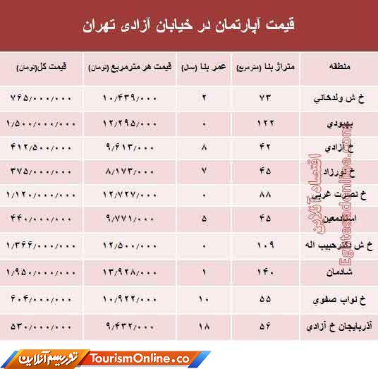 قیمت واحد مسکونی در خیابان آزادی تهران +جدول