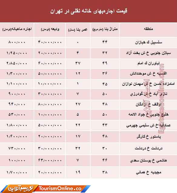 مظنه اجارهبهای خانه نقلی در تهران؟ +جدول