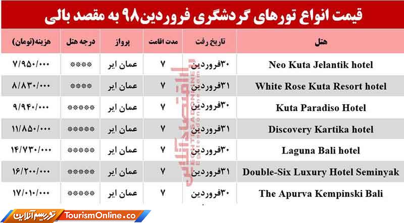 خانه/میراث فرهنگی و گردشگری/گردشگری/۷شب اقامت در بالی چقدر هزینه دارد؟ گردشگری ۷شب اقامت در بالی چقدر هزینه دارد؟ 28 فروردین 13980 فیس بوک توییتر لینکدین پینترست اقتصادآنلاین: قیمت انواع تورهای گردشگری به مقصد بالی در فروردین۹۸ به شرح جدول زیر است؛ امتیاز کاربر: اولین نفر باشید ! برچسب هاانواع تورهای گردشگری انواع تورهای گردشگری بالی بالی تورهای گردشگری بالی گردشگری بالی 28 فروردین 13980 فیس بوک توییتر لینکدین پینترست
