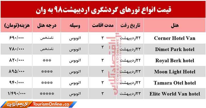 خانه/میراث فرهنگی و گردشگری/گردشگری/تور زمینی وان ترکیه چند؟ گردشگری تور زمینی وان ترکیه چند؟ 23 اردیبهشت 13980 فیس بوک توییتر لینکدین پینترست اقتصادآنلاین: قیمت انواع تورهای گردشگری به مقصد وان در اردیبهشت۹۸ به شرح جدول زیر است؛ امتیاز کاربر: اولین نفر باشید ! برچسب هاانواع تورهای گردشگری ترکیبی تورهای گردشگری قیمت انواع تورهای گردشگری قیمت انواع تورهای گردشگری به مقصد وان وان 23 اردیبهشت 13980 فیس بوک توییتر لینکدین پینترست