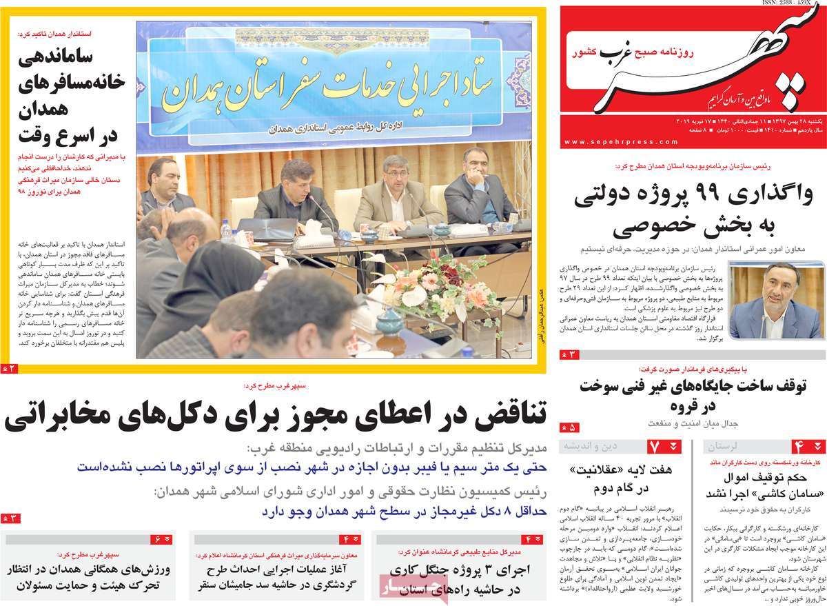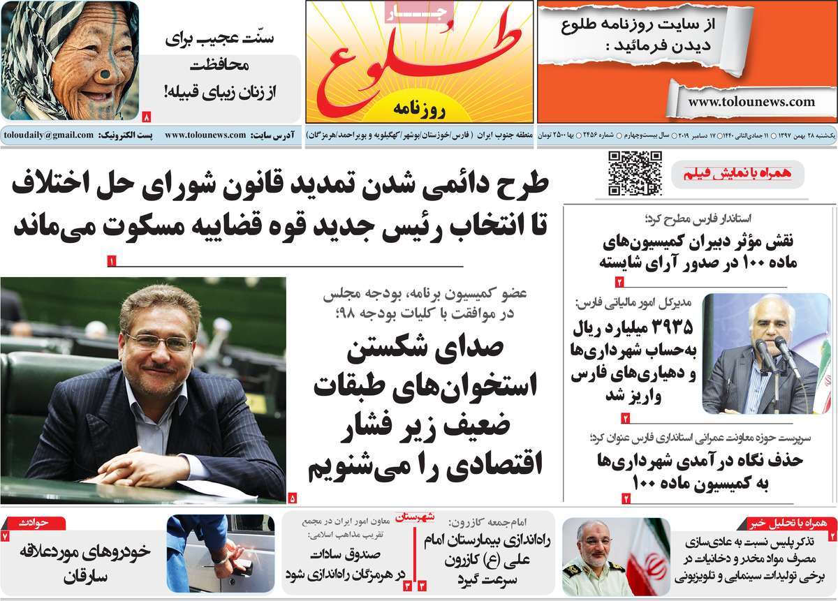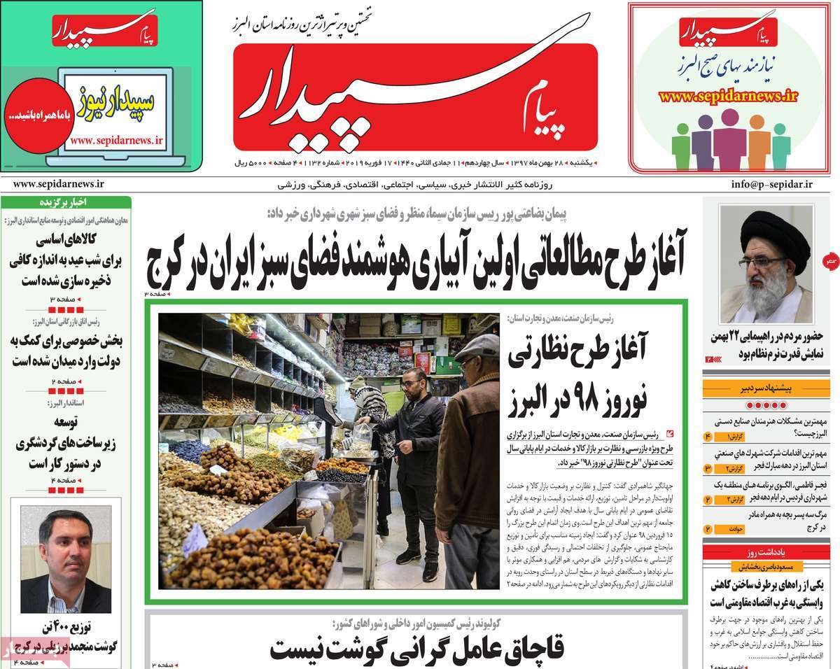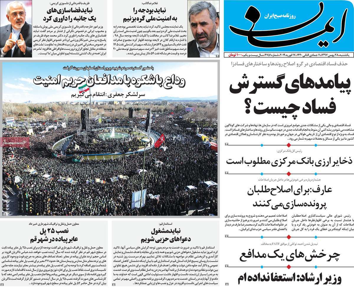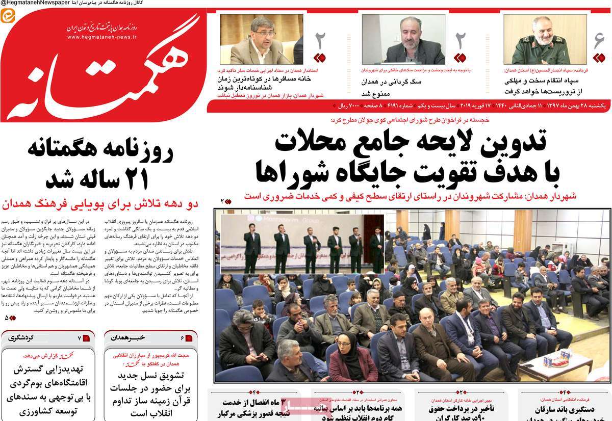 صفحه اول روزنامه های کشوری و استانی؛ یکشنبه 28 بهمن ماه 1397 /تصاویر