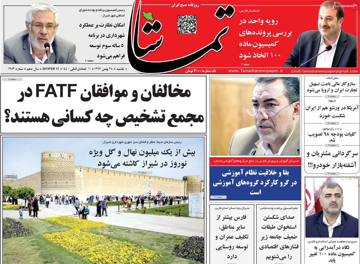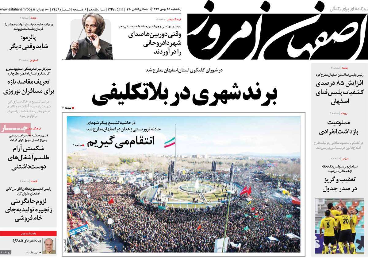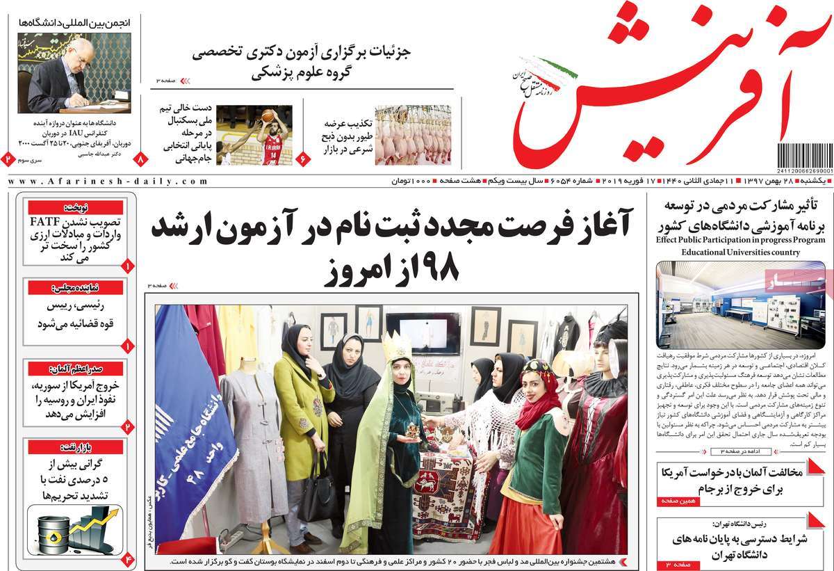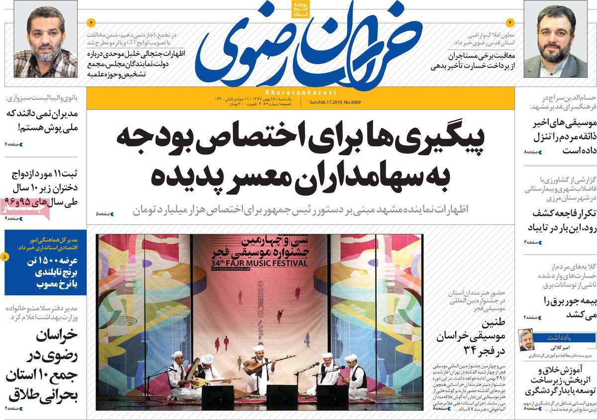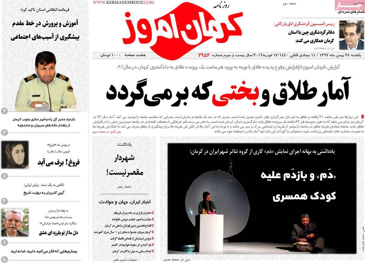 صفحه اول روزنامه های کشوری و استانی؛ یکشنبه 28 بهمن ماه 1397 /تصاویر