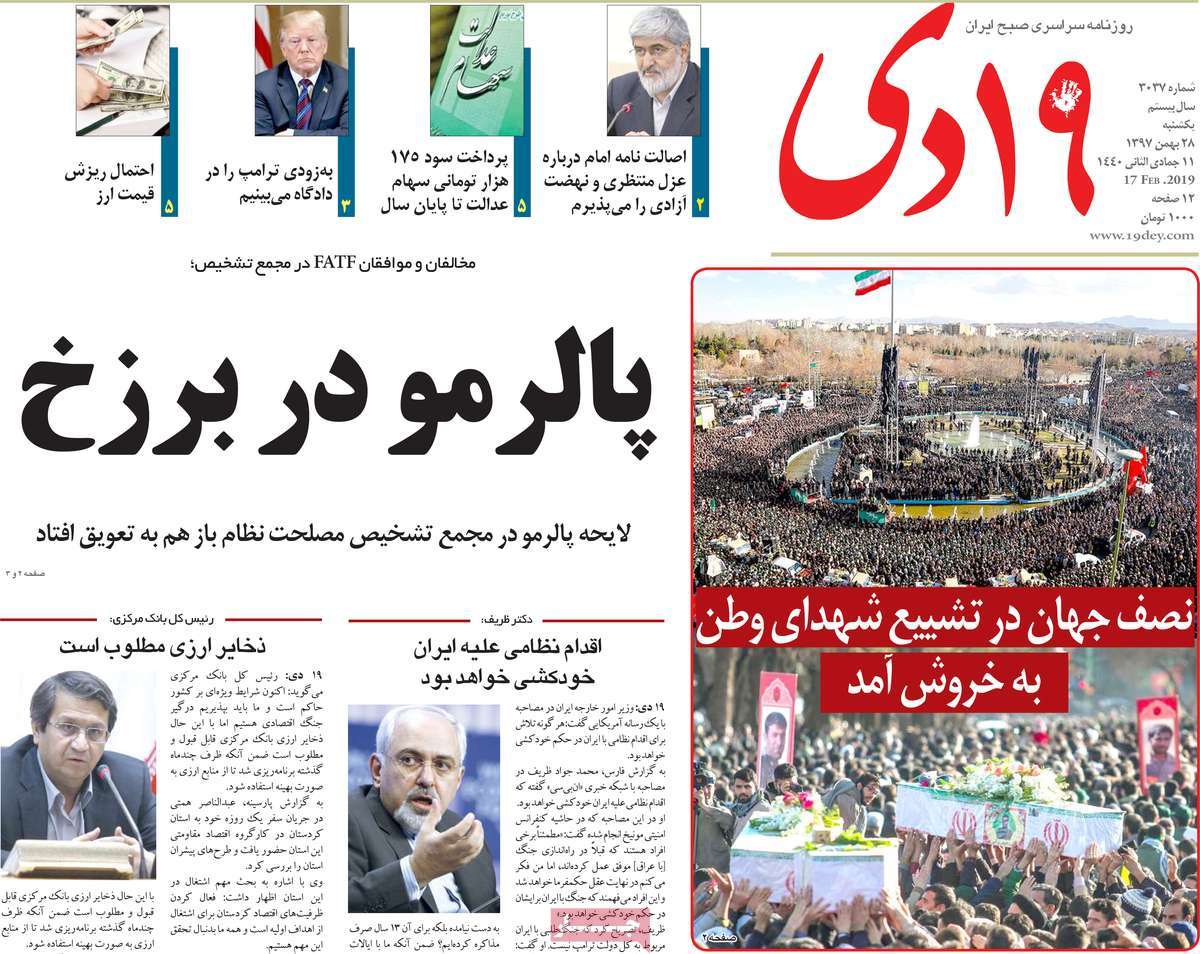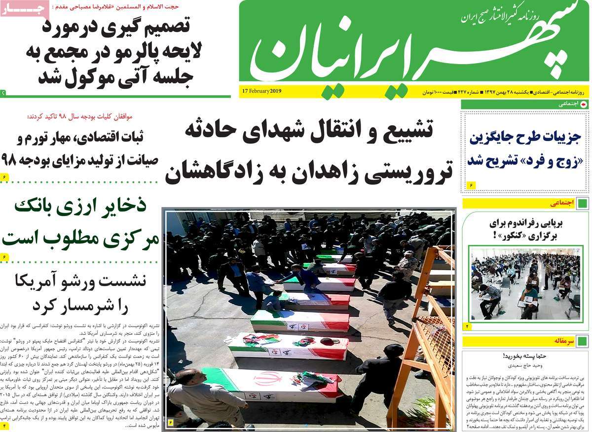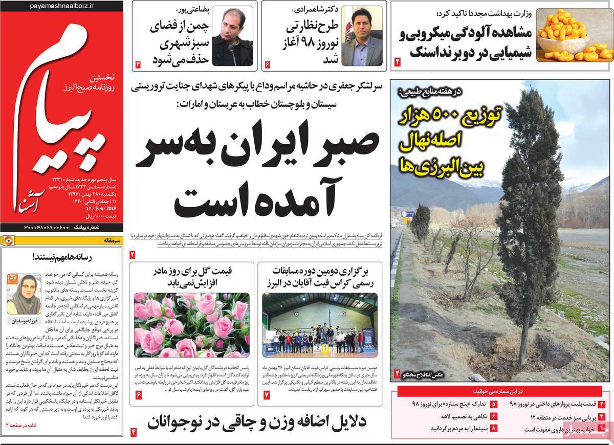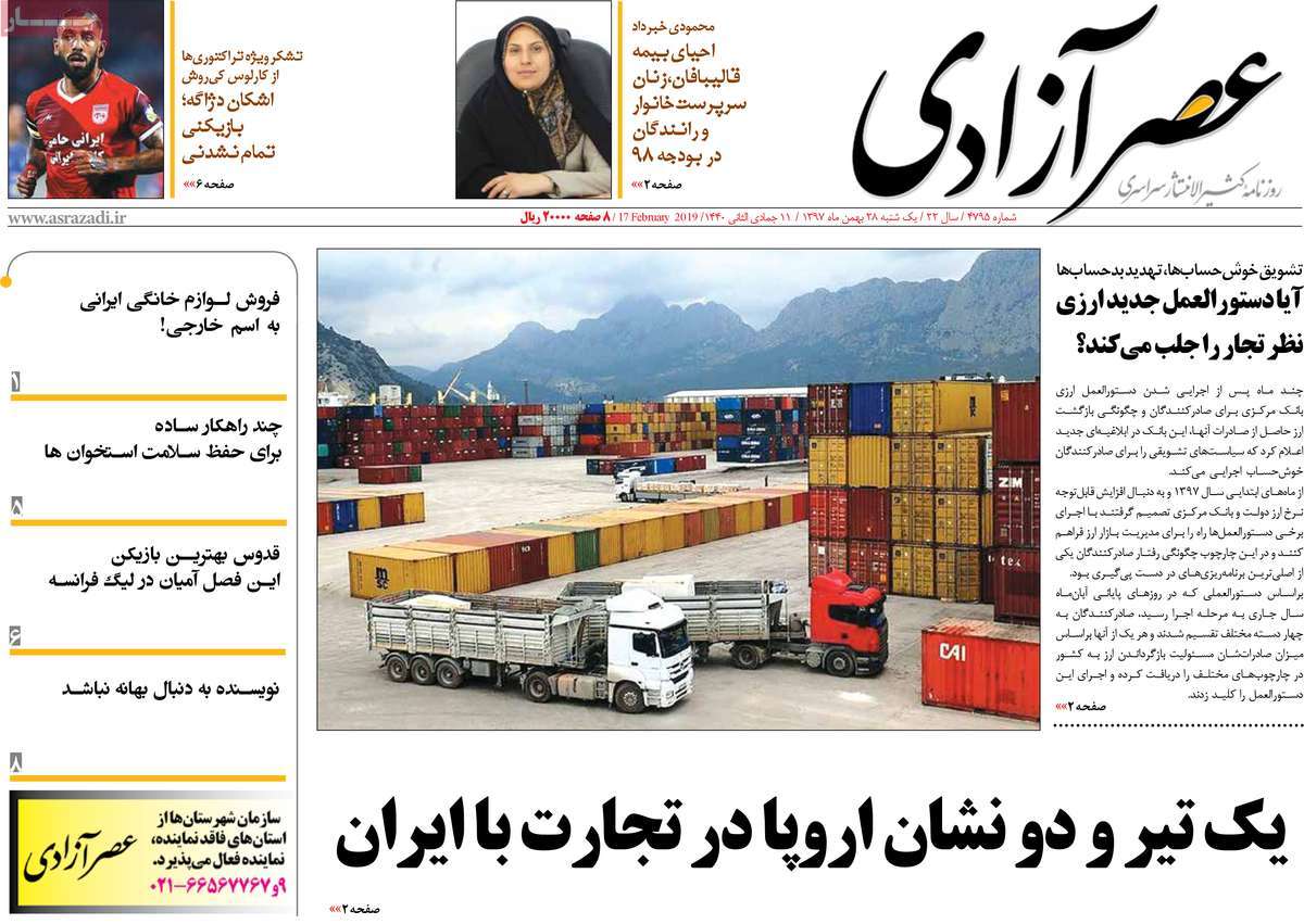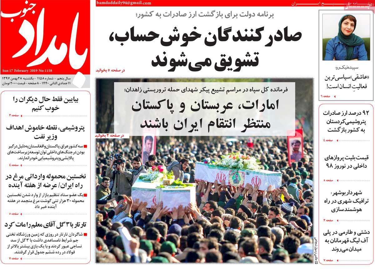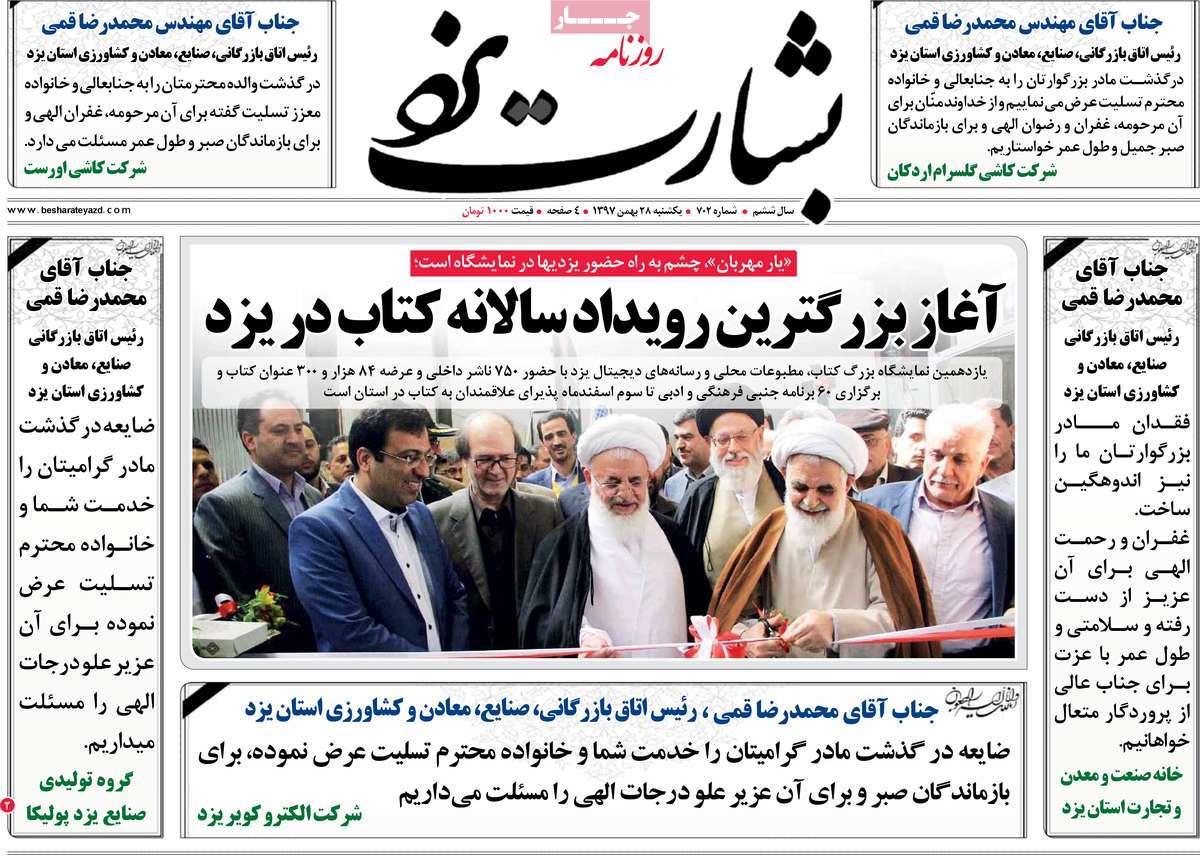 صفحه اول روزنامه های کشوری و استانی؛ یکشنبه 28 بهمن ماه 1397 /تصاویر