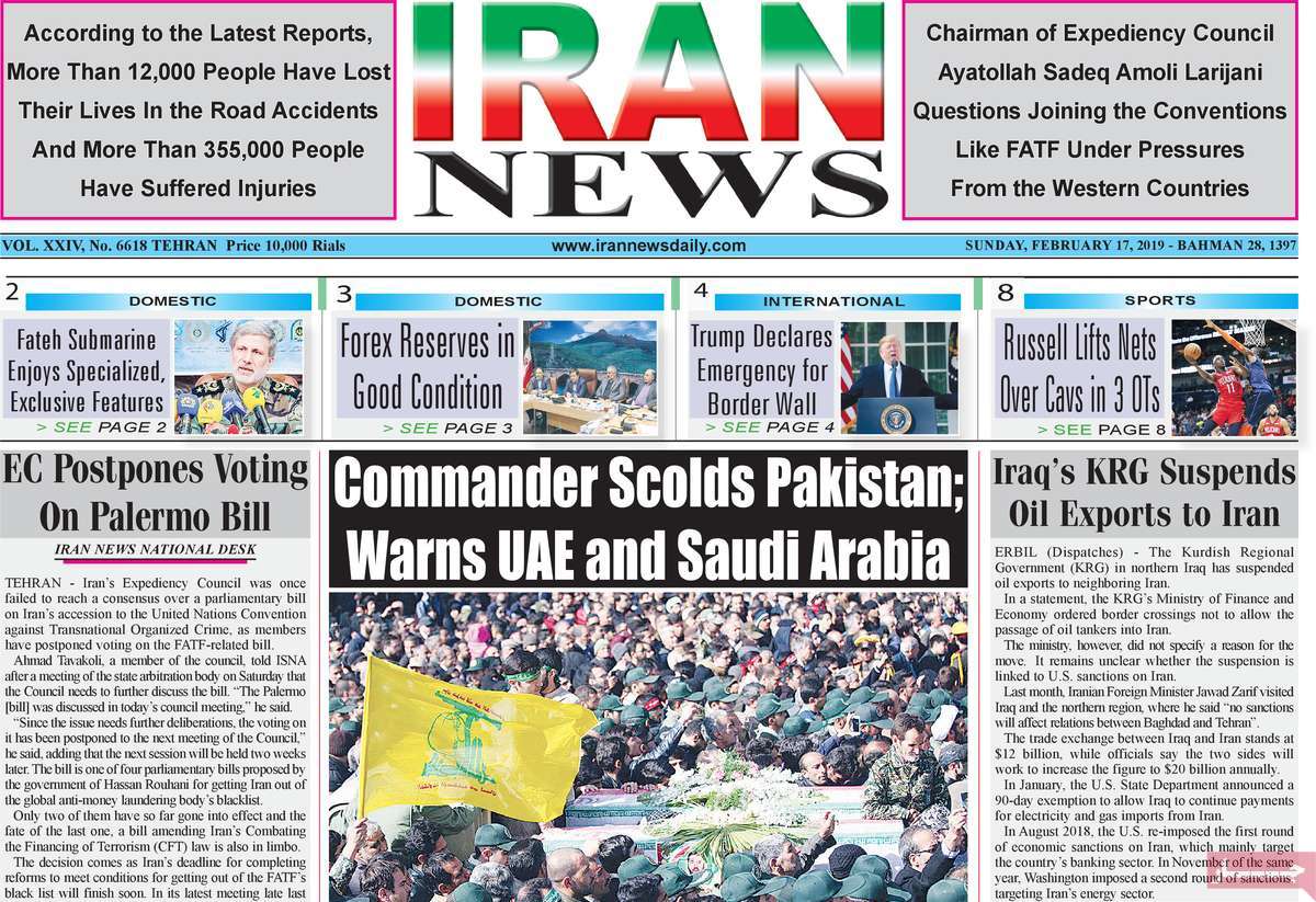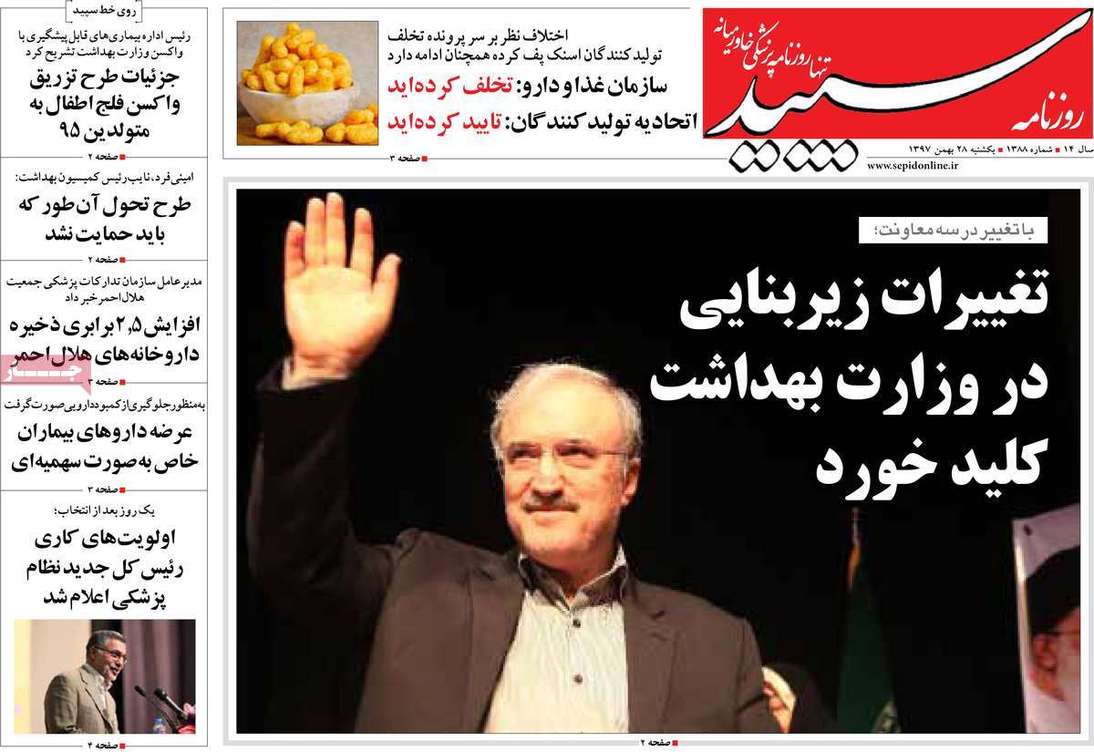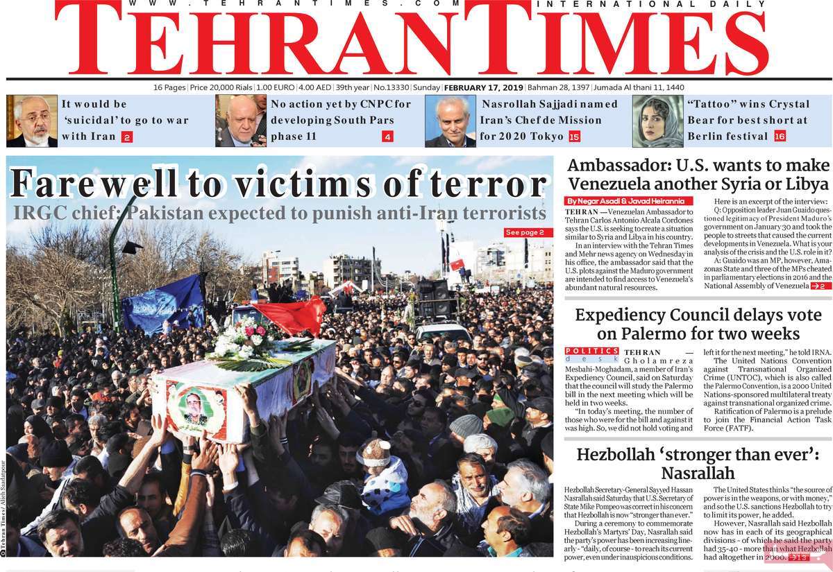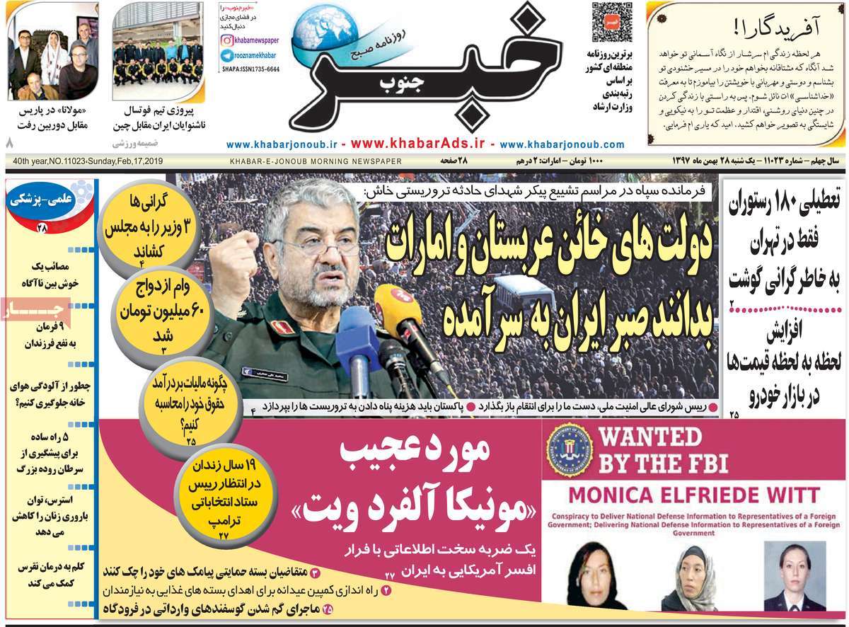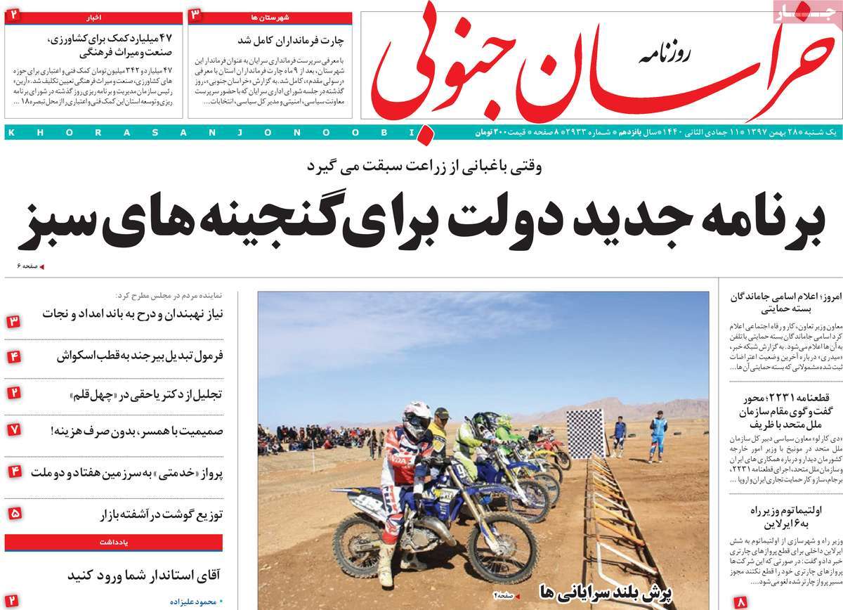 صفحه اول روزنامه های کشوری و استانی؛ یکشنبه 28 بهمن ماه 1397 /تصاویر