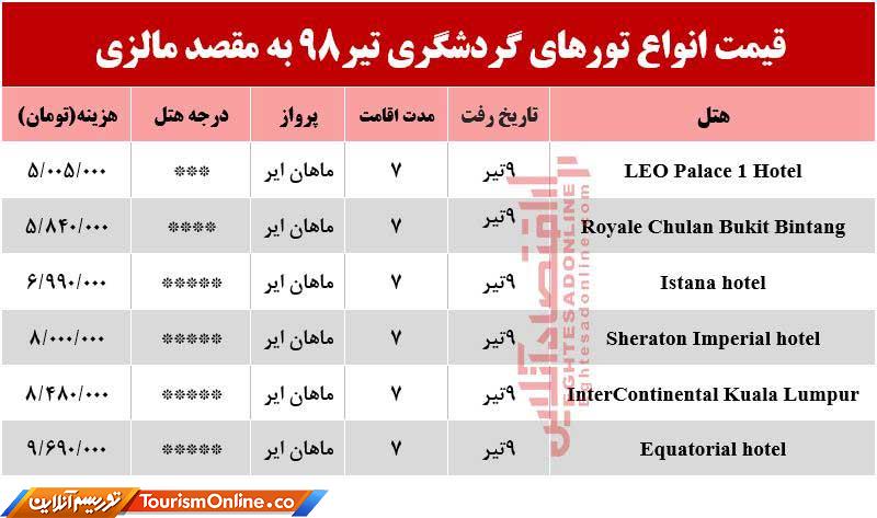 اقتصادآنلاین: قیمت انواع تورهای گردشگری به مقصد کوالالامپور مالزی در تیر۹۸ به شرح جدول زیر است؛