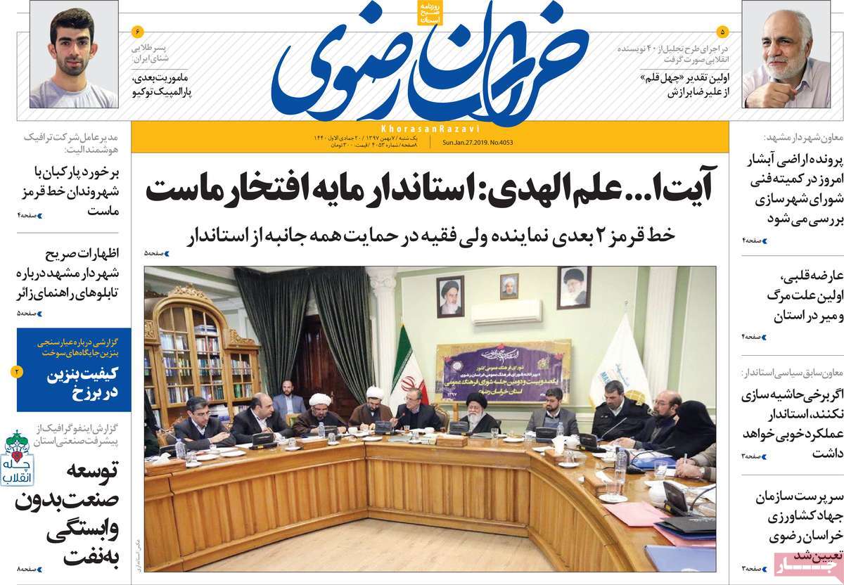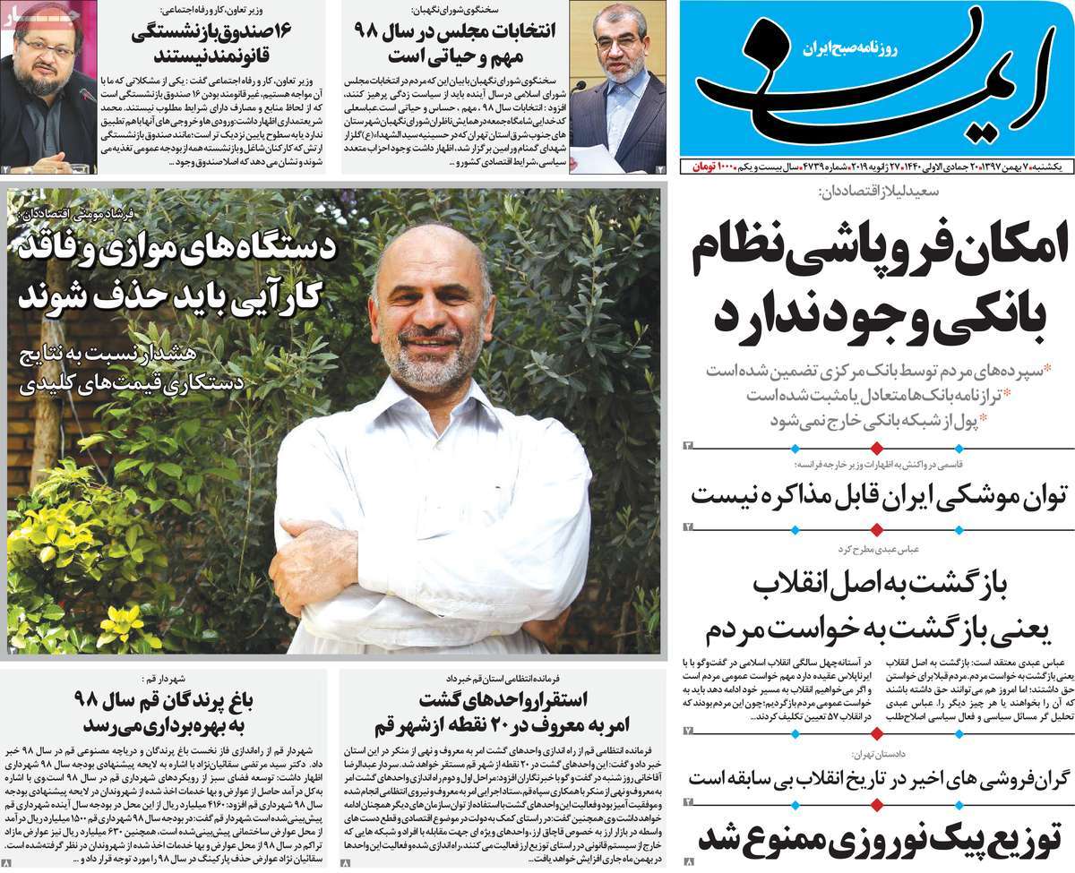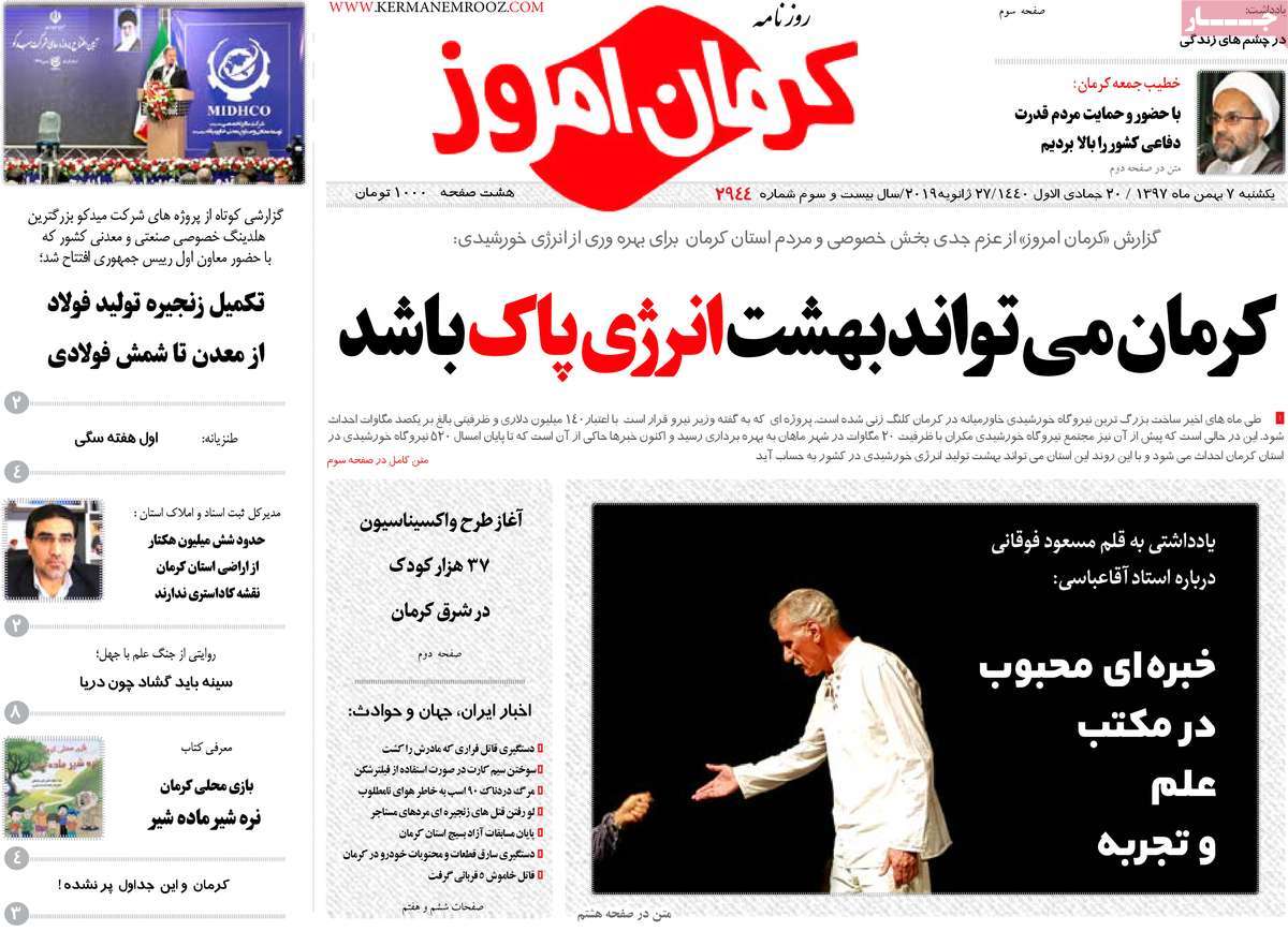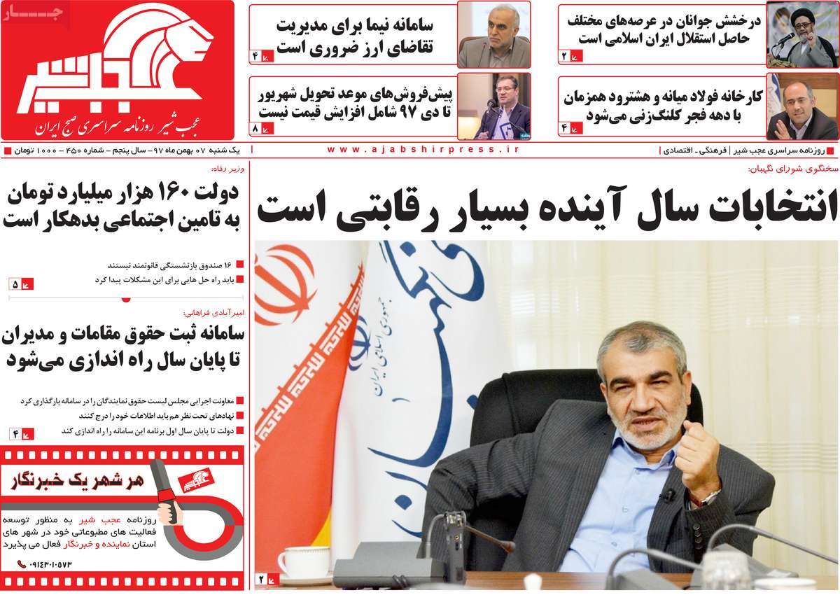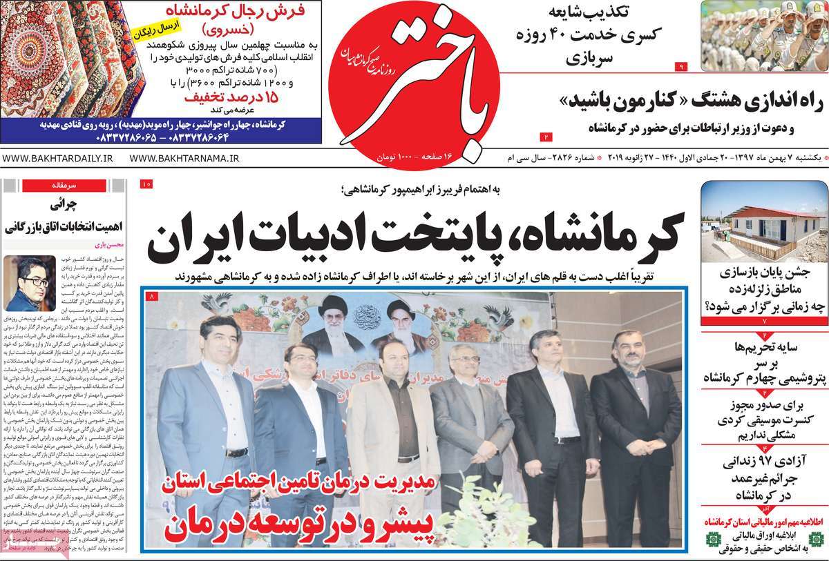 صفحه اول روزنامه های کشوری و استانی؛ یکشنبه هفتم بهمن ماه 1397 /تصاویر