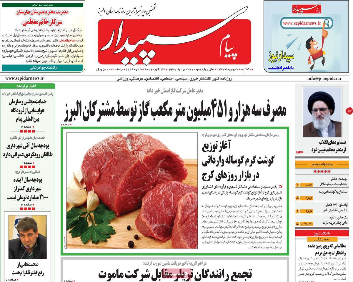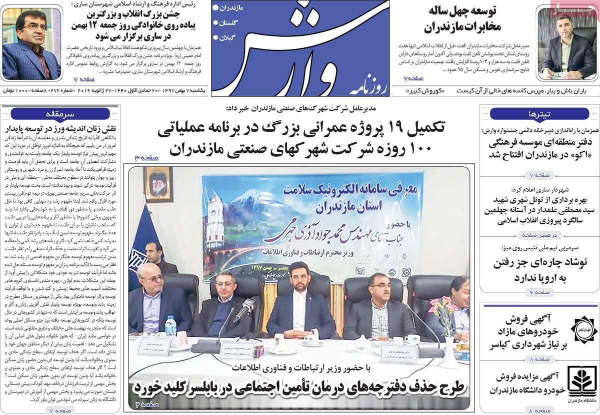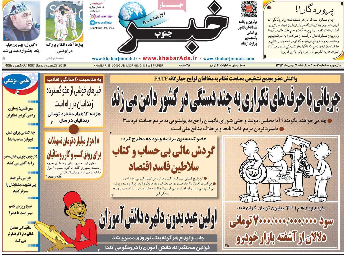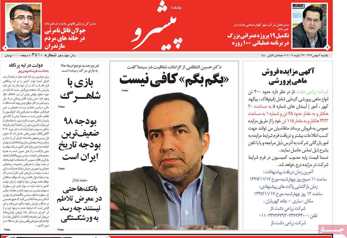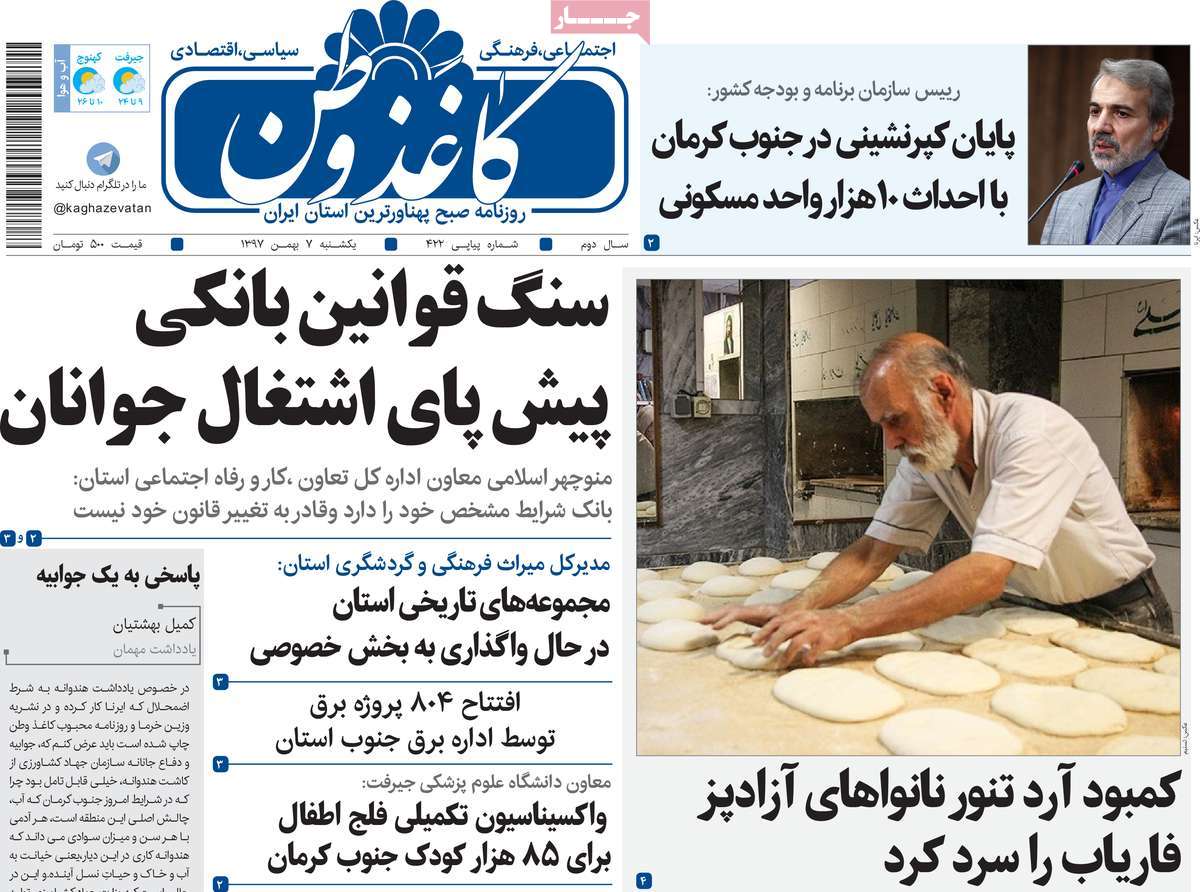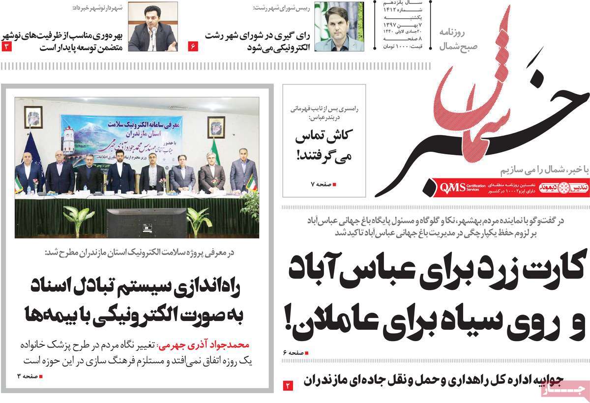 صفحه اول روزنامه های کشوری و استانی؛ یکشنبه هفتم بهمن ماه 1397 /تصاویر