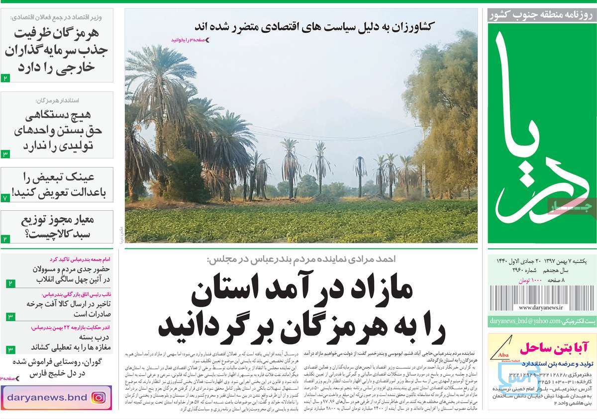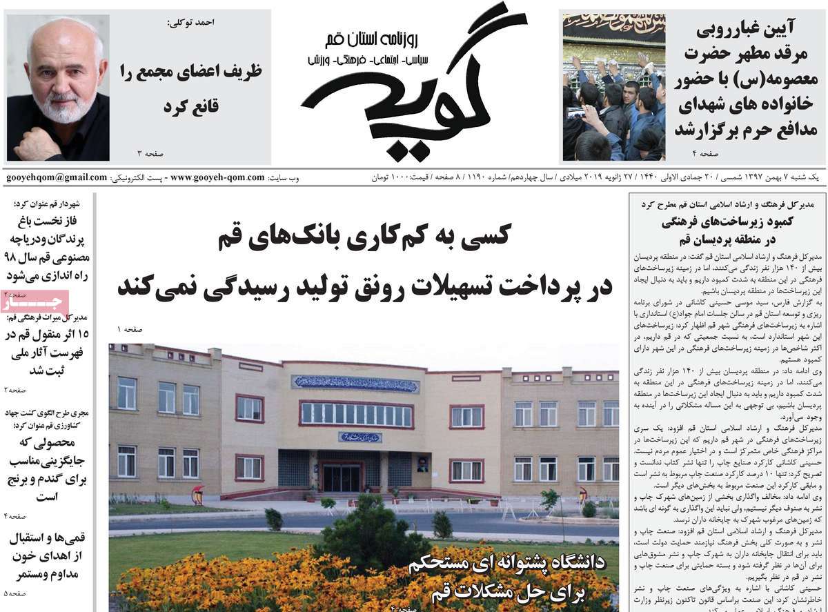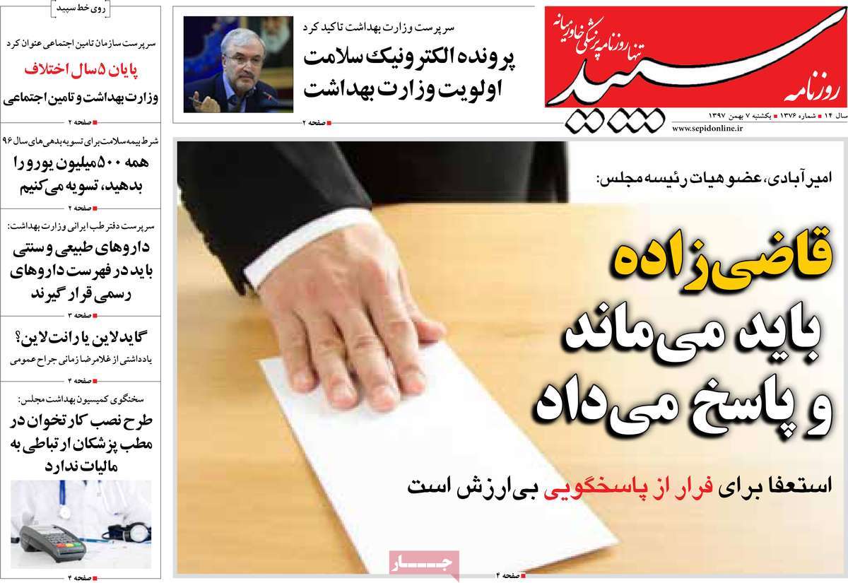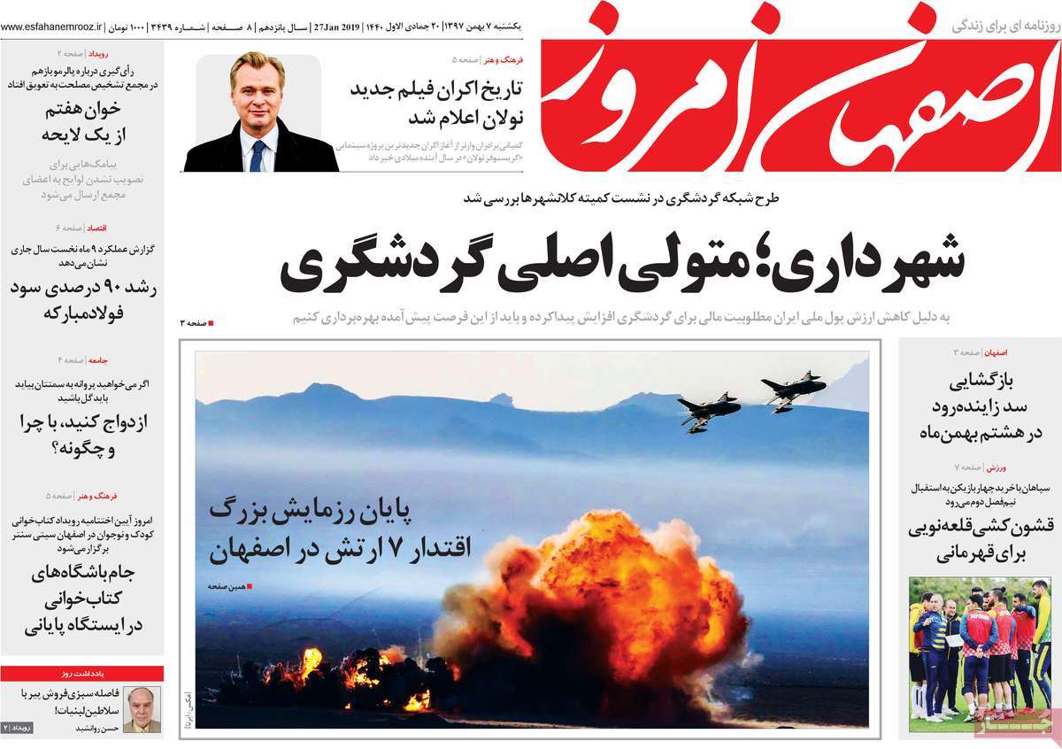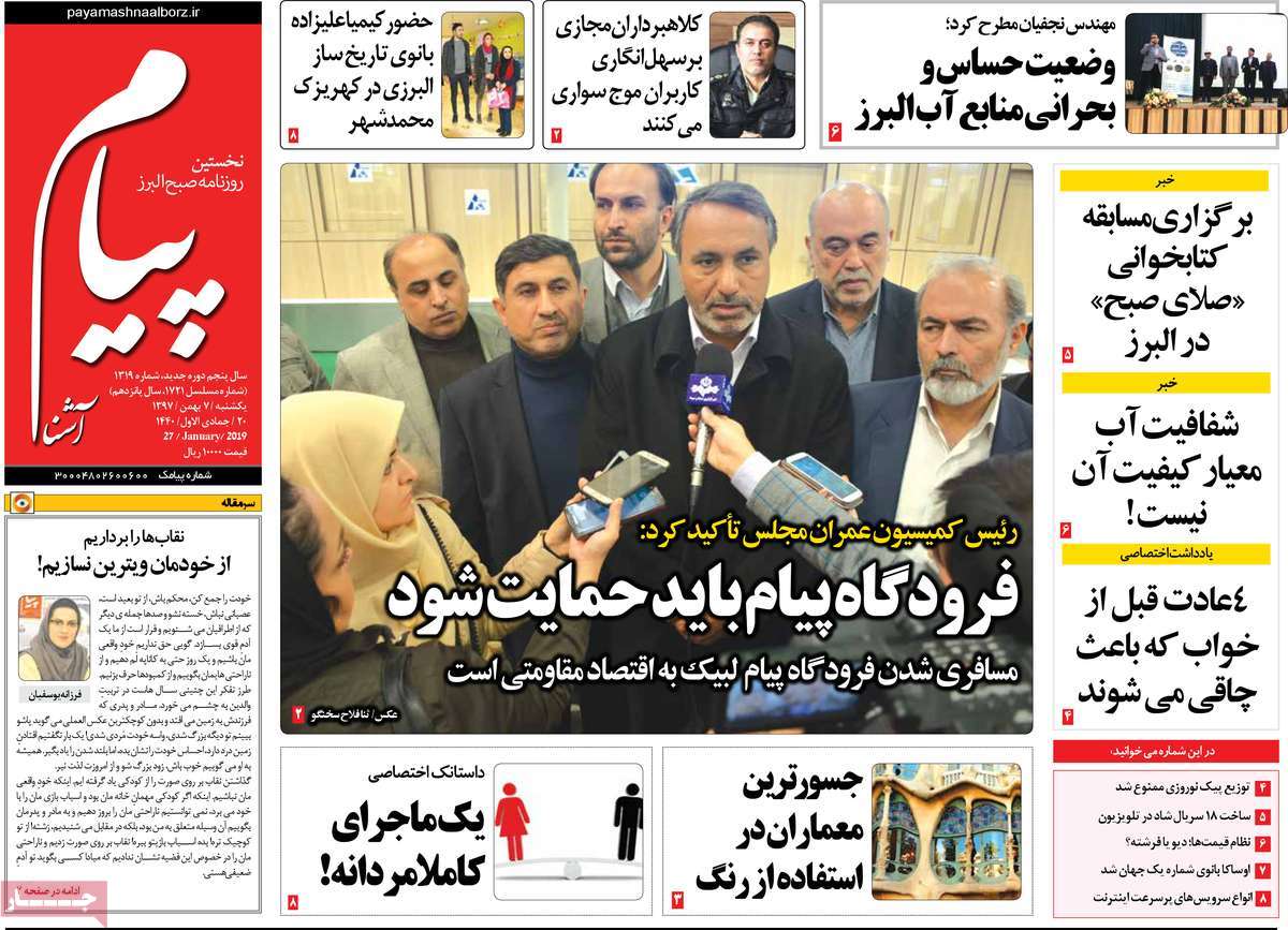 صفحه اول روزنامه های کشوری و استانی؛ یکشنبه هفتم بهمن ماه 1397 /تصاویر