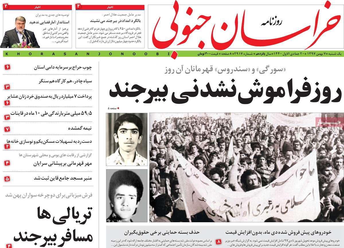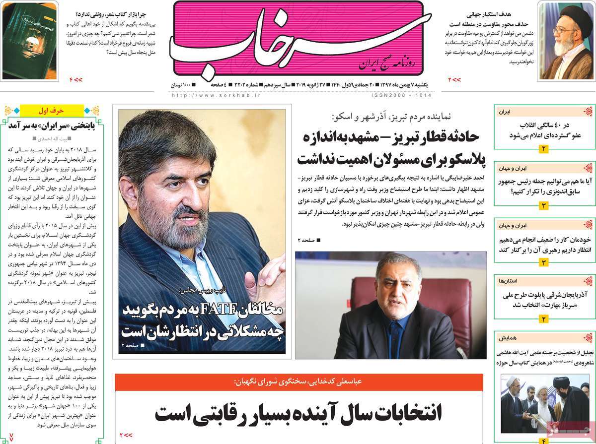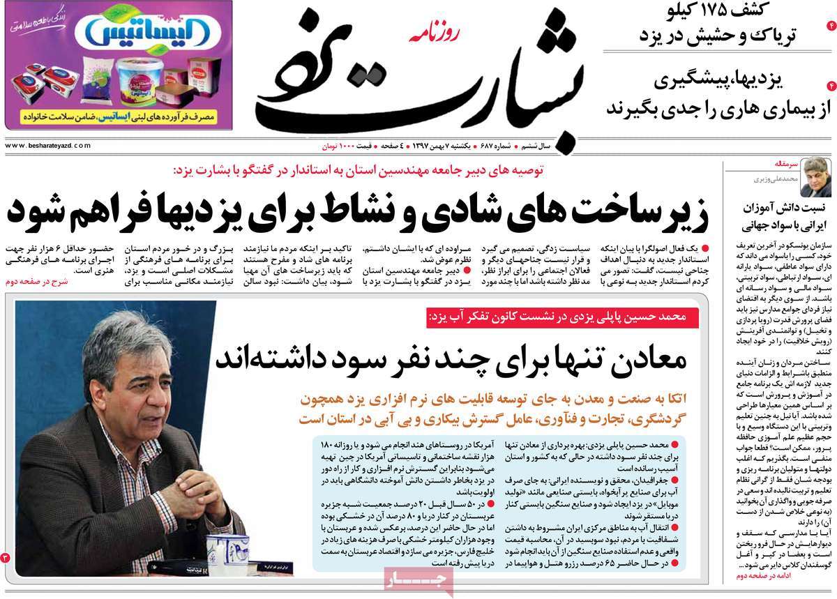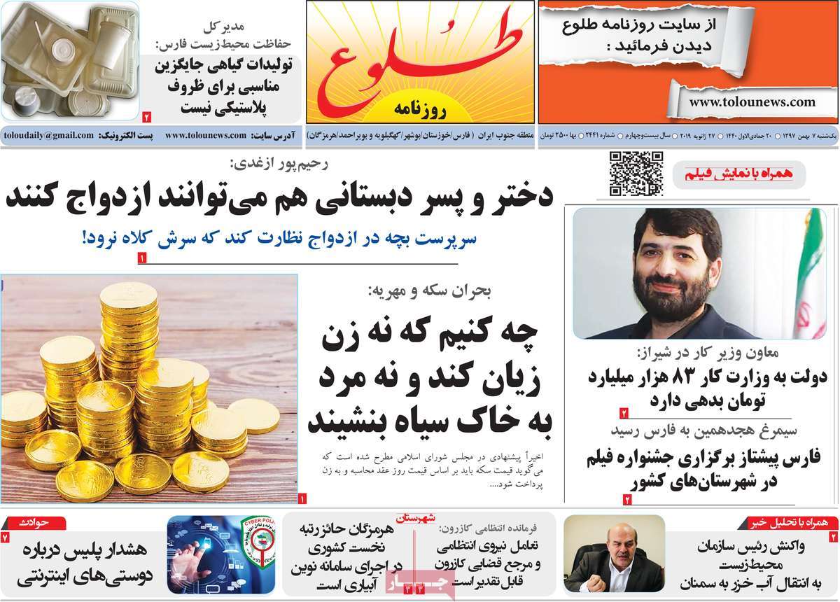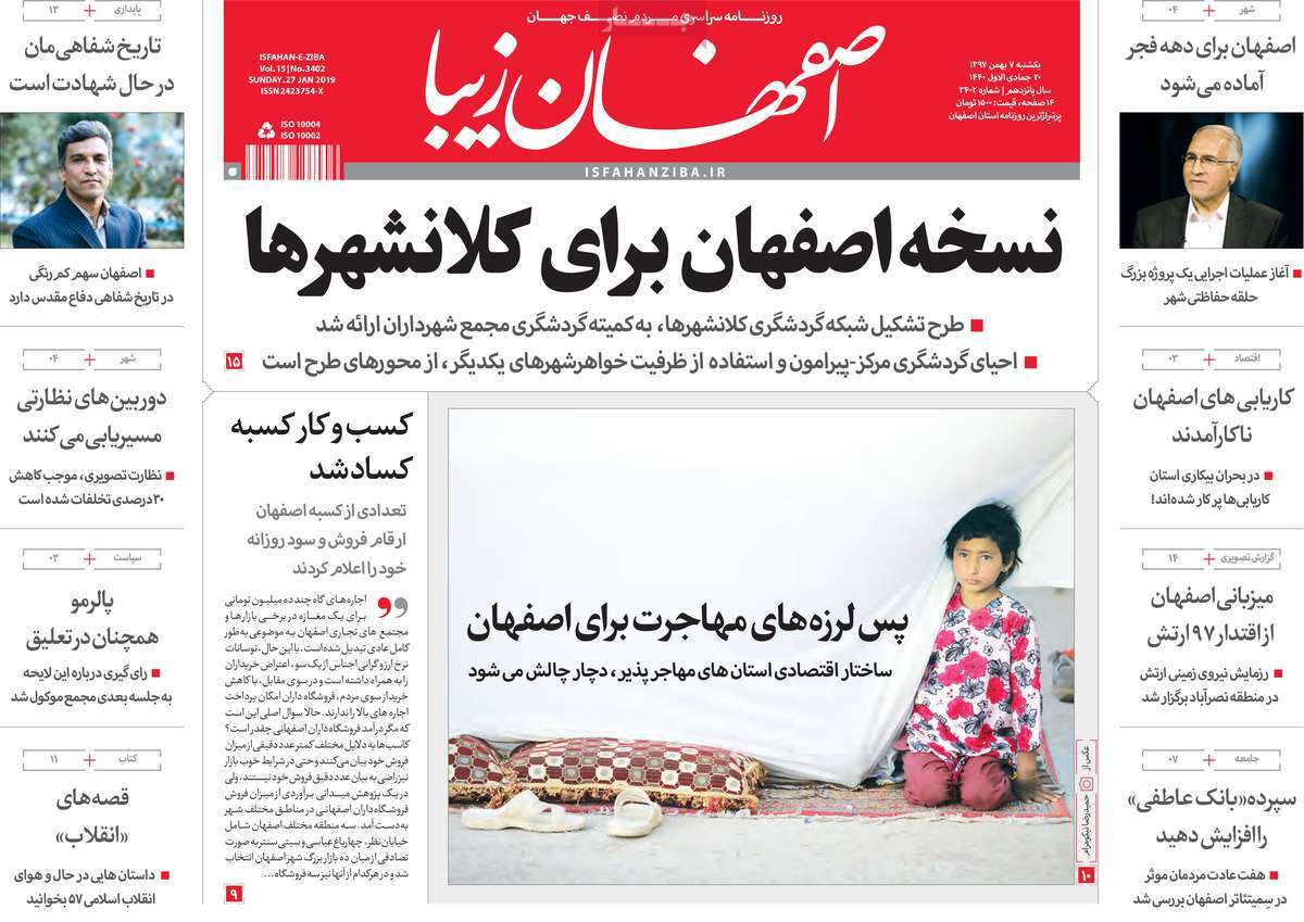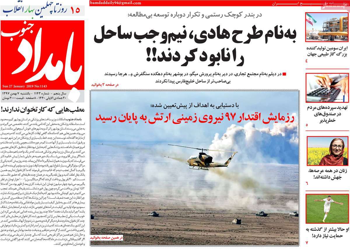 صفحه اول روزنامه های کشوری و استانی؛ یکشنبه هفتم بهمن ماه 1397 /تصاویر