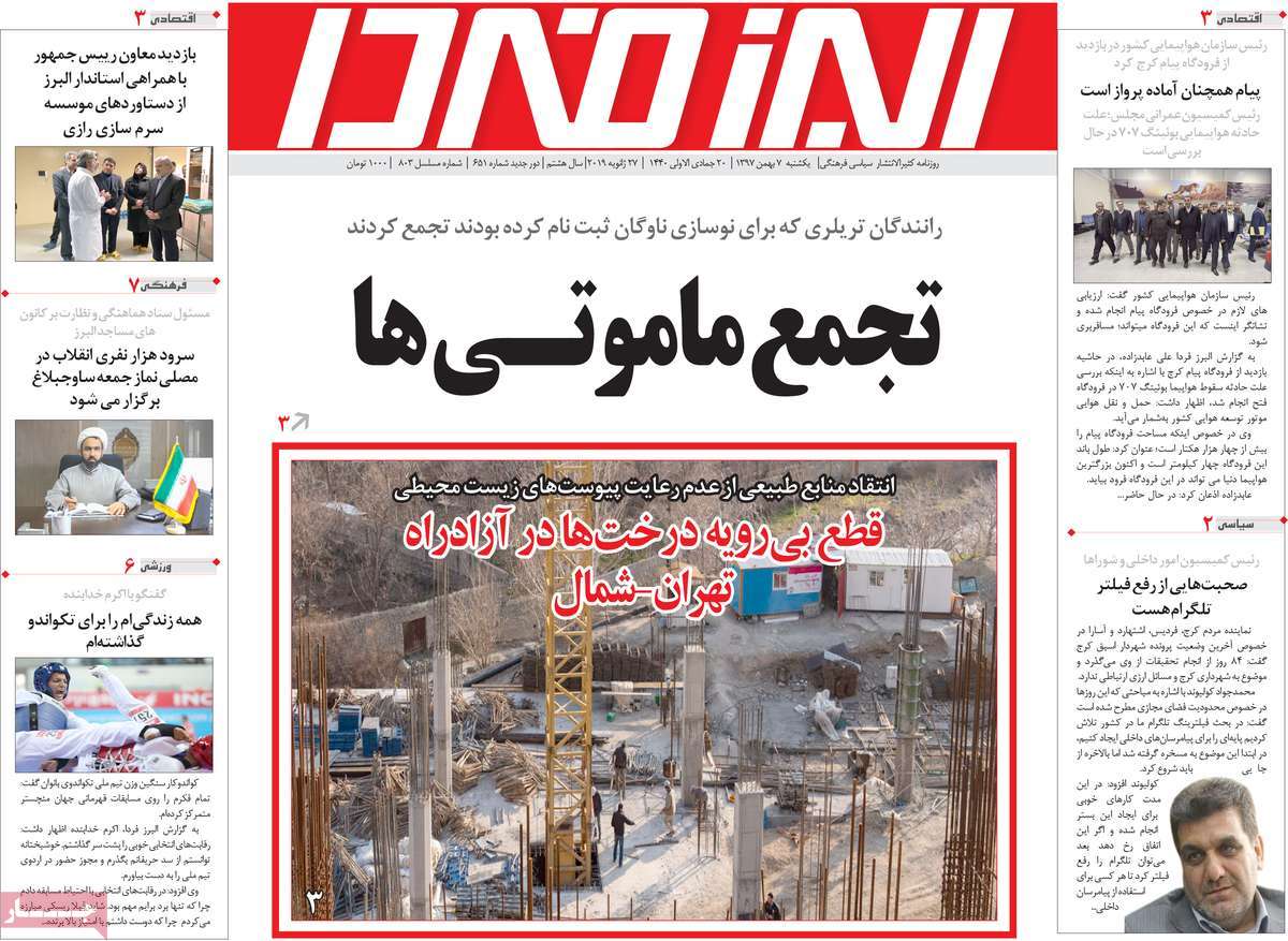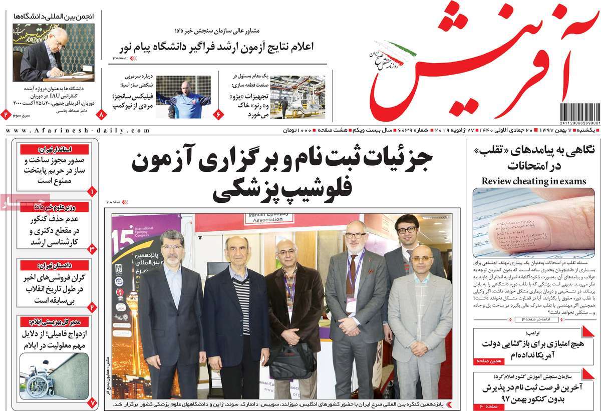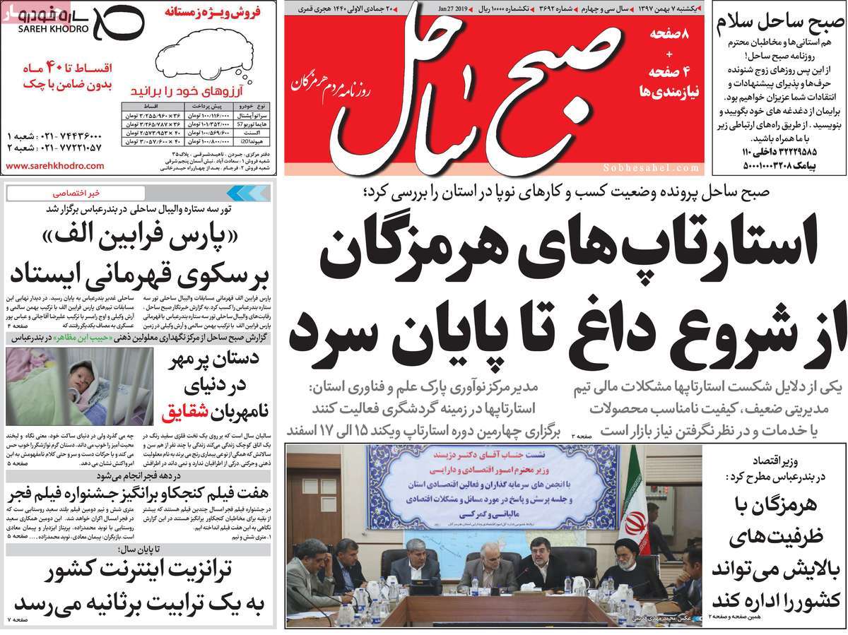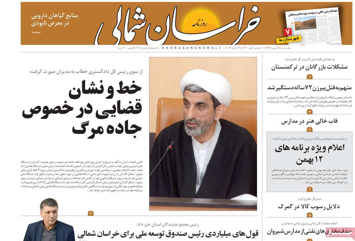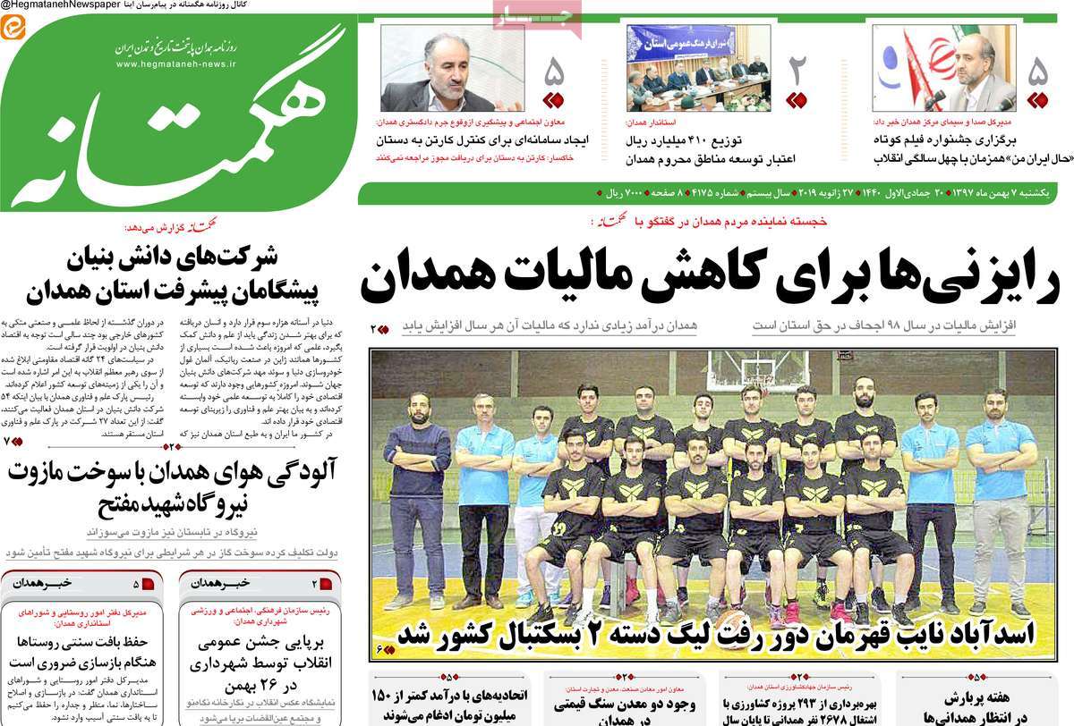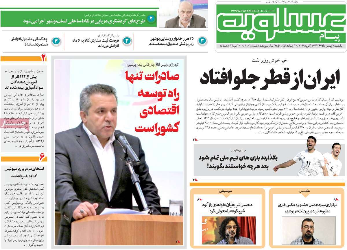 صفحه اول روزنامه های کشوری و استانی؛ یکشنبه هفتم بهمن ماه 1397 /تصاویر