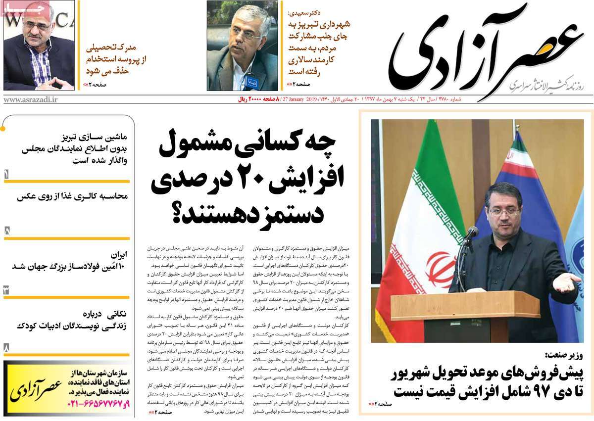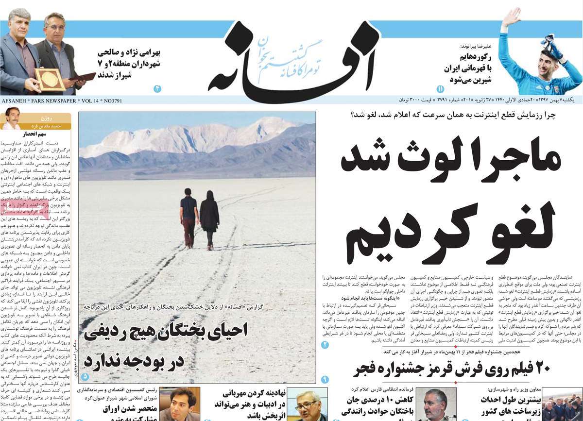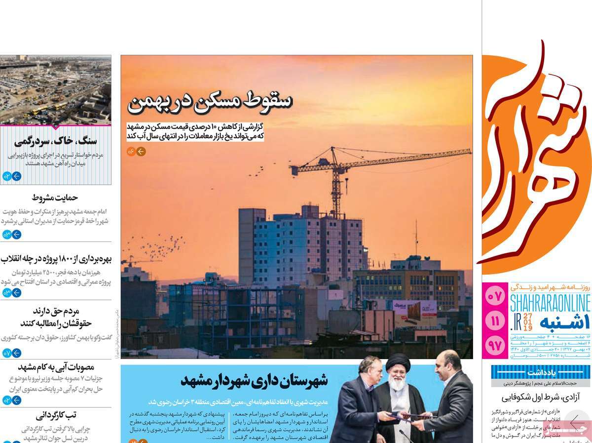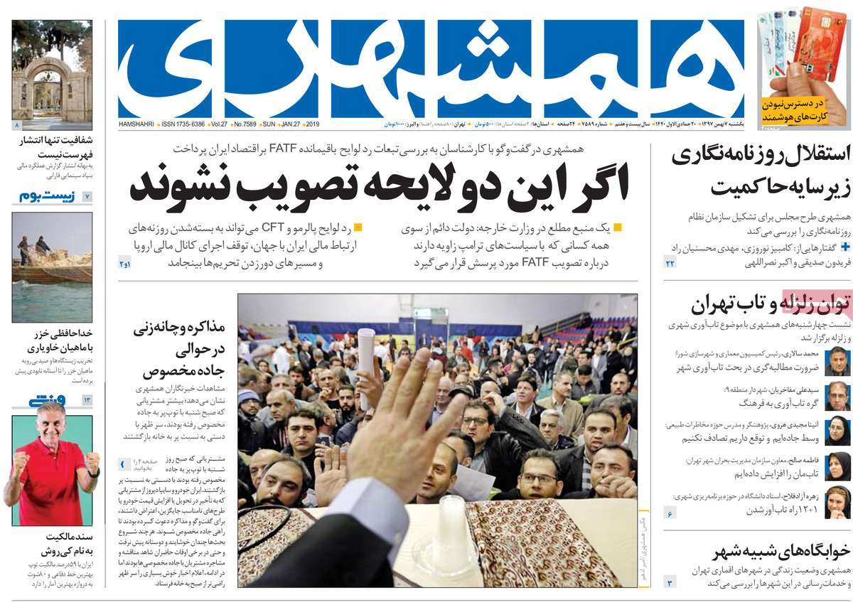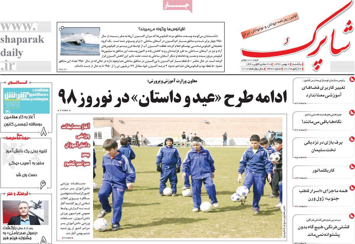 صفحه اول روزنامه های کشوری و استانی؛ یکشنبه هفتم بهمن ماه 1397 /تصاویر