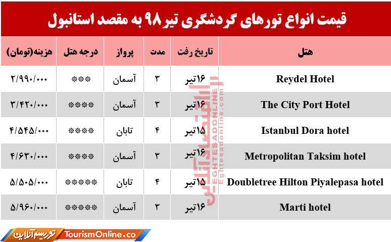 اقتصادآنلاین: قیمت انواع تورهای گردشگری به مقصد استانبول در تیر۹۸ به شرح جدول زیر است؛