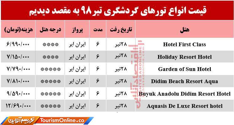 خانه/اقتصادی/اقتصاد گردشگری/تور ۶روزه دیدیم ترکیه چند؟ اقتصاد گردشگریگردشگری تور ۶روزه دیدیم ترکیه چند؟ 20 تیر 13980 فیس بوک توییتر لینکدین پینترست اقتصادآنلاین: قیمت انواع تورهای گردشگری به مقصد دیدیم در تیر۹۸ به شرح جدول زیر است؛ امتیاز کاربر: اولین نفر باشید ! برچسب هاانواع تورهای ترکیبی گردشگری تورهای گردشگری تورهای گردشگری دیدیم دیدیم قیمت انواع تورهای گردشگری دیدیم گردشگری 20 تیر 13980 فیس بوک توییتر لینکدین پینترست