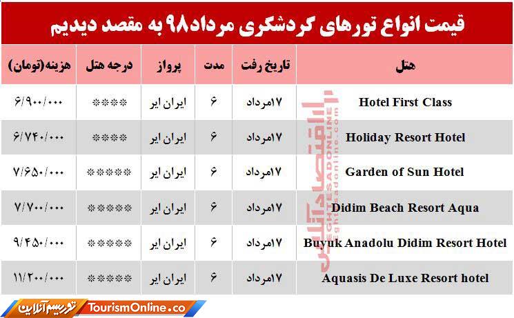 اقتصادآنلاین: قیمت انواع تورهای گردشگری به مقصد قبرس در مرداد۹۸ به شرح جدول زیر است؛