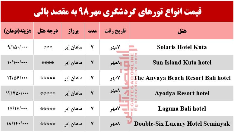 خانه/اقتصادی/اقتصاد گردشگری/تور بالی اندونزی چقدر هزینه دارد؟ اقتصاد گردشگریسفر خوش...! تور بالی اندونزی چقدر هزینه دارد؟ 7 مهر 13980 فیس بوک توییتر لینکدین پینترست اقتصادآنلاین: قیمت انواع تورهای گردشگری به مقصد بالی در مهر۹۸ به شرح جدول زیر است؛ امتیاز کاربر: اولین نفر باشید ! برچسب هاانواع تورهای گردشگری بالی تورهای بالی تورهای گردشگری بالی 7 مهر 13980 فیس بوک توییتر لینکدین پینترست