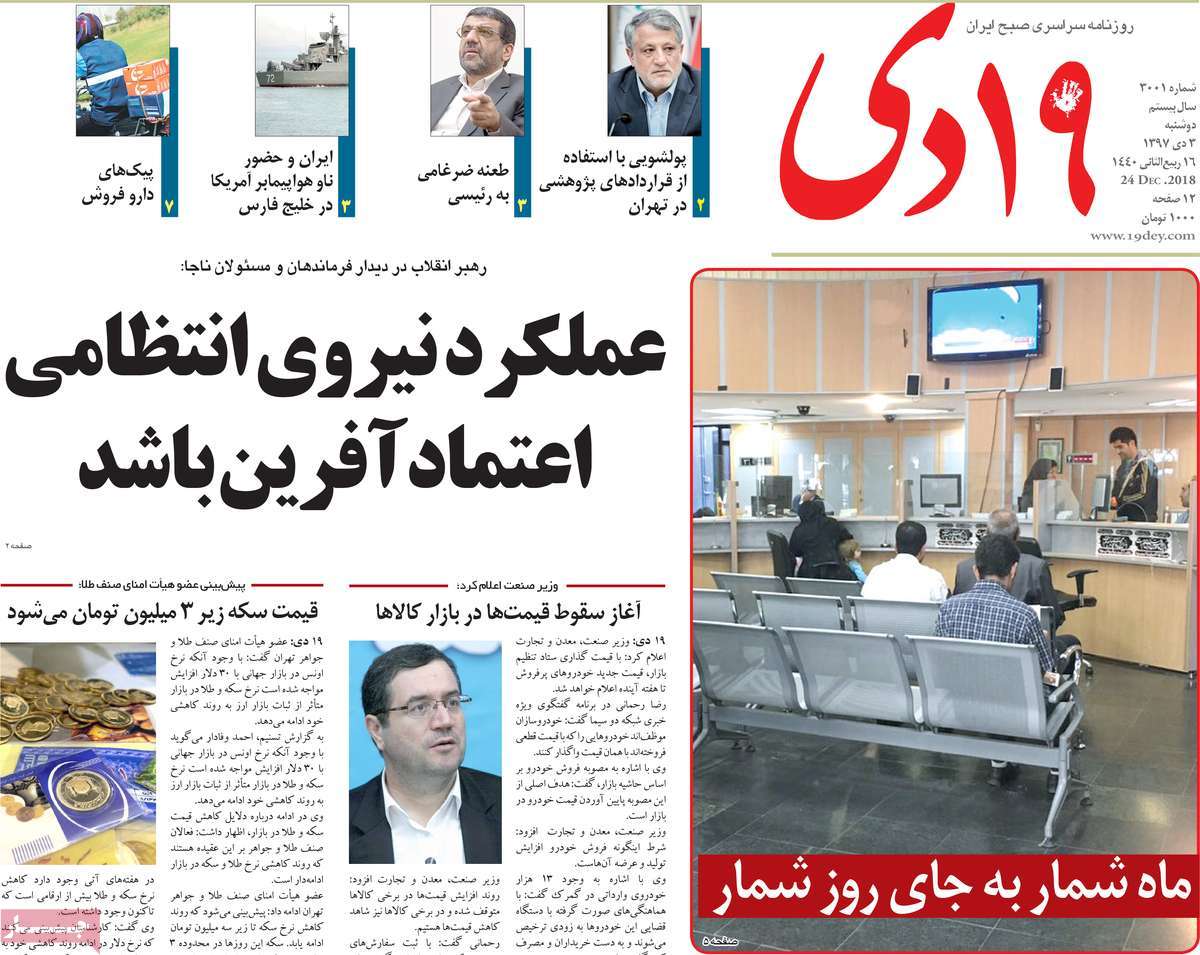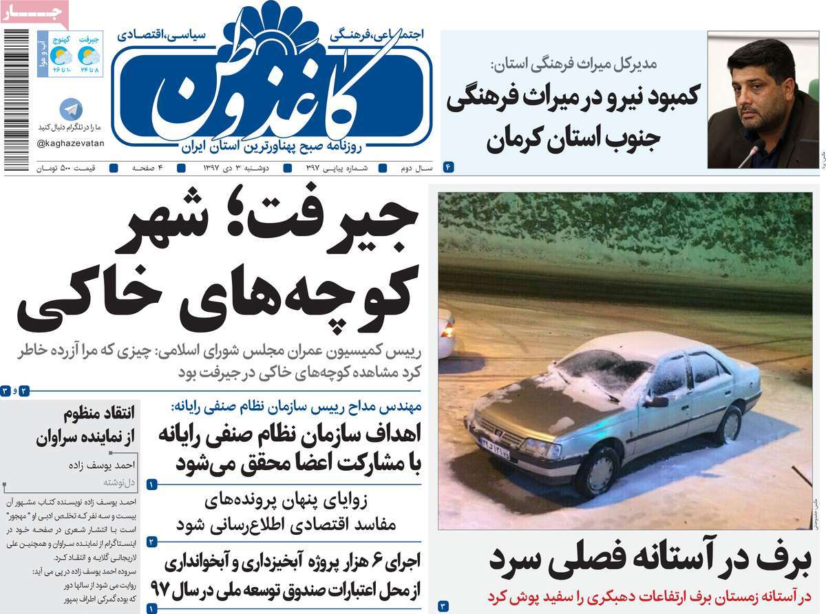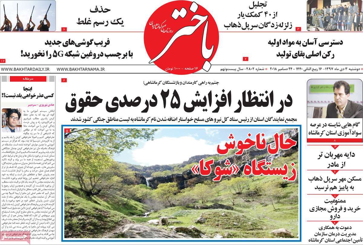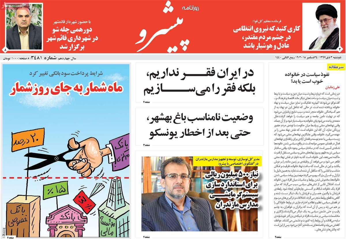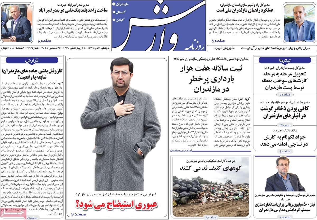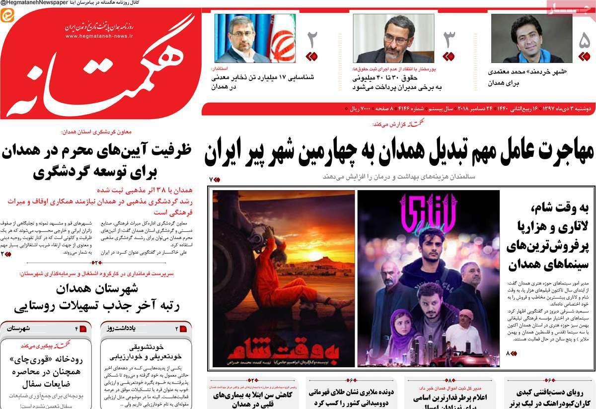 صفحه اول روزنامه های کشوری و استانی؛ دوشنبه سوم دی ماه 1397 /تصاویر