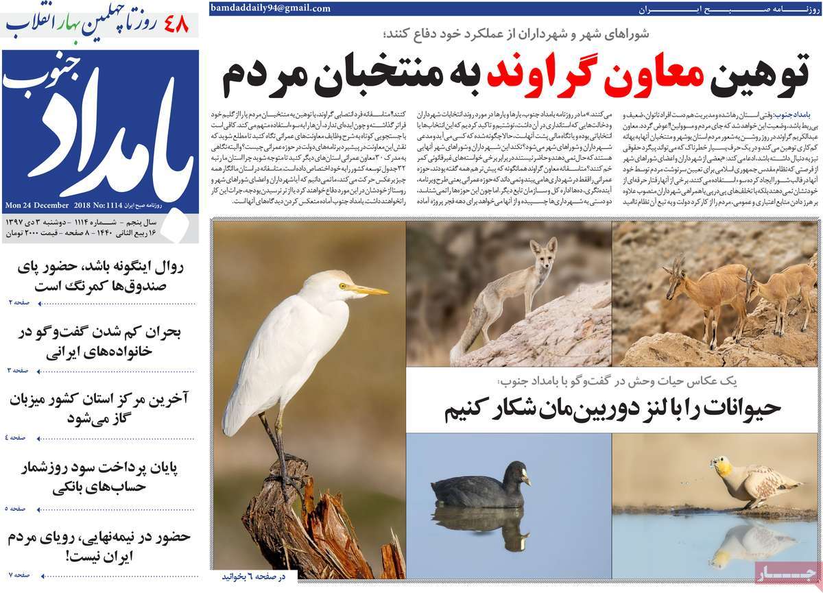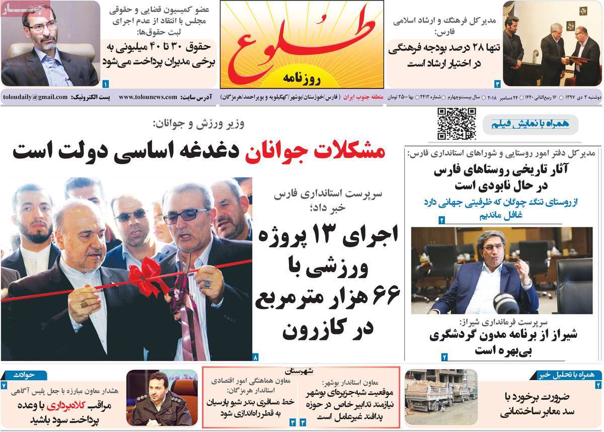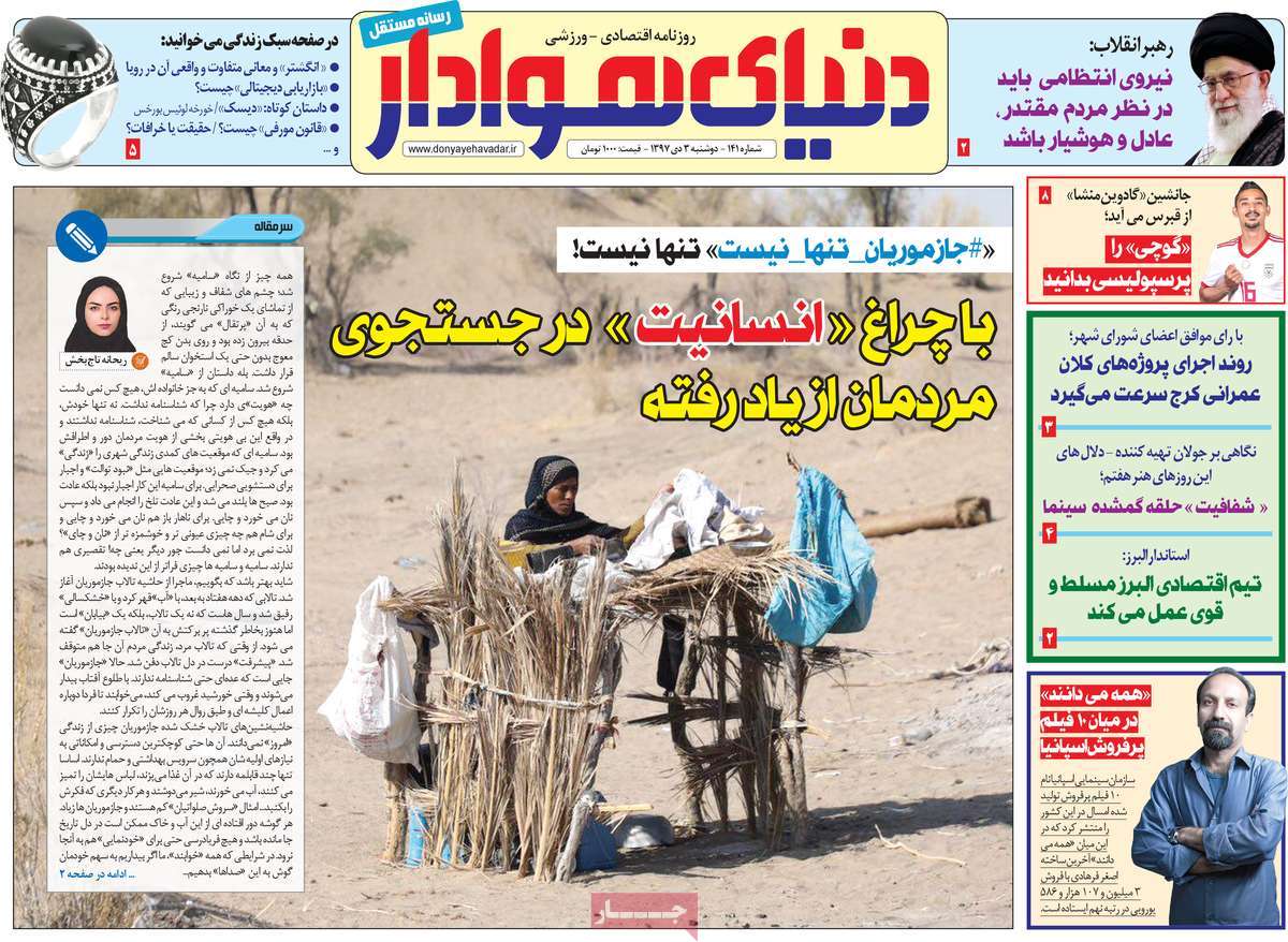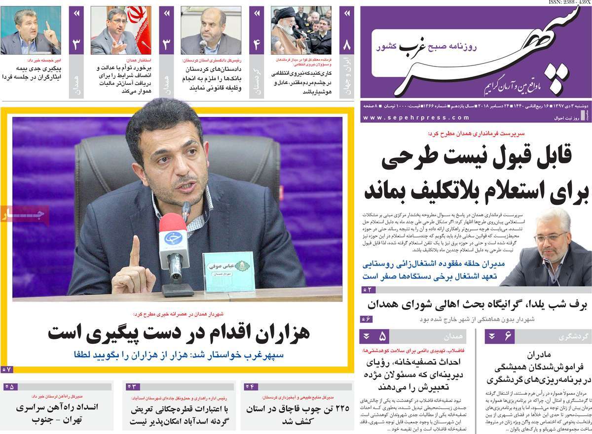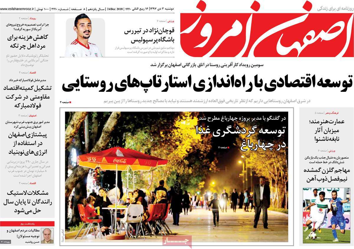 صفحه اول روزنامه های کشوری و استانی؛ دوشنبه سوم دی ماه 1397 /تصاویر