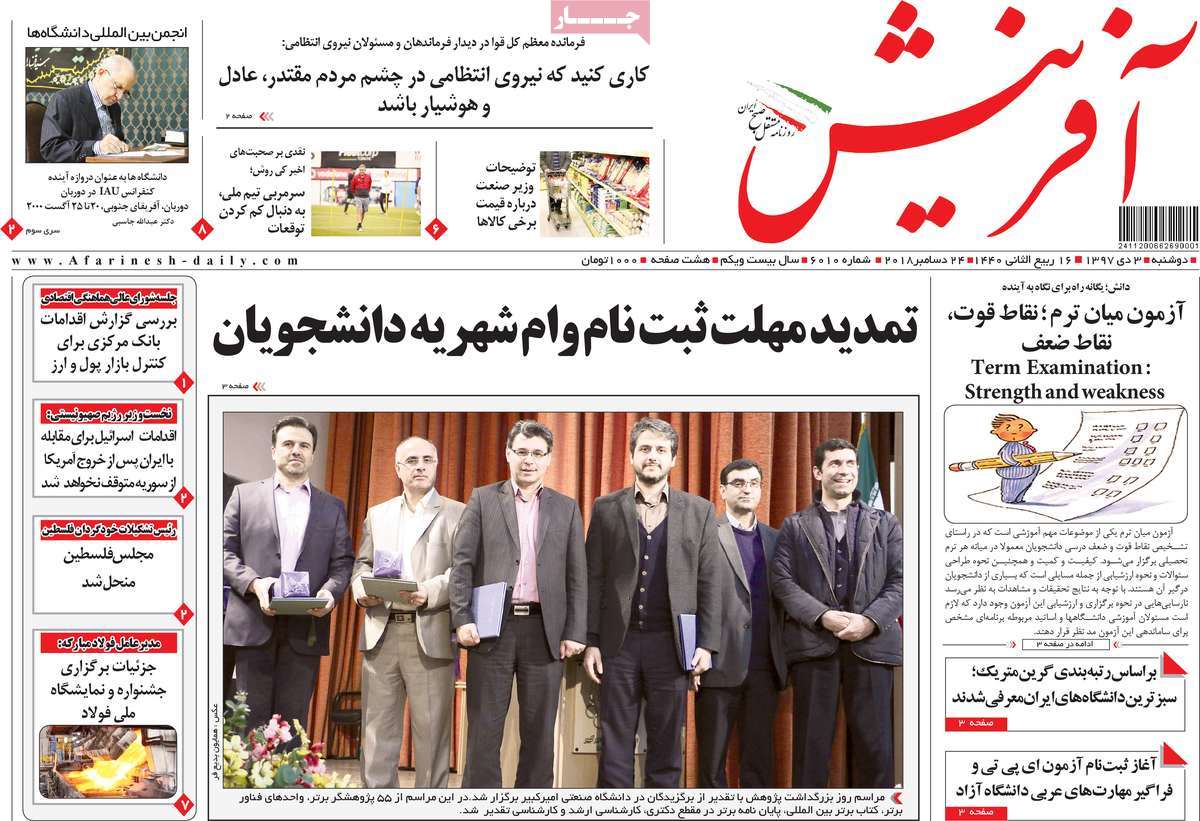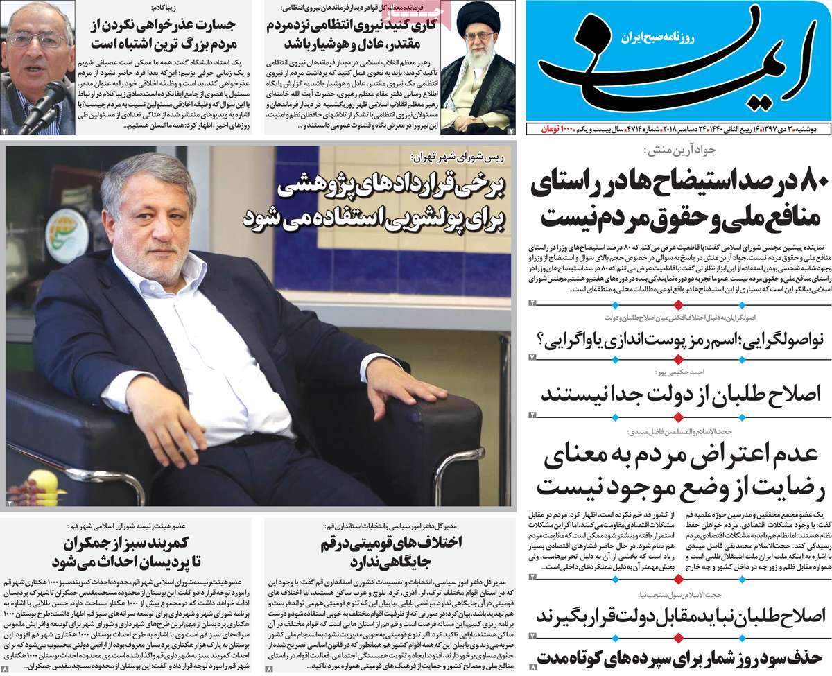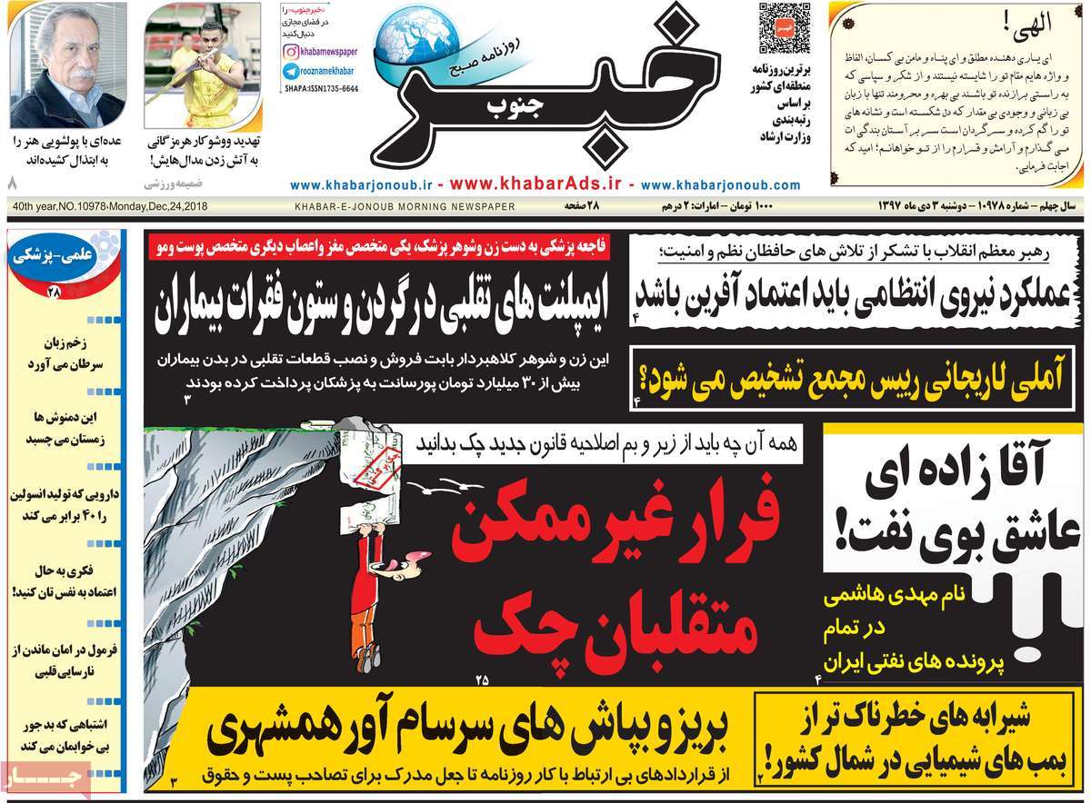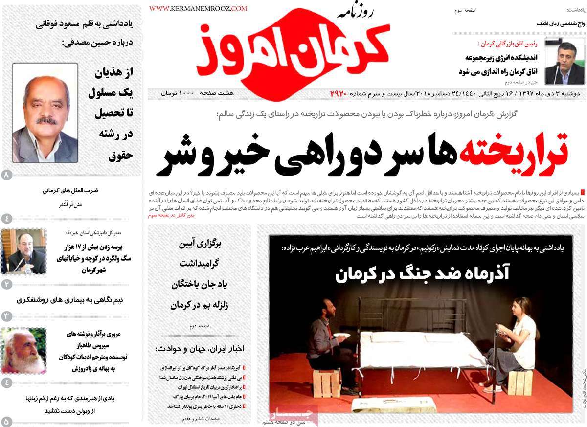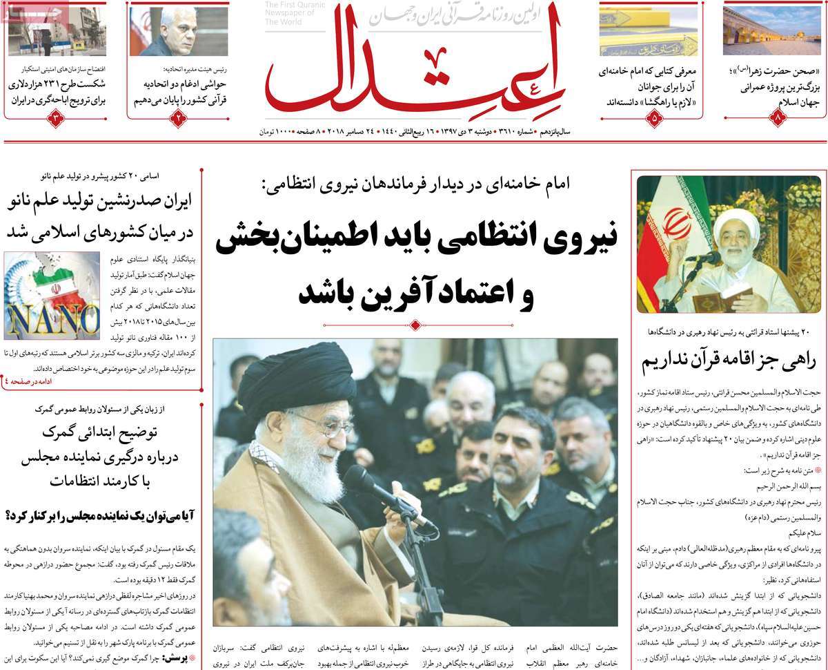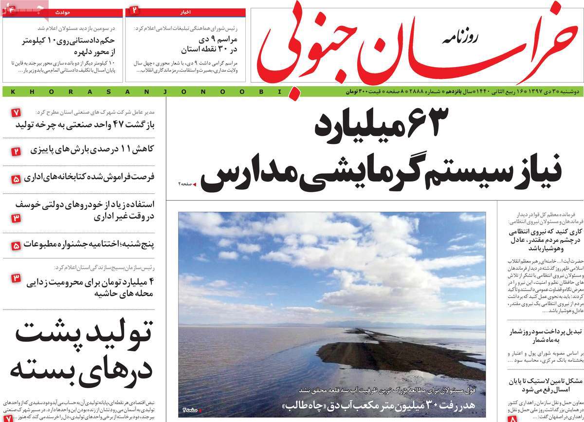صفحه اول روزنامه های کشوری و استانی؛ دوشنبه سوم دی ماه 1397 /تصاویر