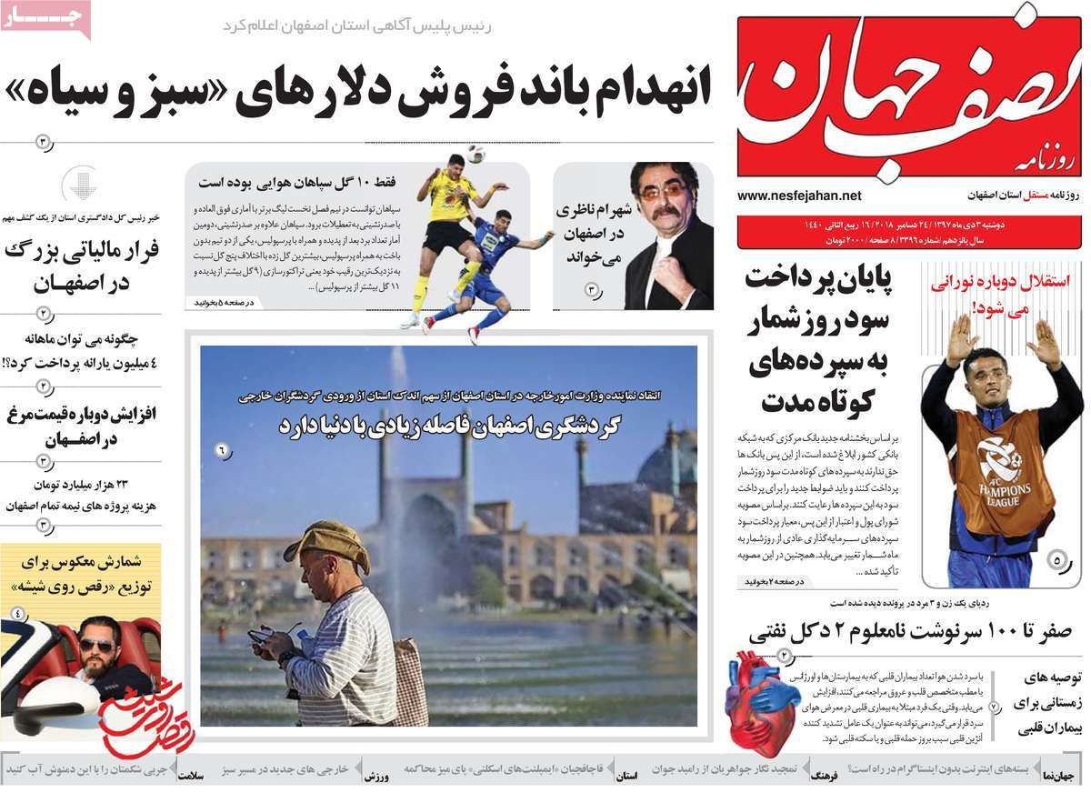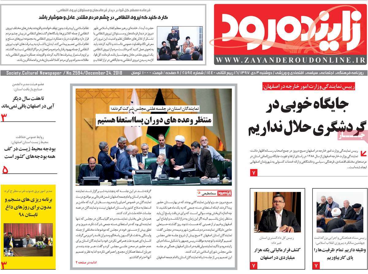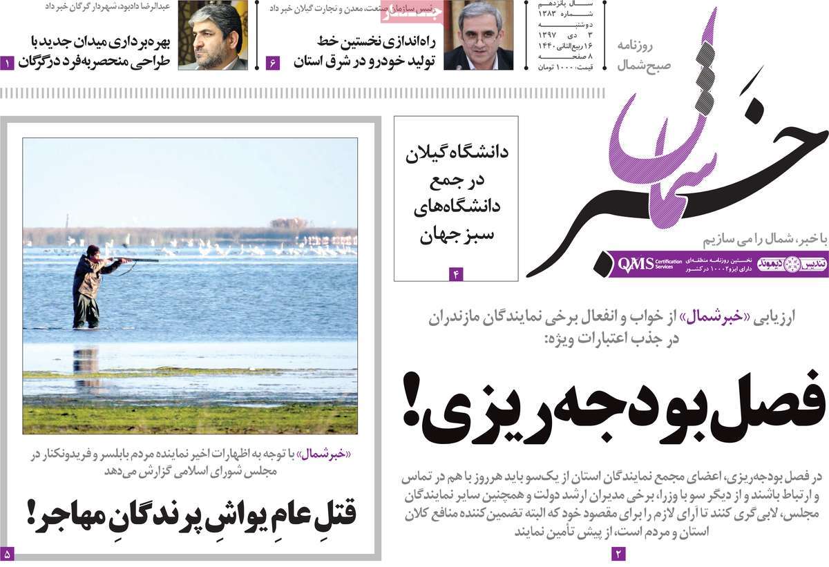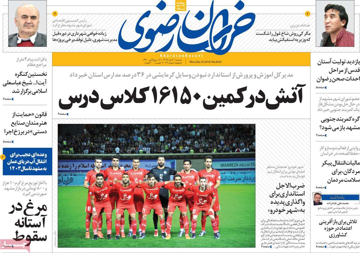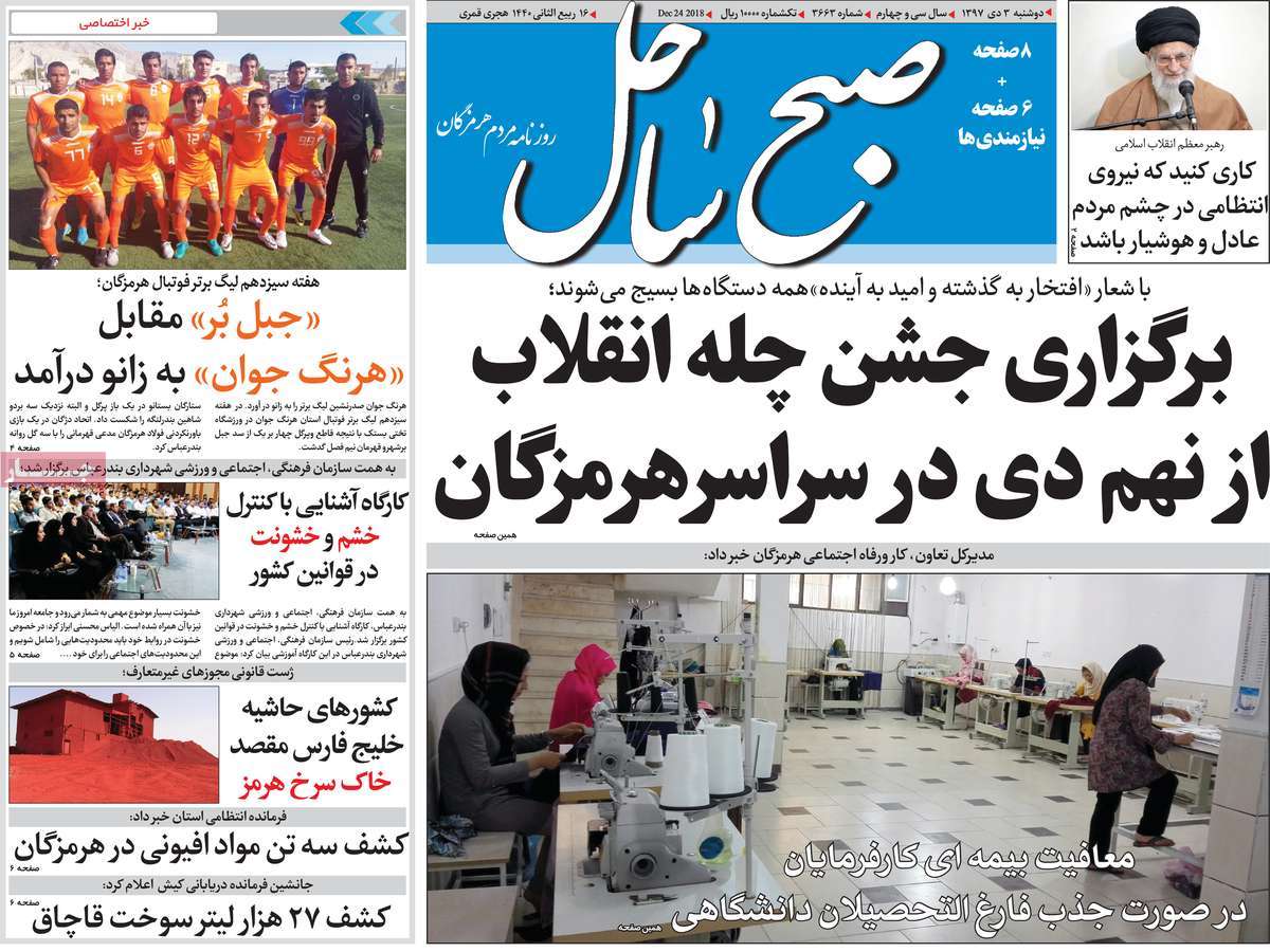 صفحه اول روزنامه های کشوری و استانی؛ دوشنبه سوم دی ماه 1397 /تصاویر