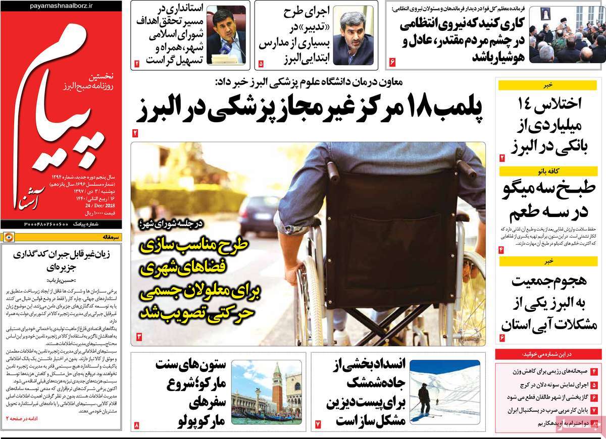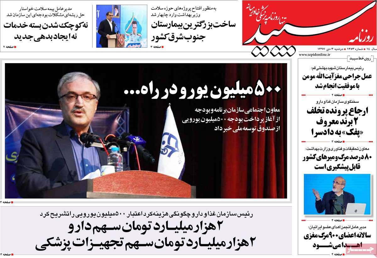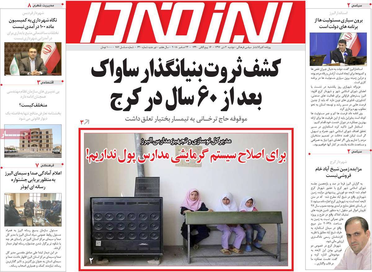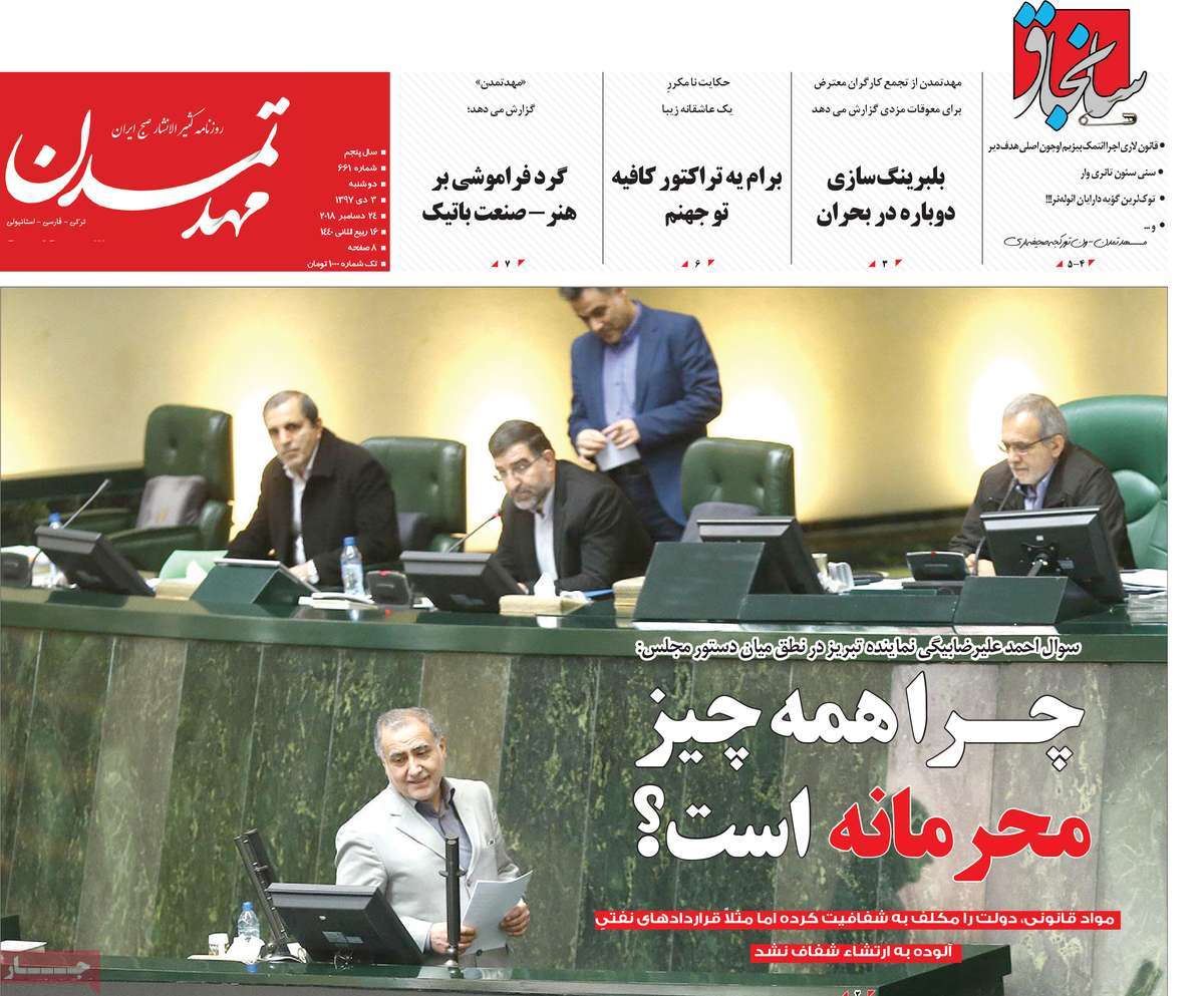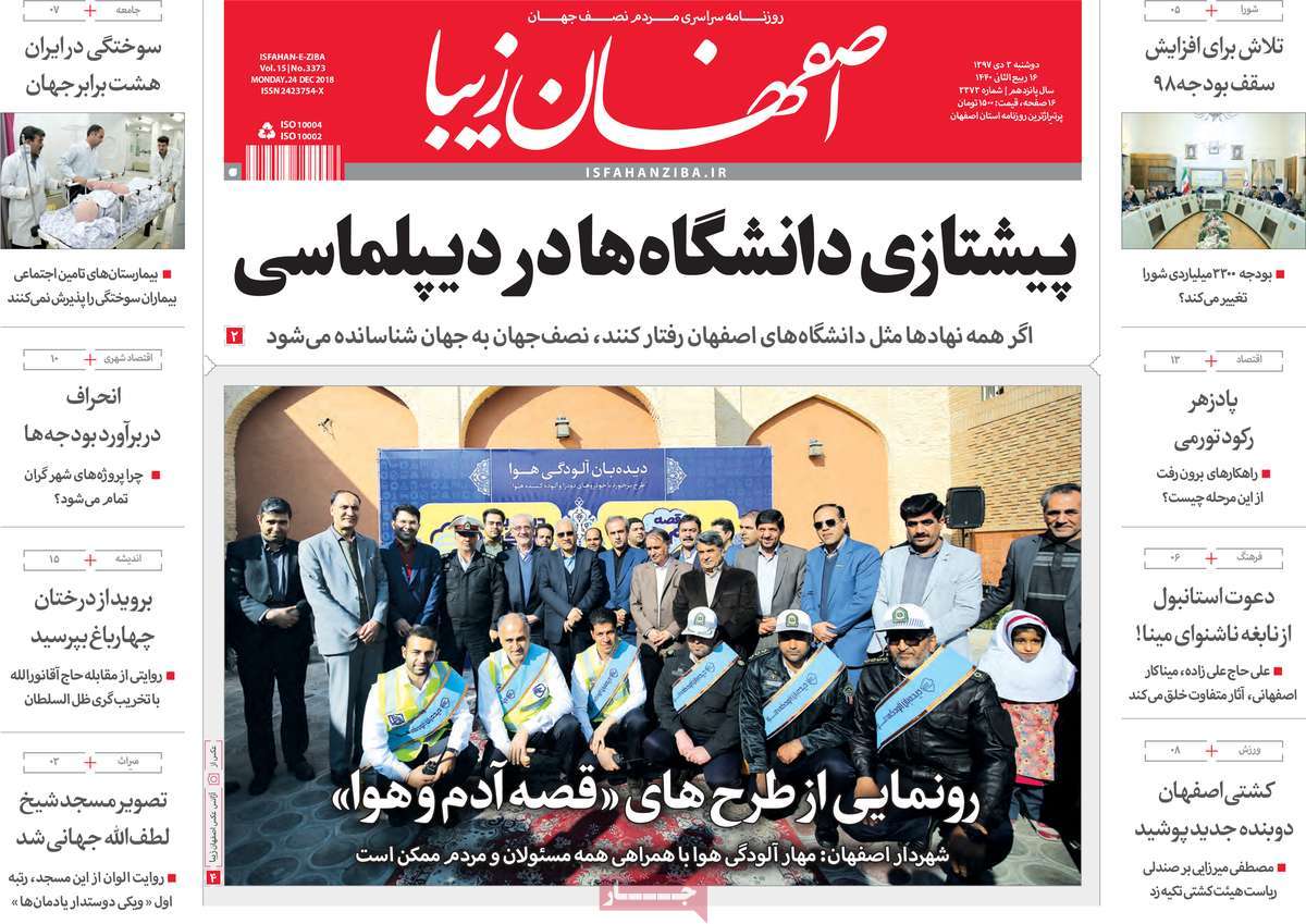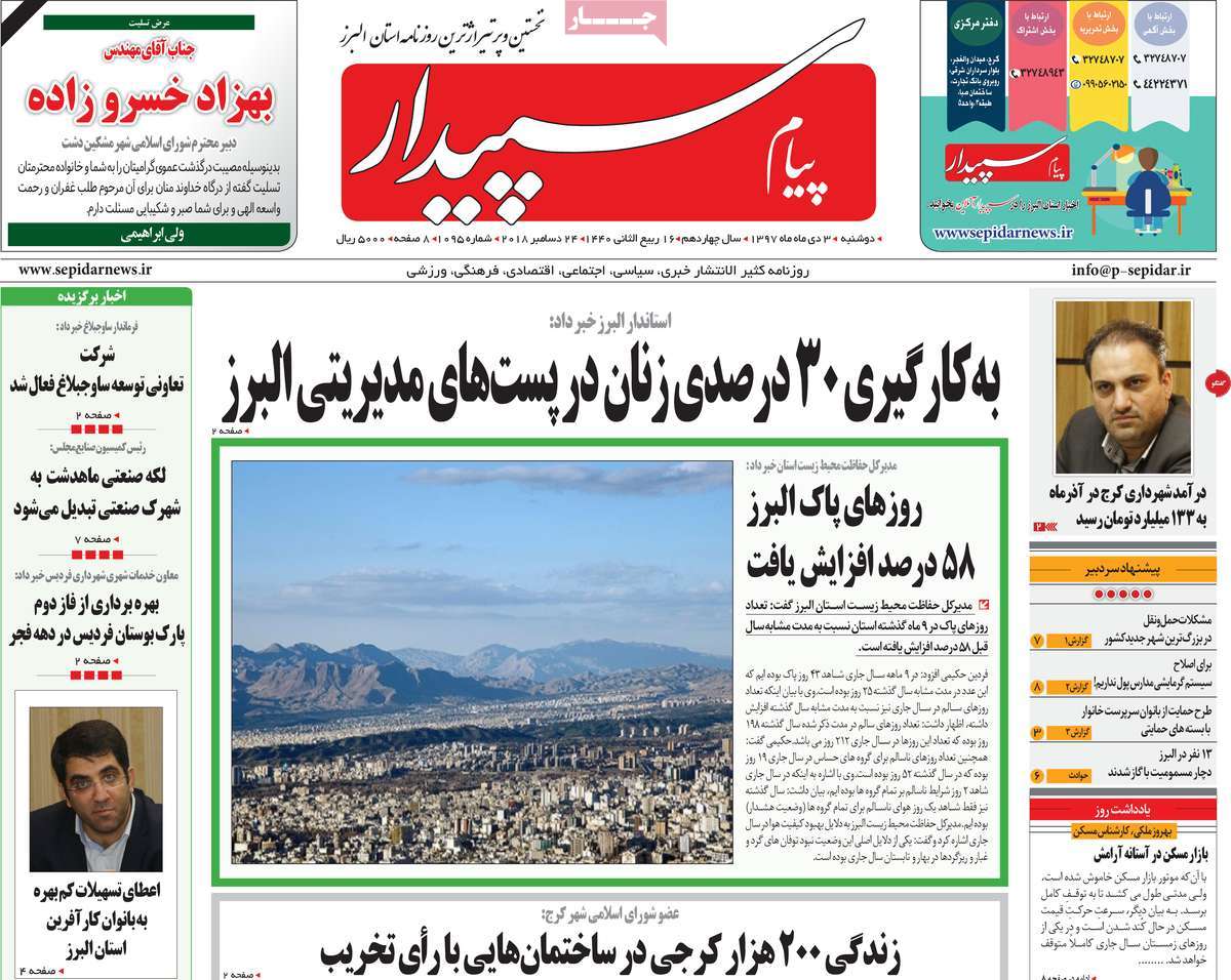 صفحه اول روزنامه های کشوری و استانی؛ دوشنبه سوم دی ماه 1397 /تصاویر