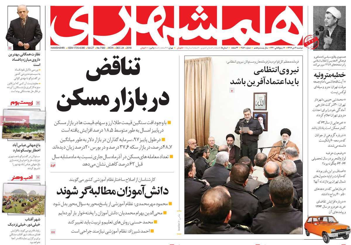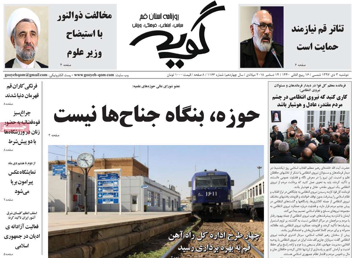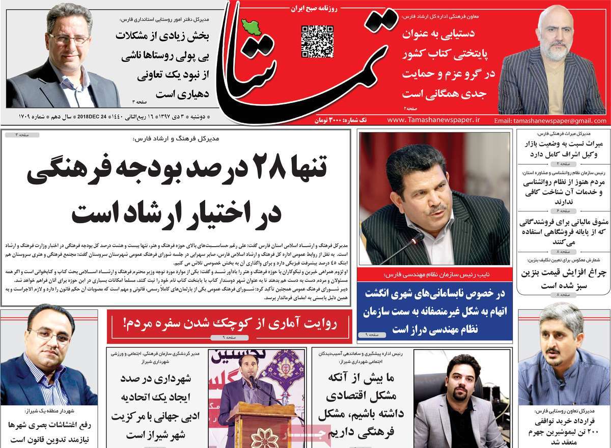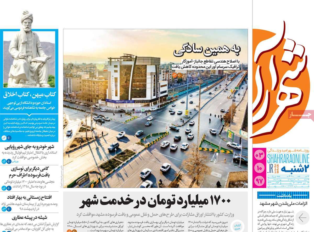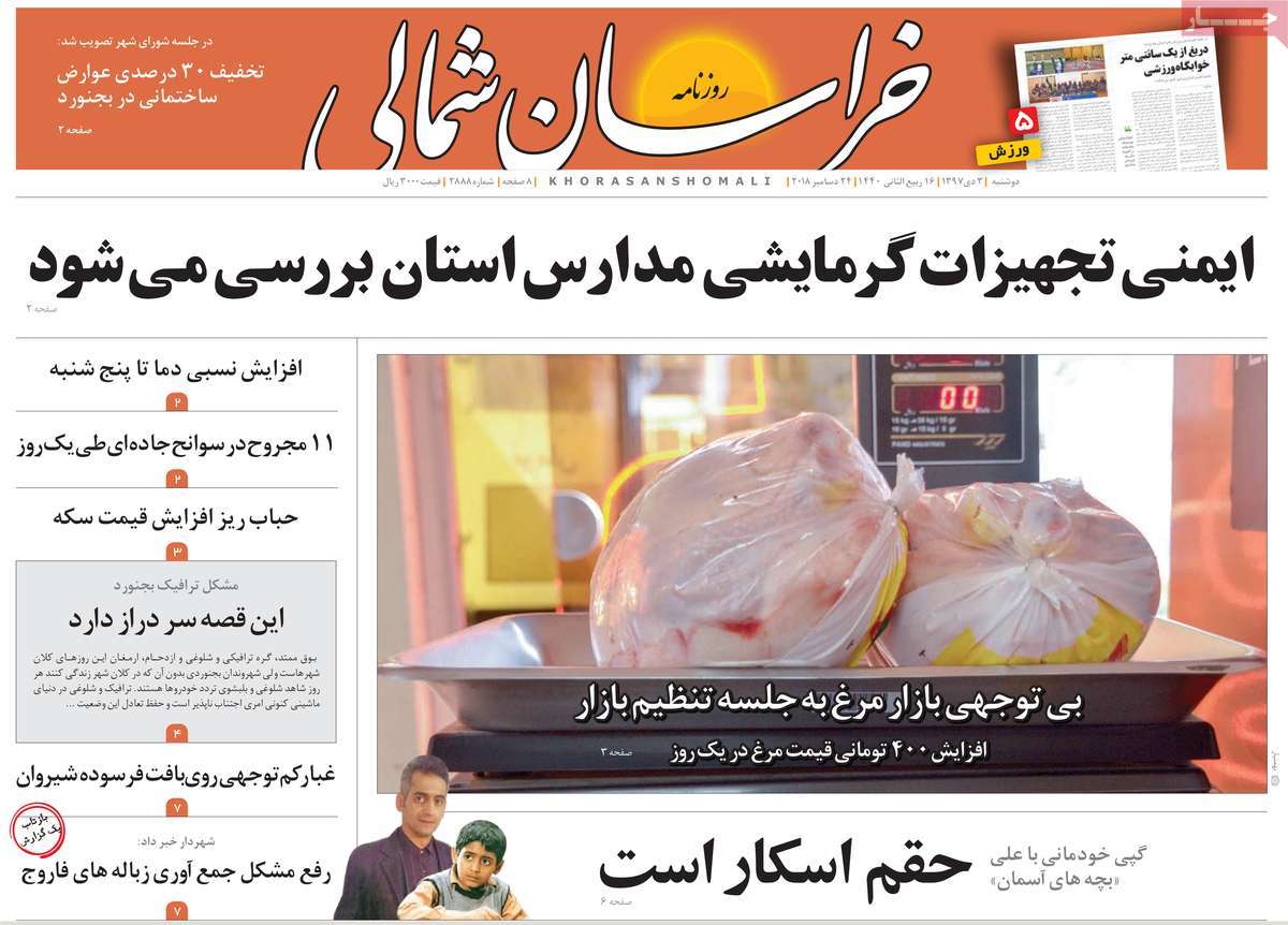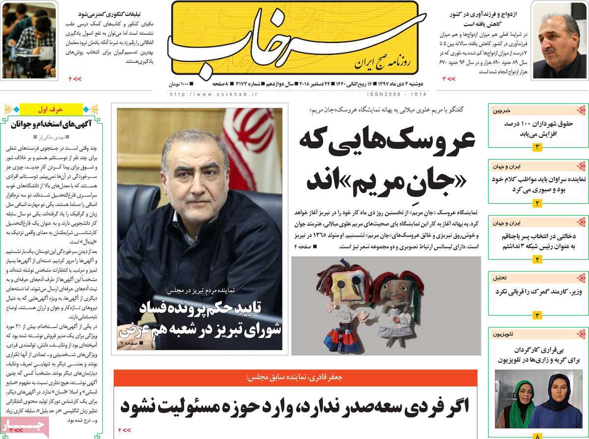 صفحه اول روزنامه های کشوری و استانی؛ دوشنبه سوم دی ماه 1397 /تصاویر
