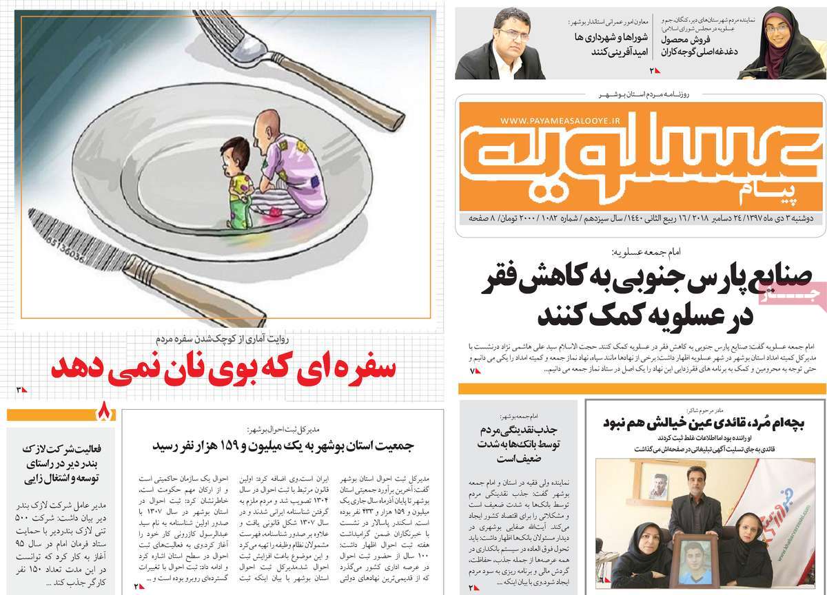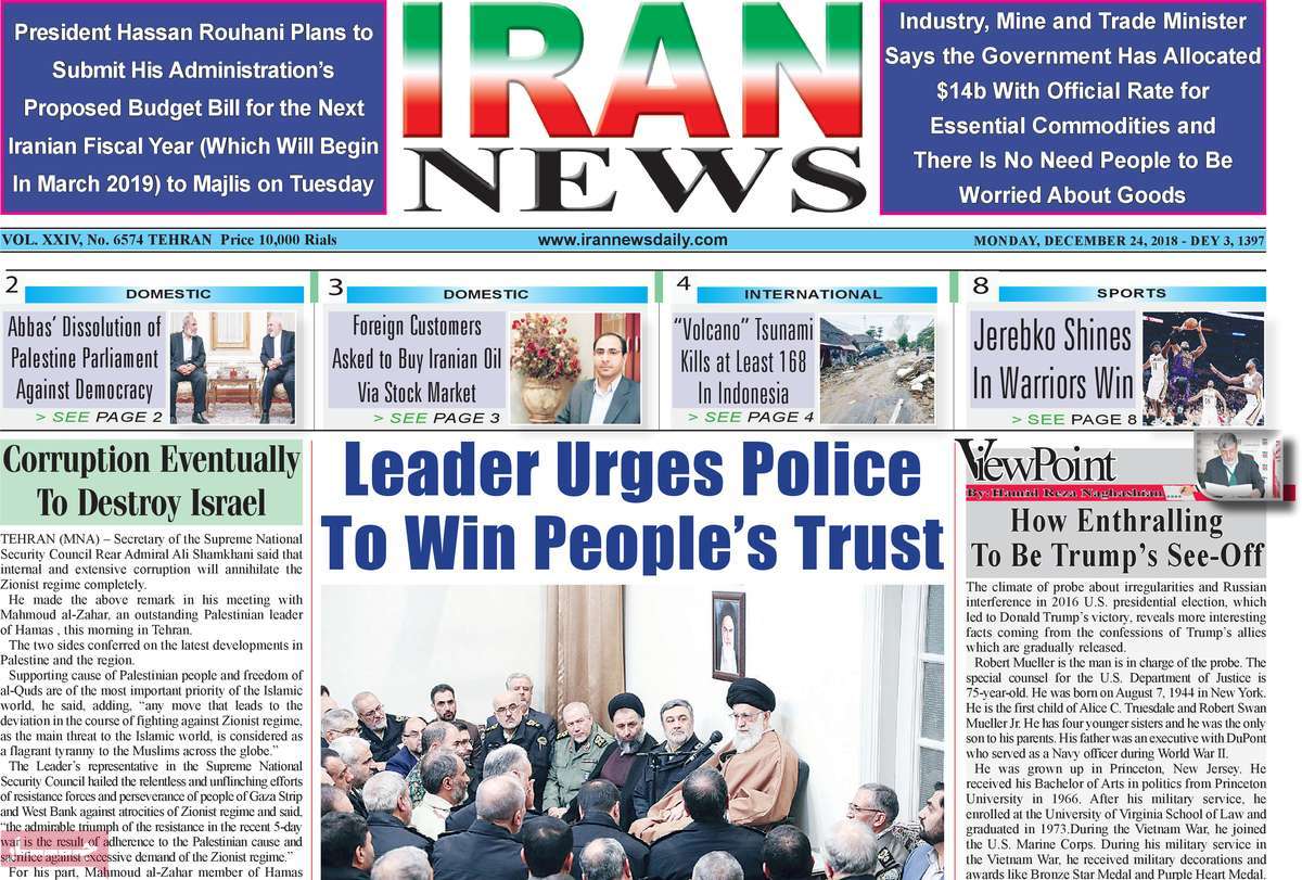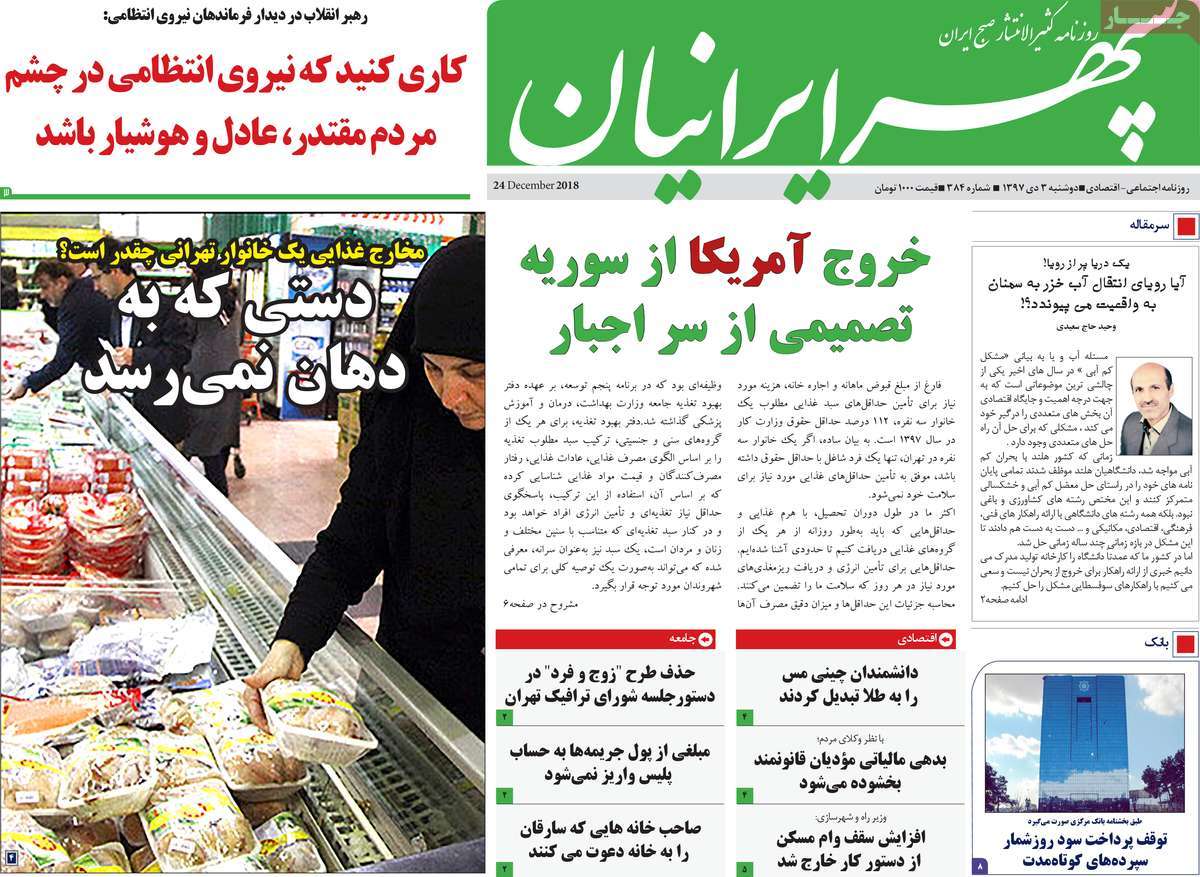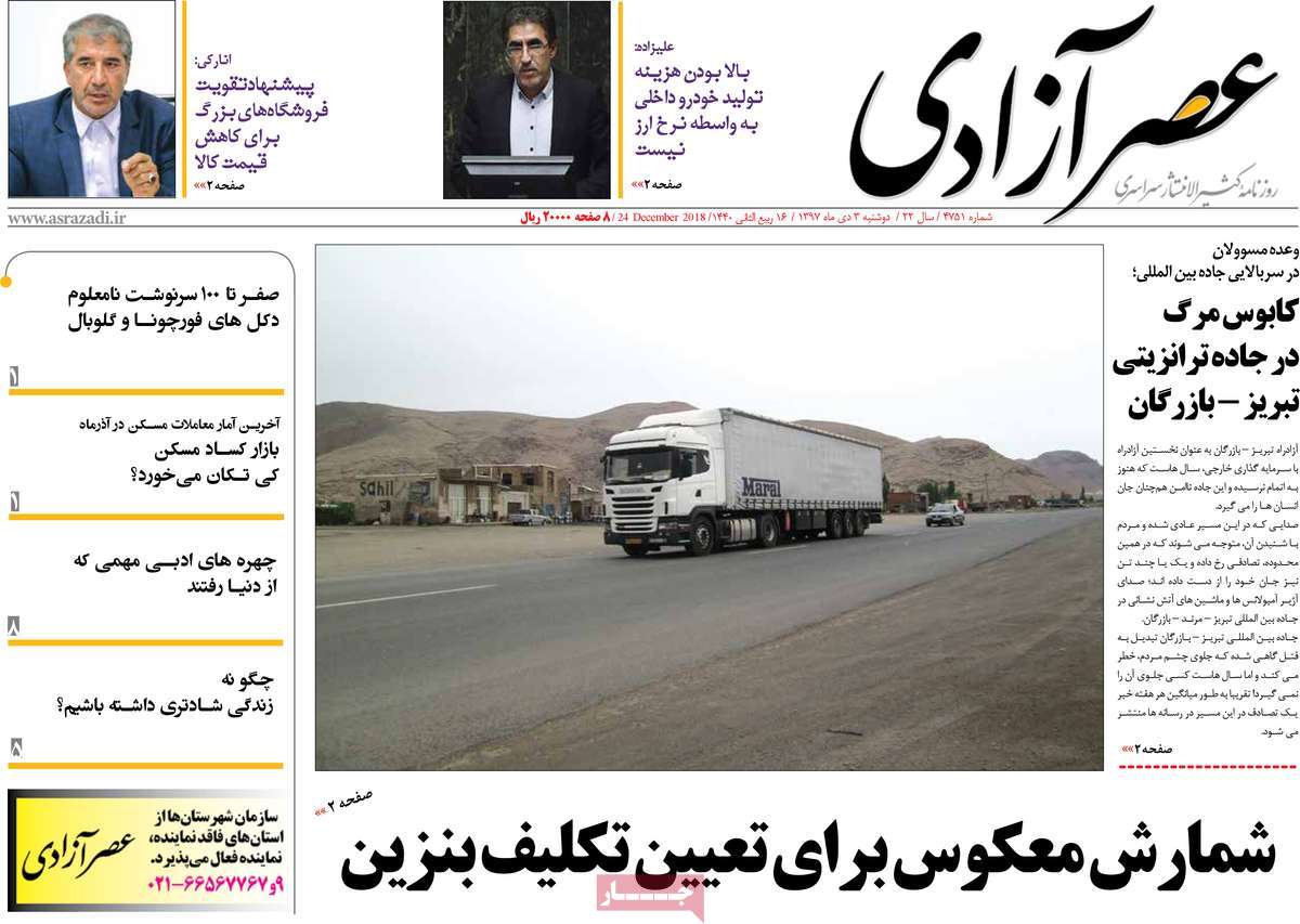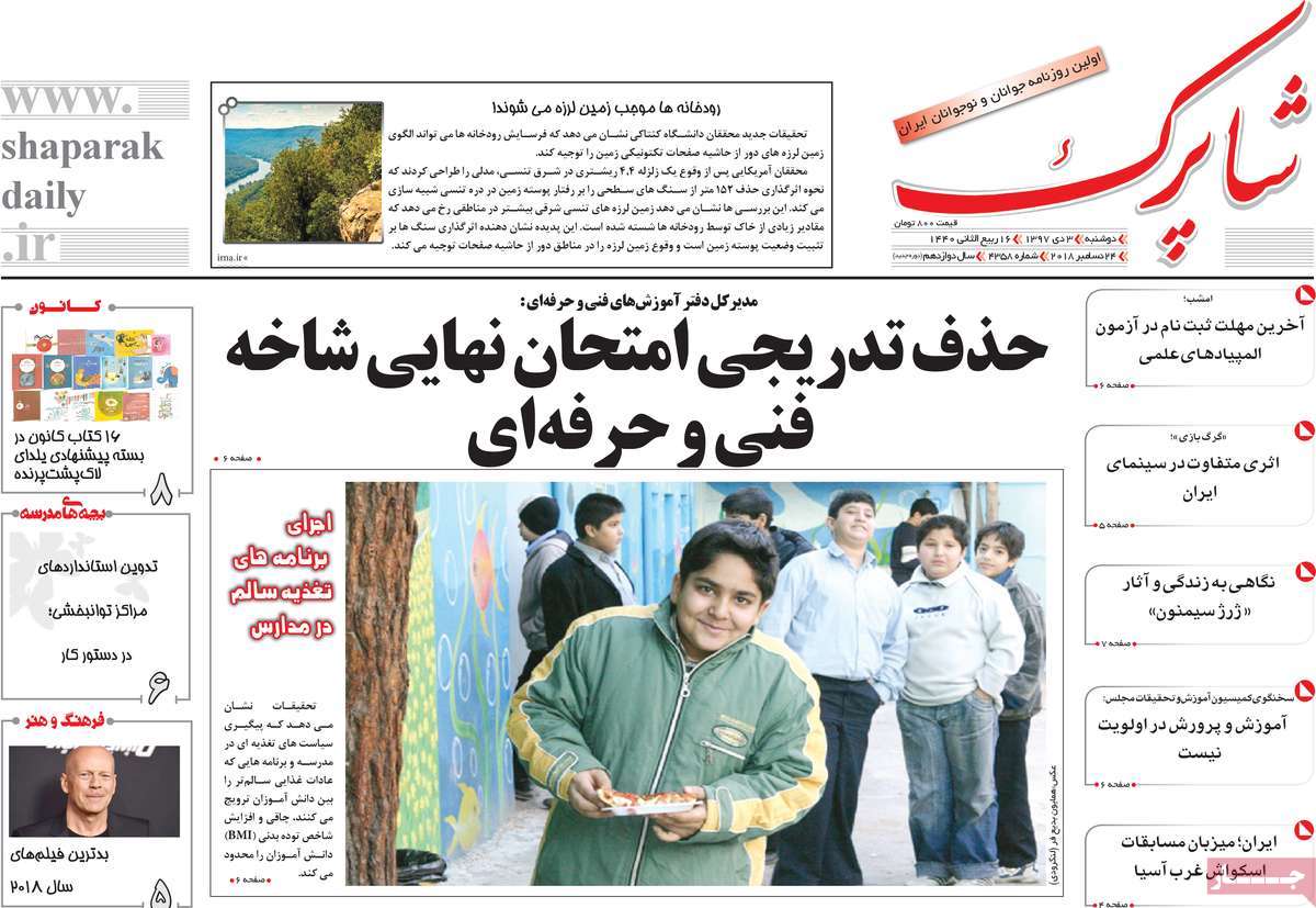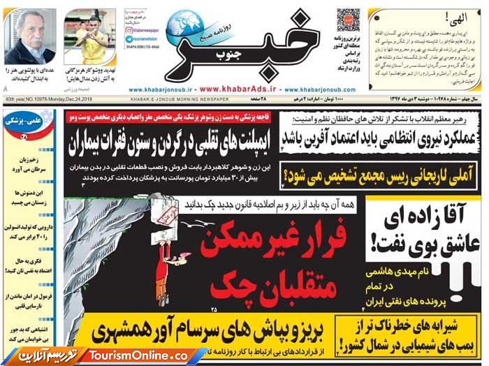 صفحه اول روزنامه های کشوری و استانی؛ دوشنبه سوم دی ماه 1397 /تصاویر