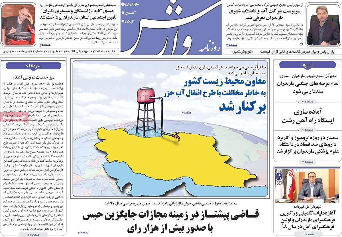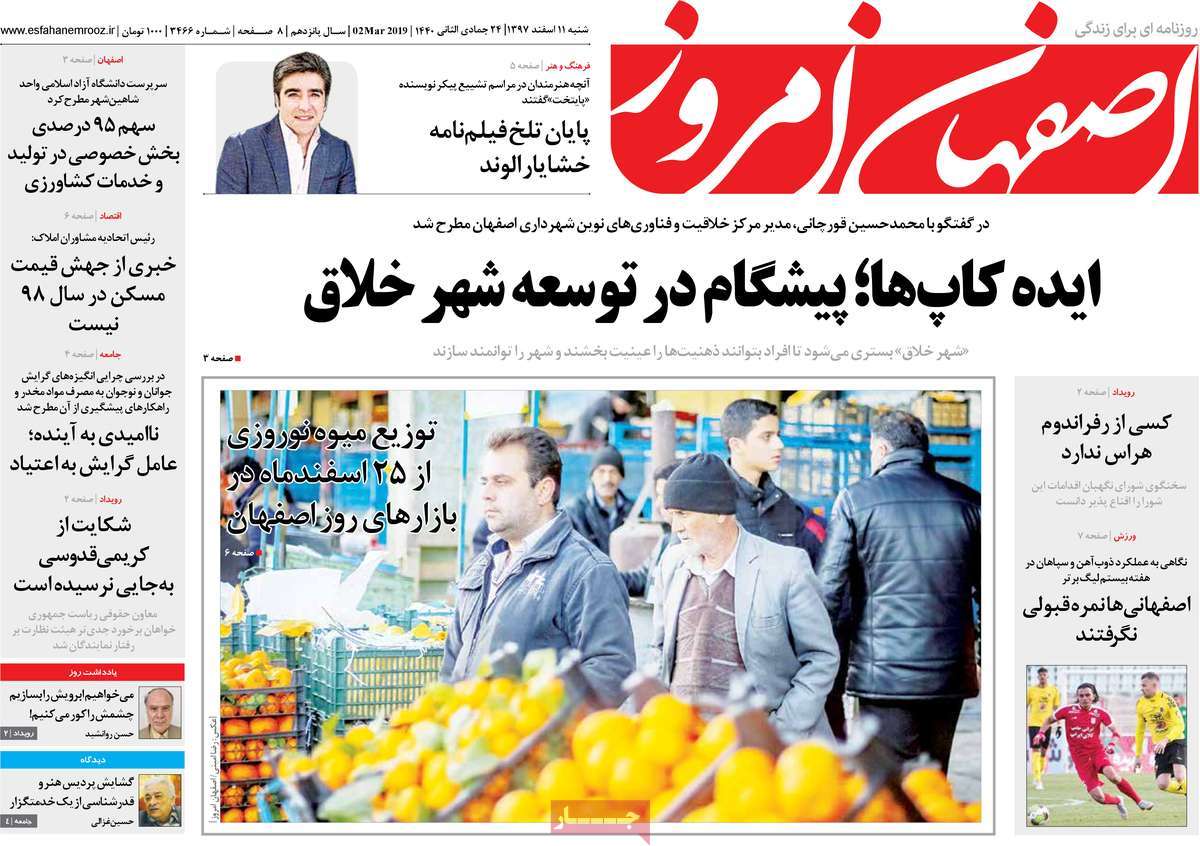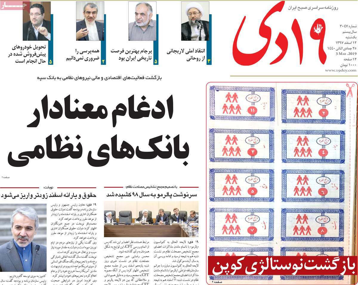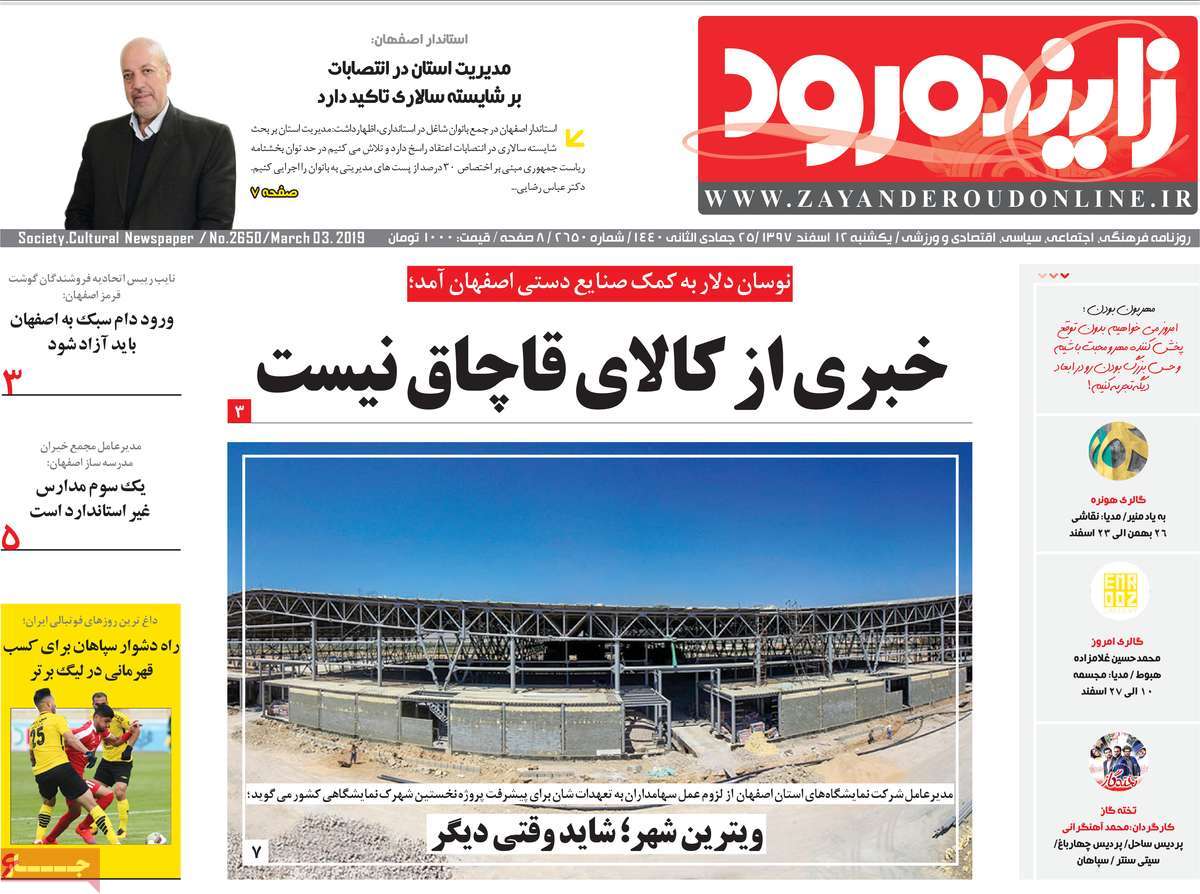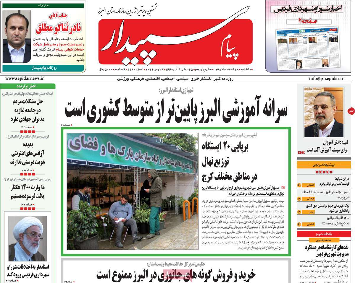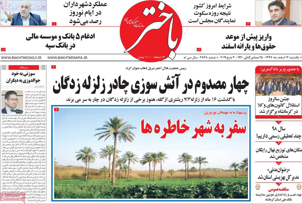 صفحه اول روزنامه های کشوری و استانی؛ یکشنبه ۱۲ اسفند ماه ۱۳۹۷ /تصاویر