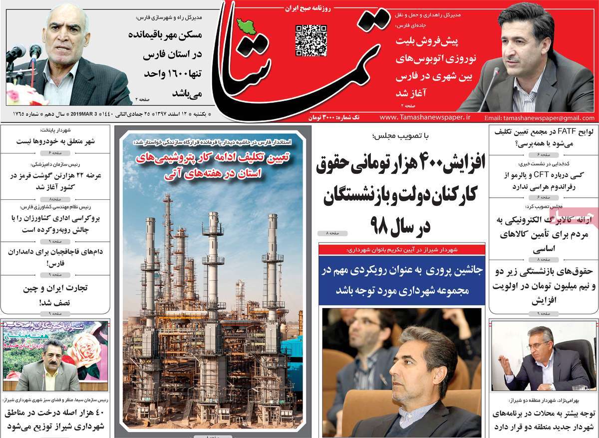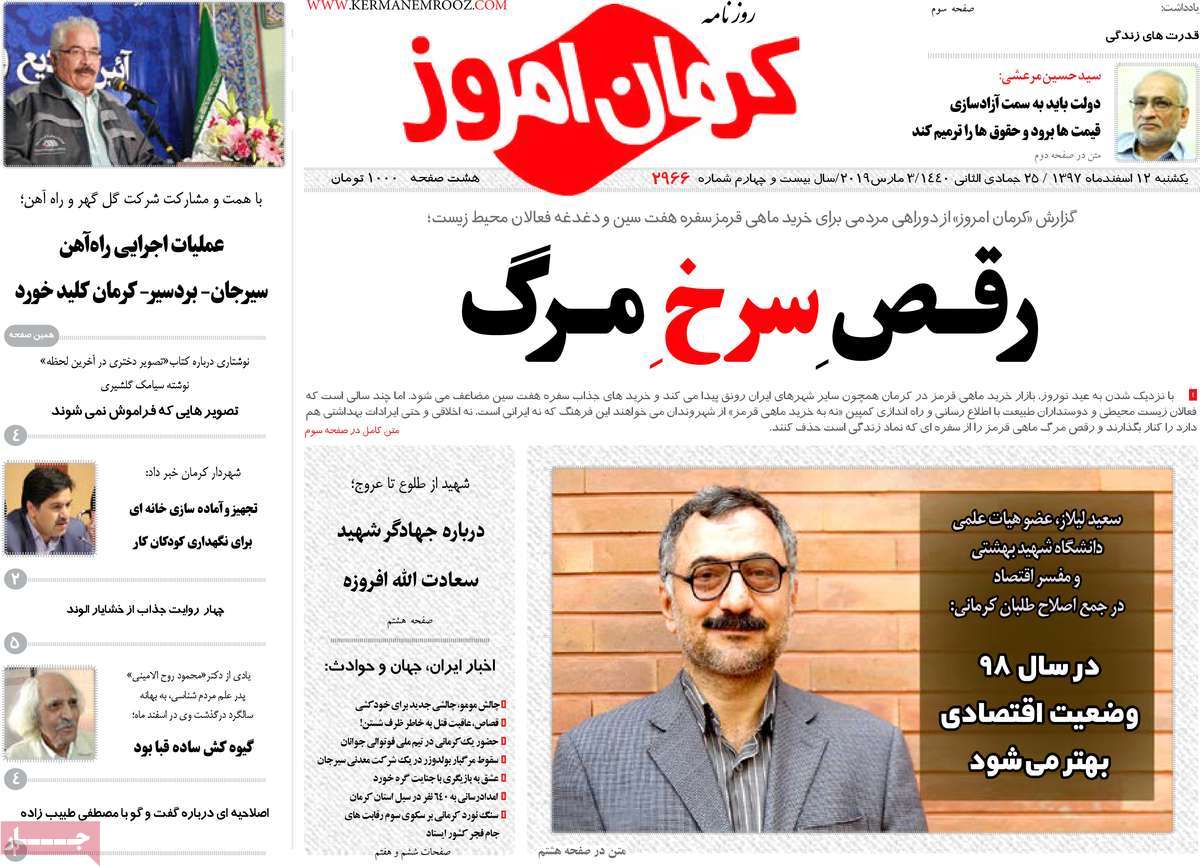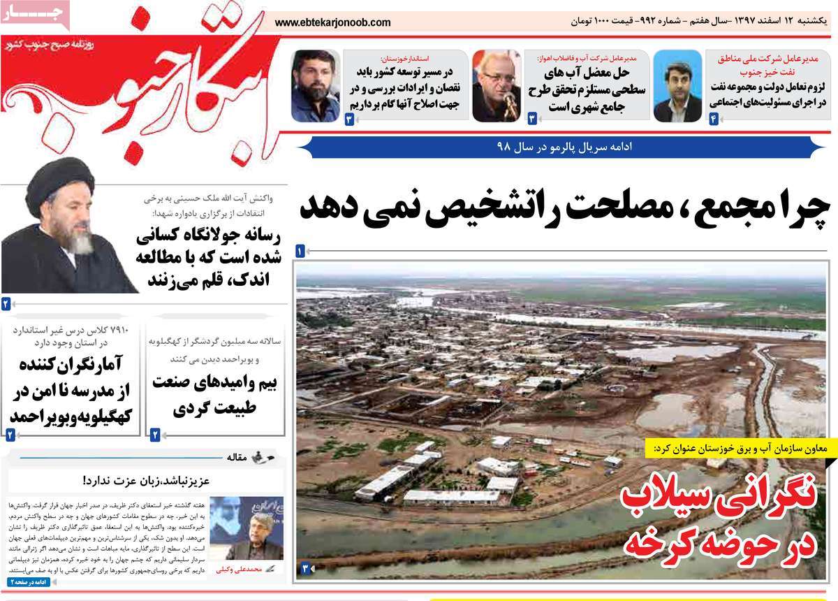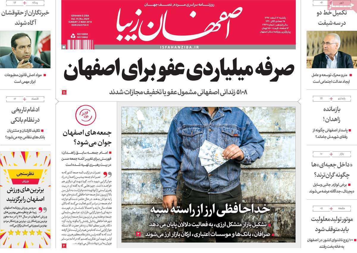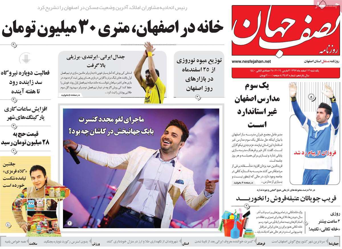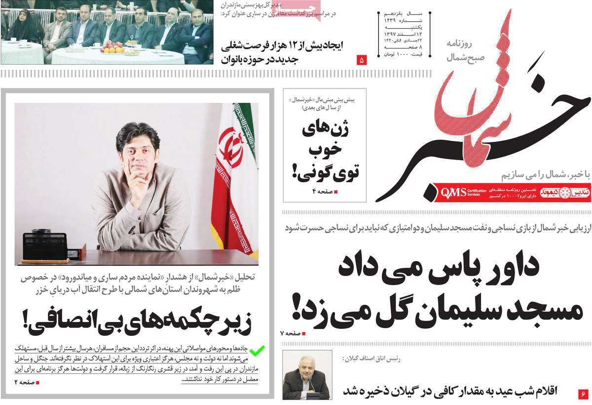 صفحه اول روزنامه های کشوری و استانی؛ یکشنبه ۱۲ اسفند ماه ۱۳۹۷ /تصاویر