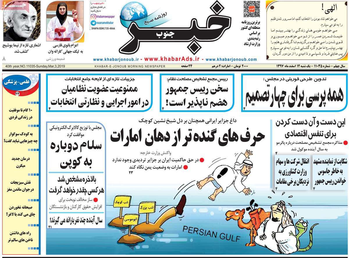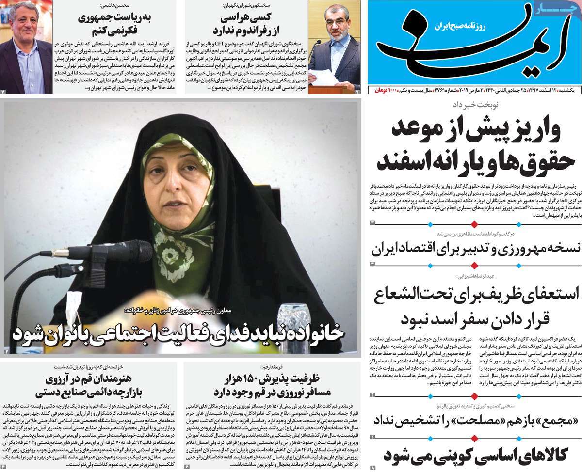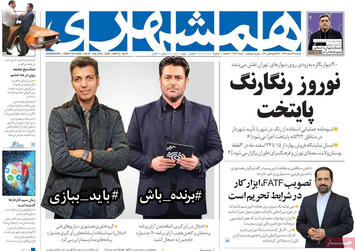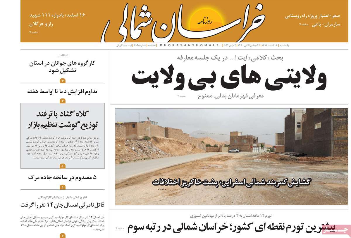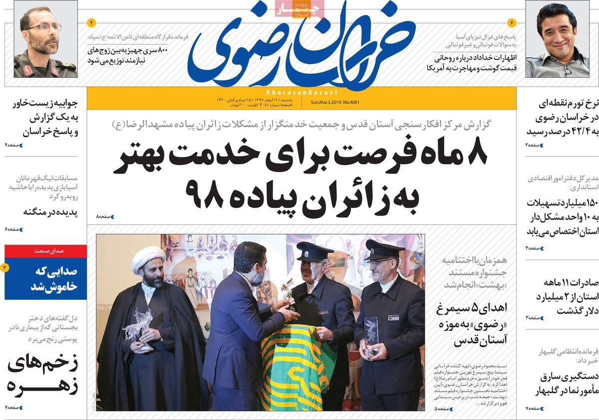 صفحه اول روزنامه های کشوری و استانی؛ یکشنبه ۱۲ اسفند ماه ۱۳۹۷ /تصاویر