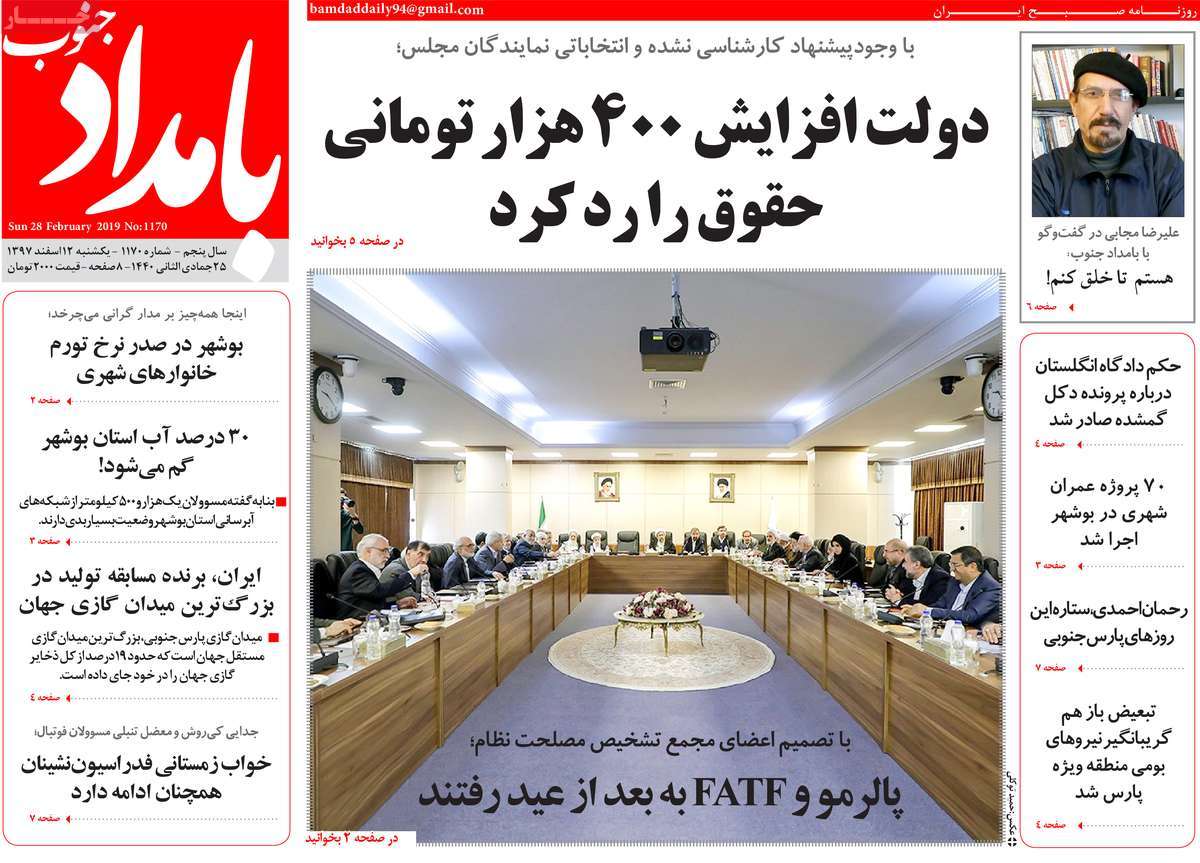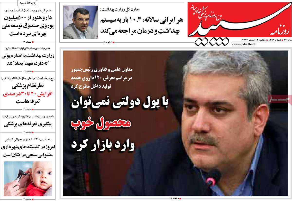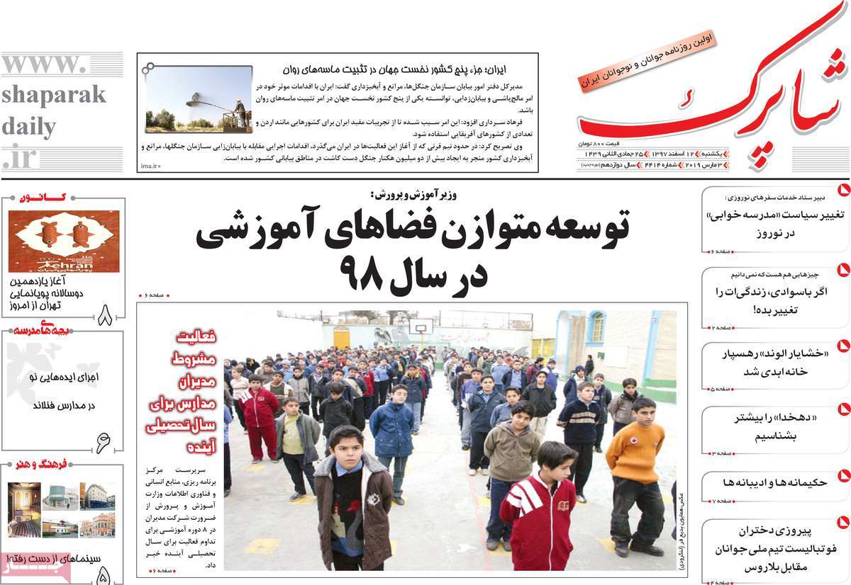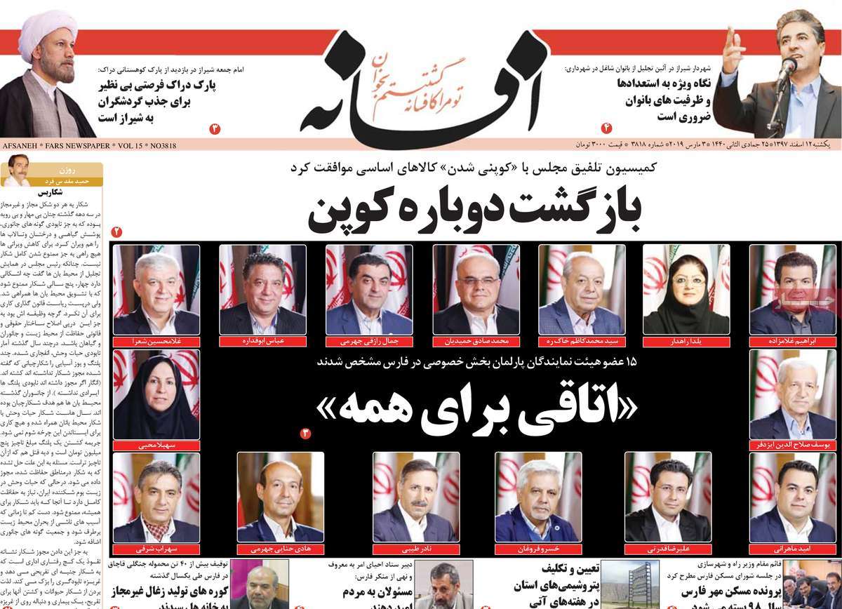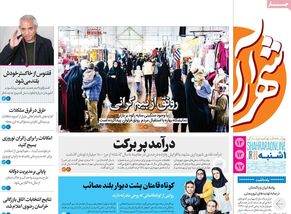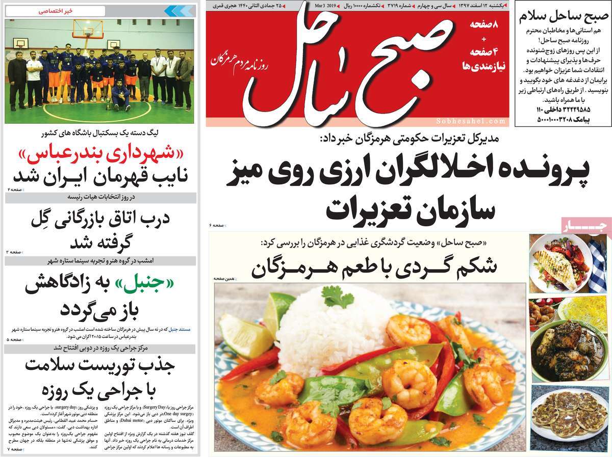 صفحه اول روزنامه های کشوری و استانی؛ یکشنبه ۱۲ اسفند ماه ۱۳۹۷ /تصاویر