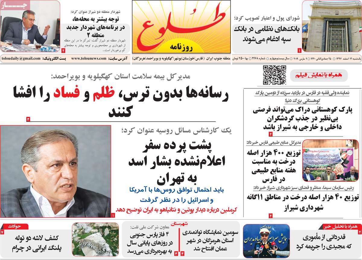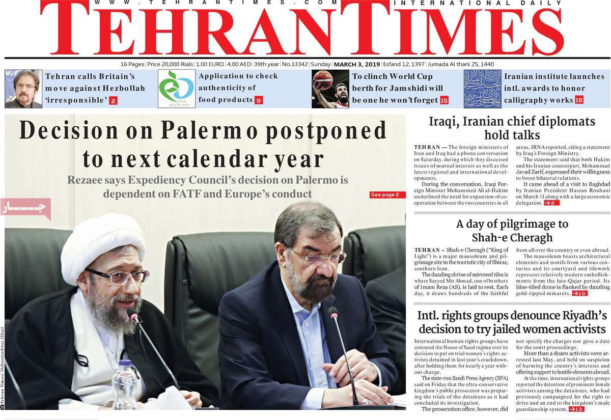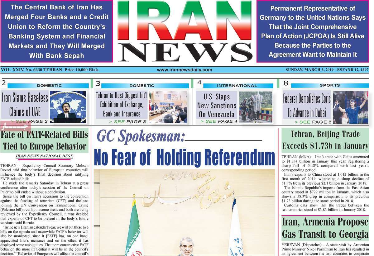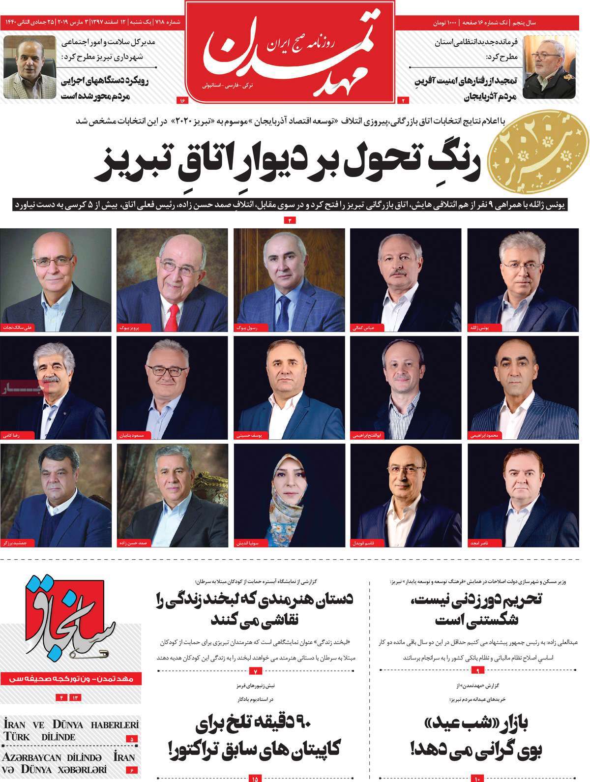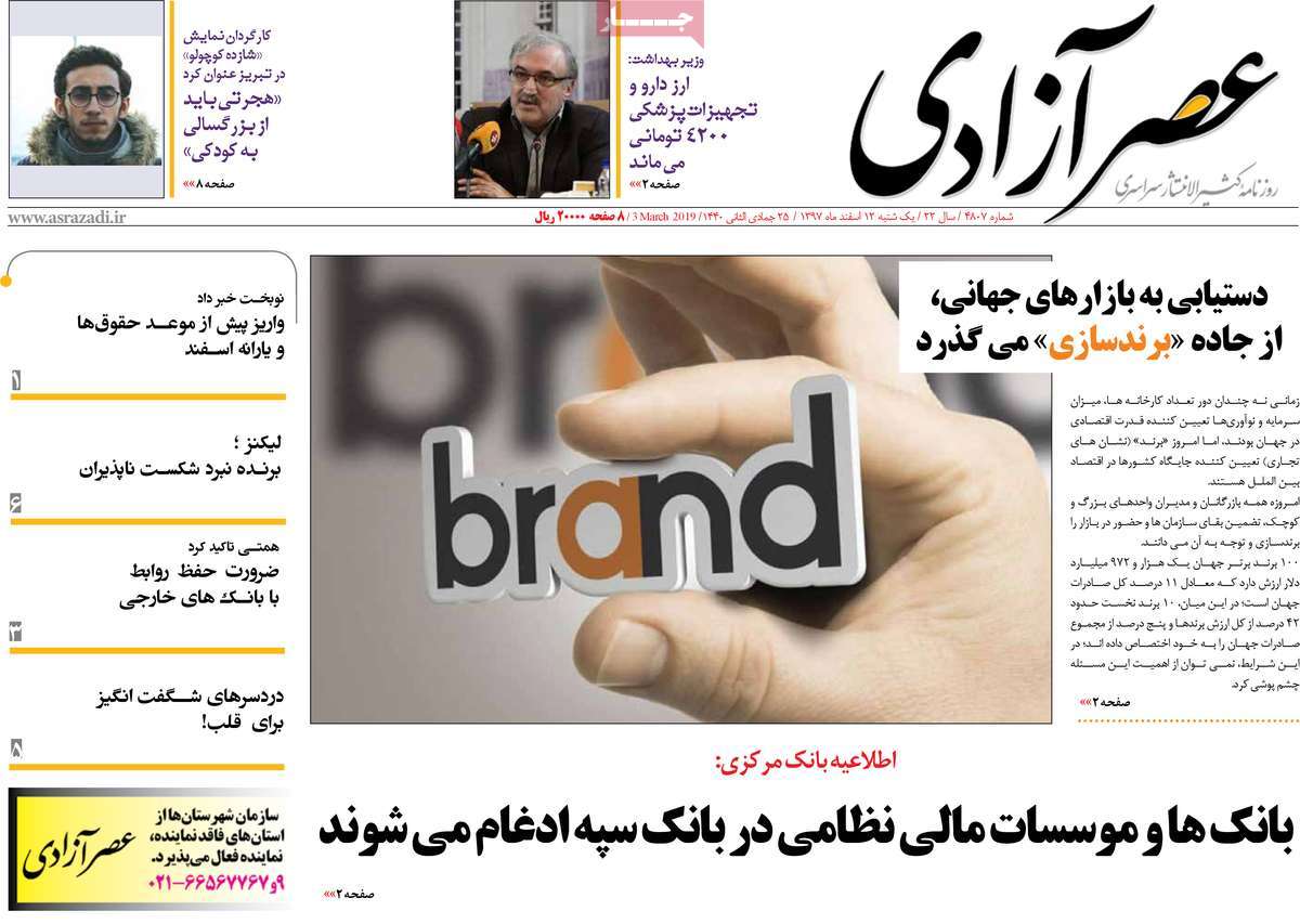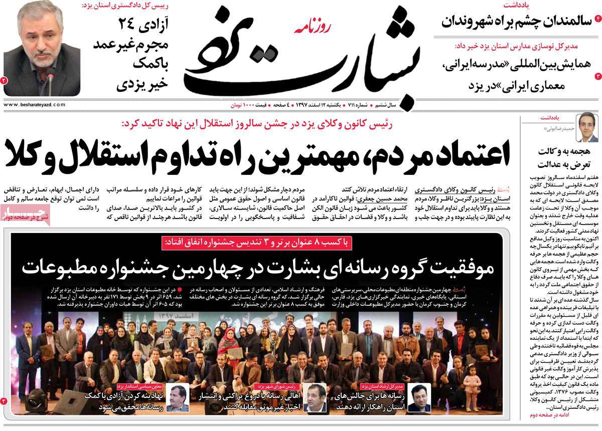 صفحه اول روزنامه های کشوری و استانی؛ یکشنبه ۱۲ اسفند ماه ۱۳۹۷ /تصاویر