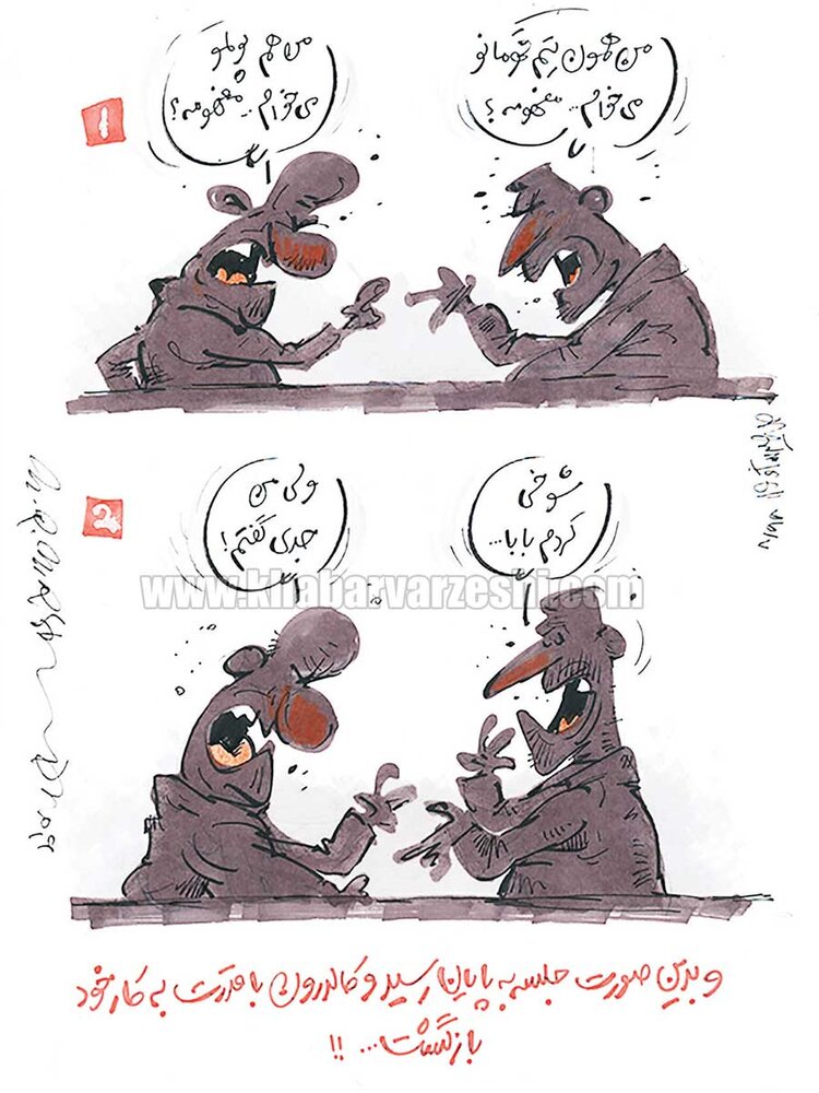 جلسه صبحگاهی انصاریفرد با کالدرون در پی شکست پرسپولیس مقابل نفت مسجد سلیمان، سوژه کارتون امروز محمدرضا میرشاهولد در خبرورزشی شده است.